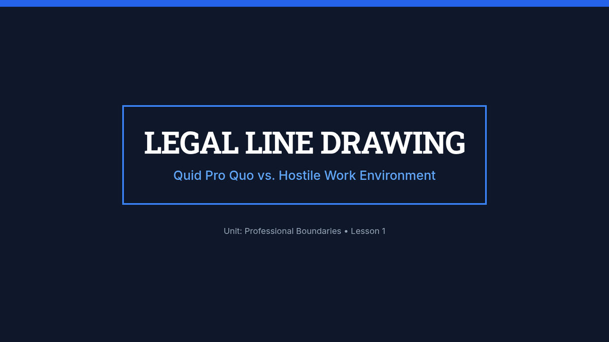 A comprehensive sequence for 9th-grade students exploring the legal definitions, impacts, and identification of sexual harassment and hostile work environments in the professional world. Students move from basic legal definitions to nuanced evaluations of intent versus impact and digital professional conduct.