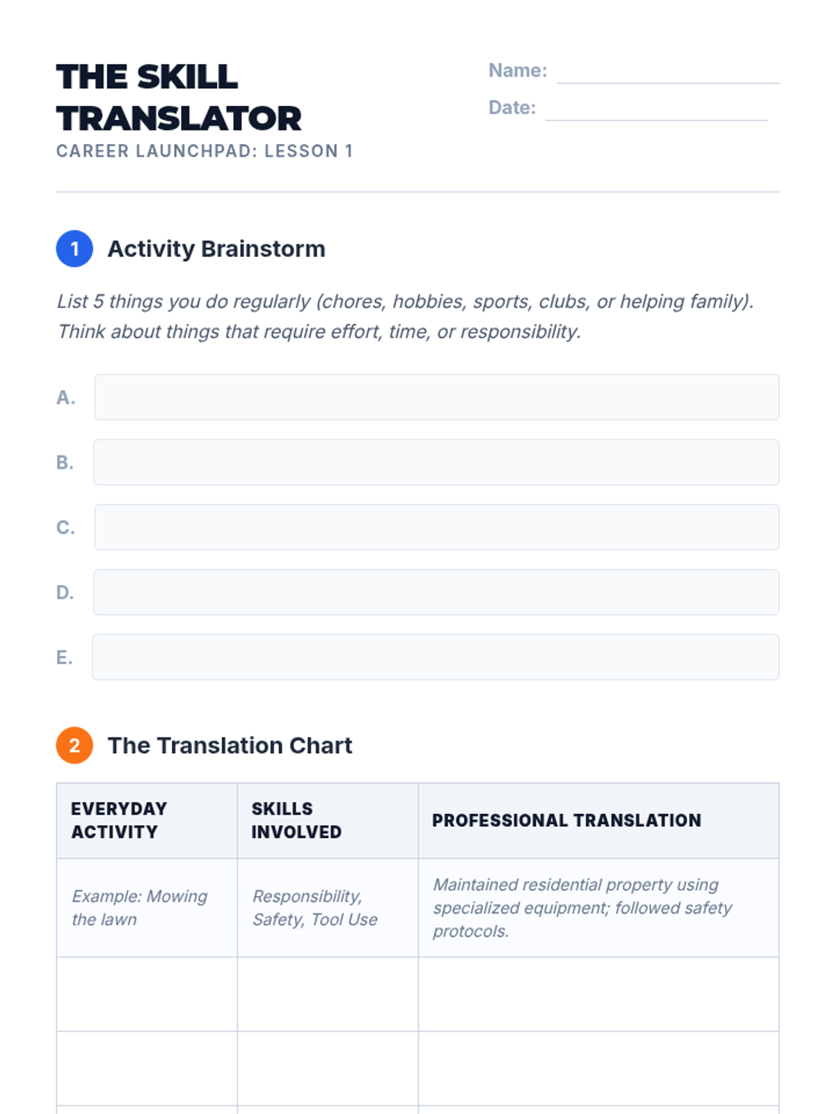 A comprehensive workshop-style unit where 7th-grade students navigate the job-seeking process, from identifying transferable skills and drafting their first resumes to mastering professional etiquette and succeeding in mock interviews. Students will develop tangible professional documents and interpersonal communication skills critical for workforce entry.