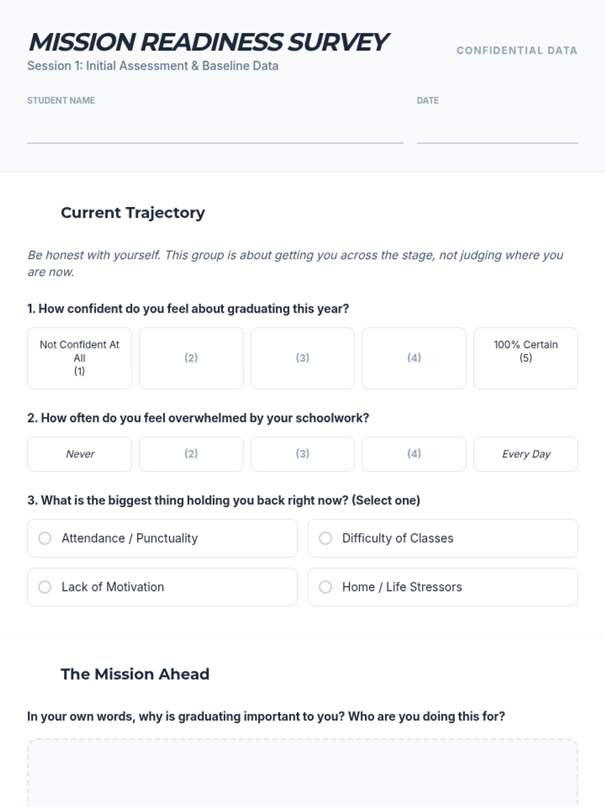 An 8-session intensive support group curriculum designed for seniors at risk of not graduating, focusing on academic accountability, self-advocacy, and post-secondary planning.