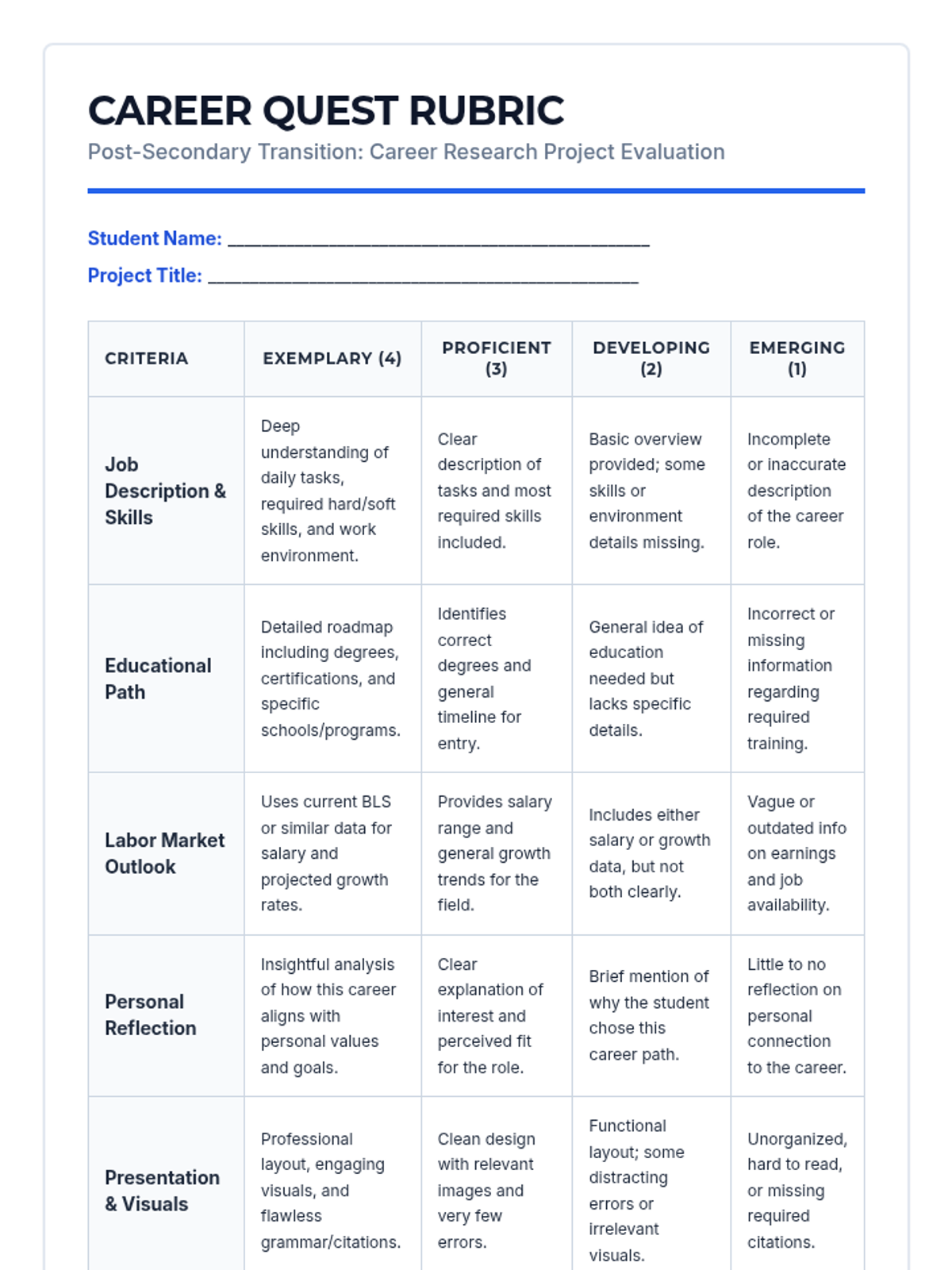 A comprehensive unit designed to prepare students for the transition from high school to adulthood, focusing on post-secondary pathways, resume building, and professional interview skills.