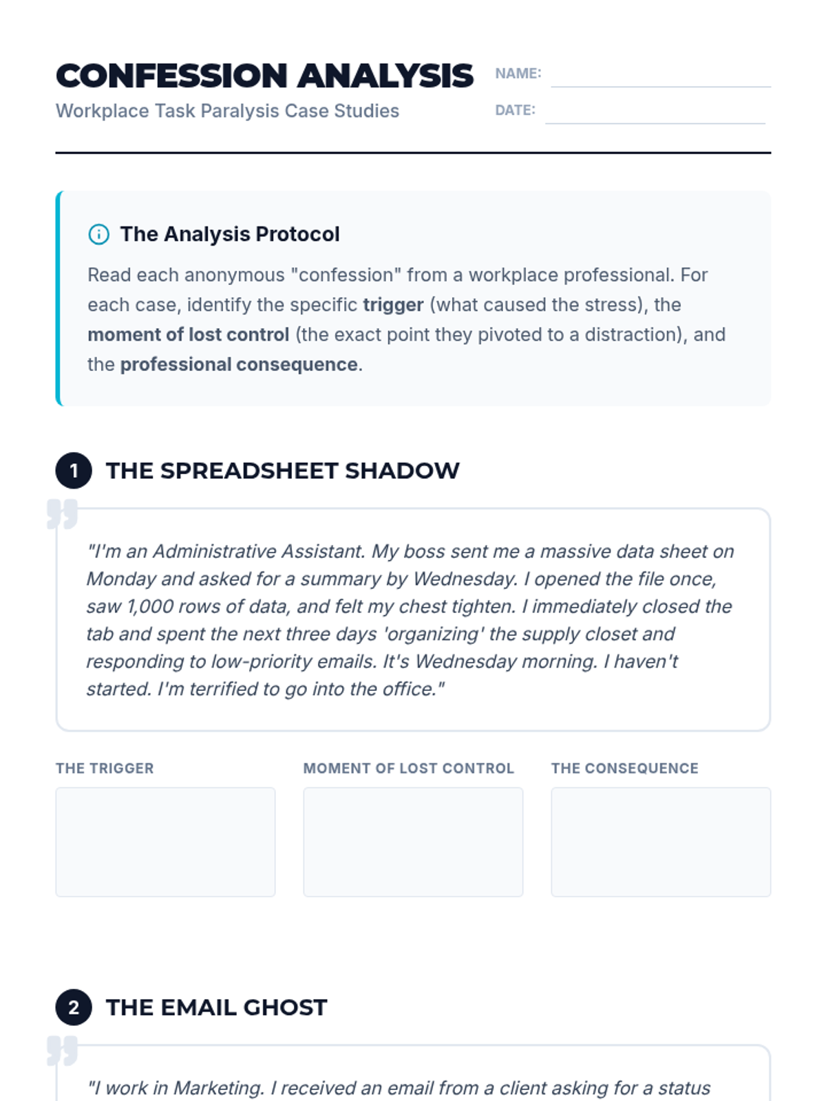 A comprehensive sequence where 8th-grade students act as 'organizational consultants' to diagnose and solve scheduling conflicts and executive functioning challenges through case studies. Students learn root cause analysis, professional self-advocacy, emotional regulation strategies for procrastination, and tool evaluation before creating a final consultancy report.