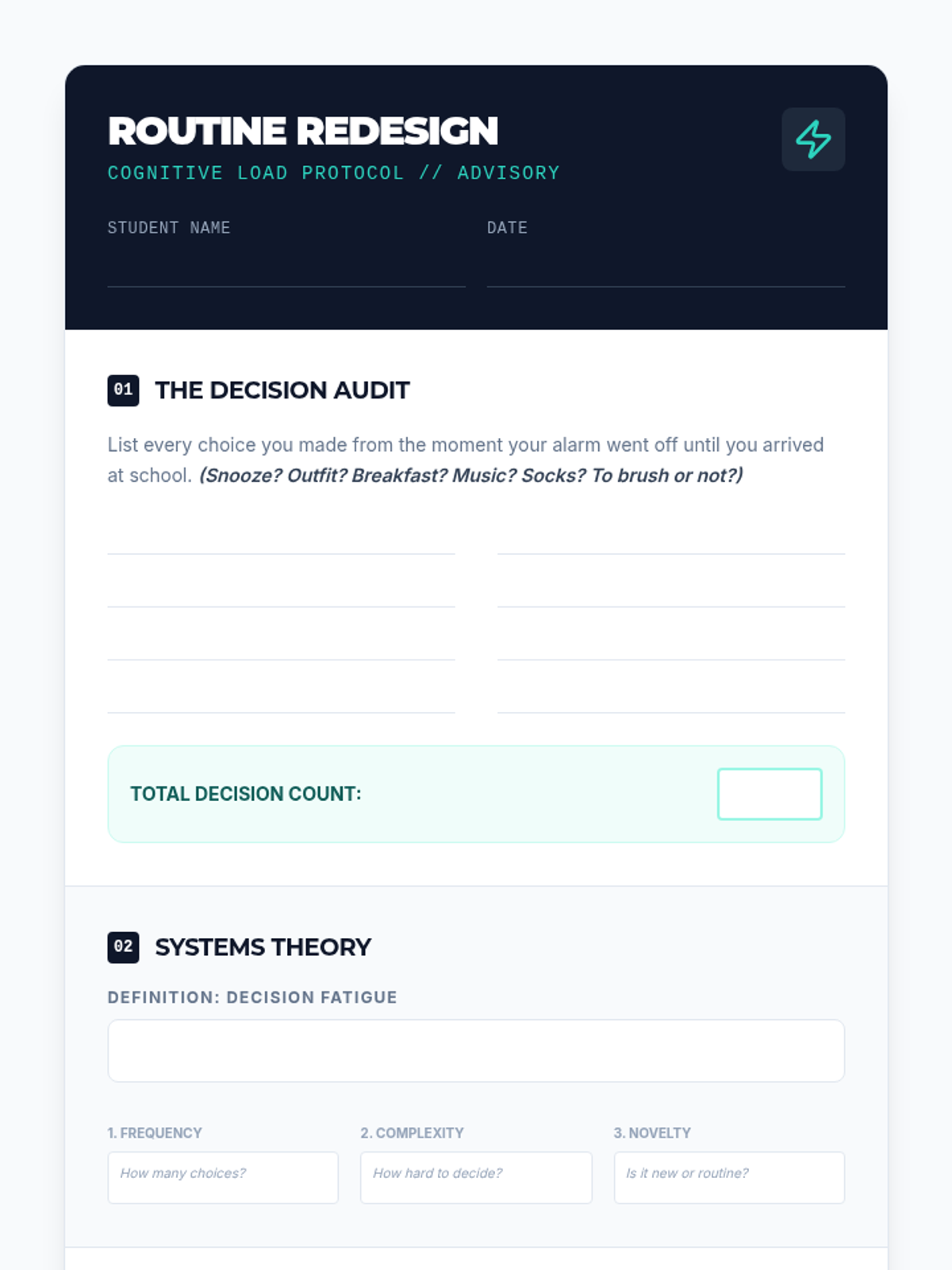 This sequence prepares 11th-grade students for vocational and independent living by teaching them to design and use professional visual aids (SOPs and checklists). Students learn to offload working memory onto visual systems to reduce error and mental fatigue in complex tasks.