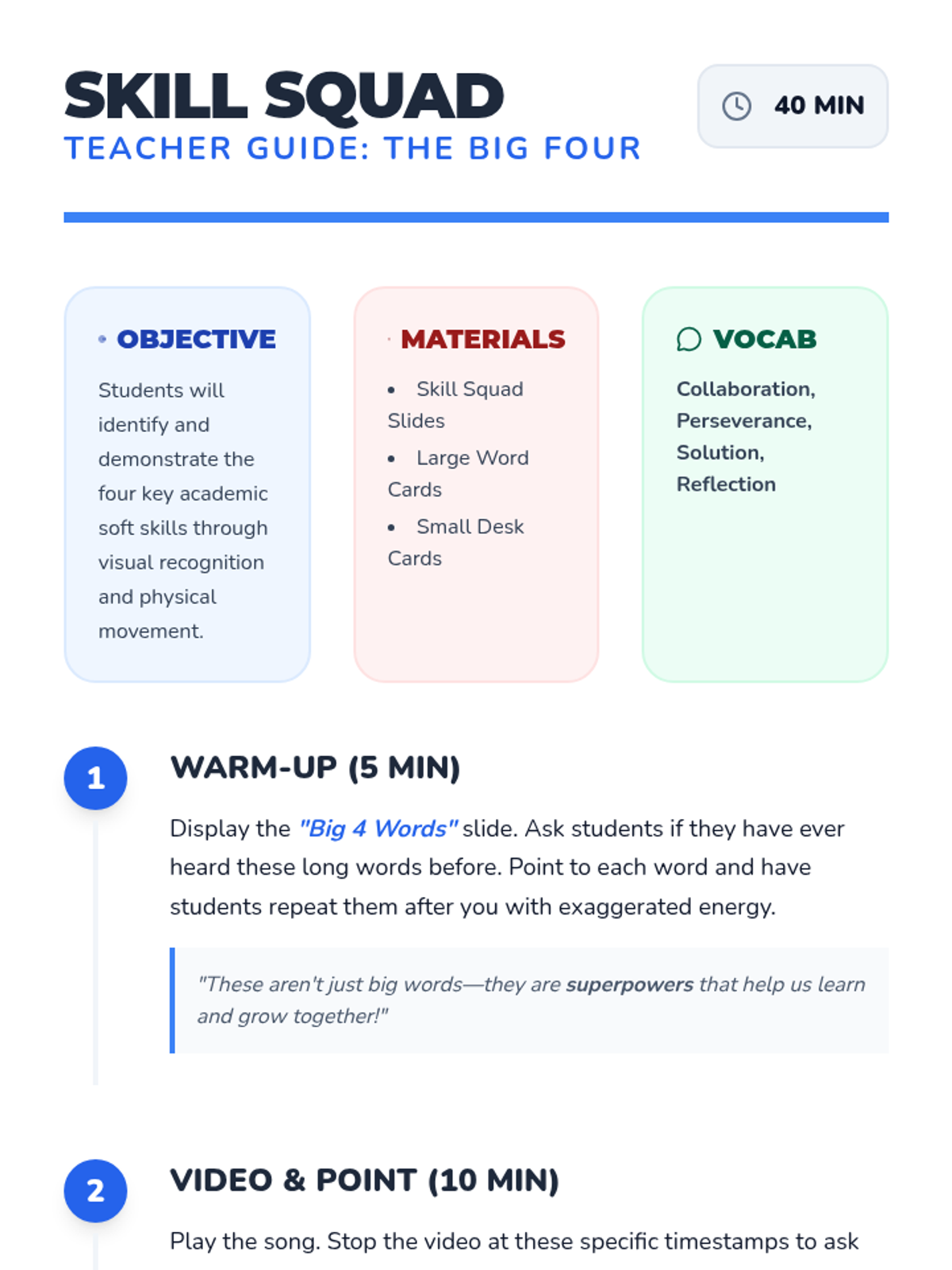 This sequence helps students master time management and prioritization during exams. Through hands-on activities and simulations, students learn to estimate pacing, use the 'skip and return' strategy, navigate long passages efficiently, and manage test anxiety.