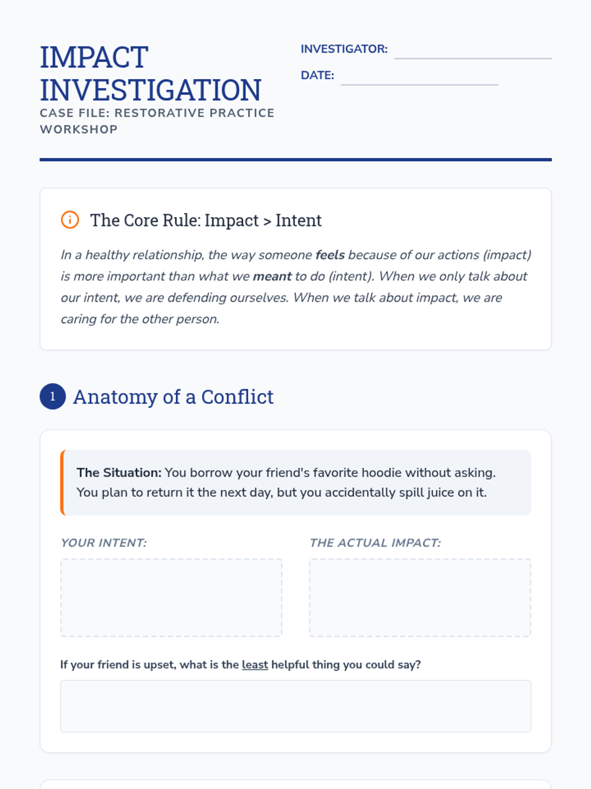 A 5-lesson sequence for 7th grade students focusing on restorative practices, the difference between intent and impact, crafting genuine apologies, and the long-term process of rebuilding trust after conflict.
