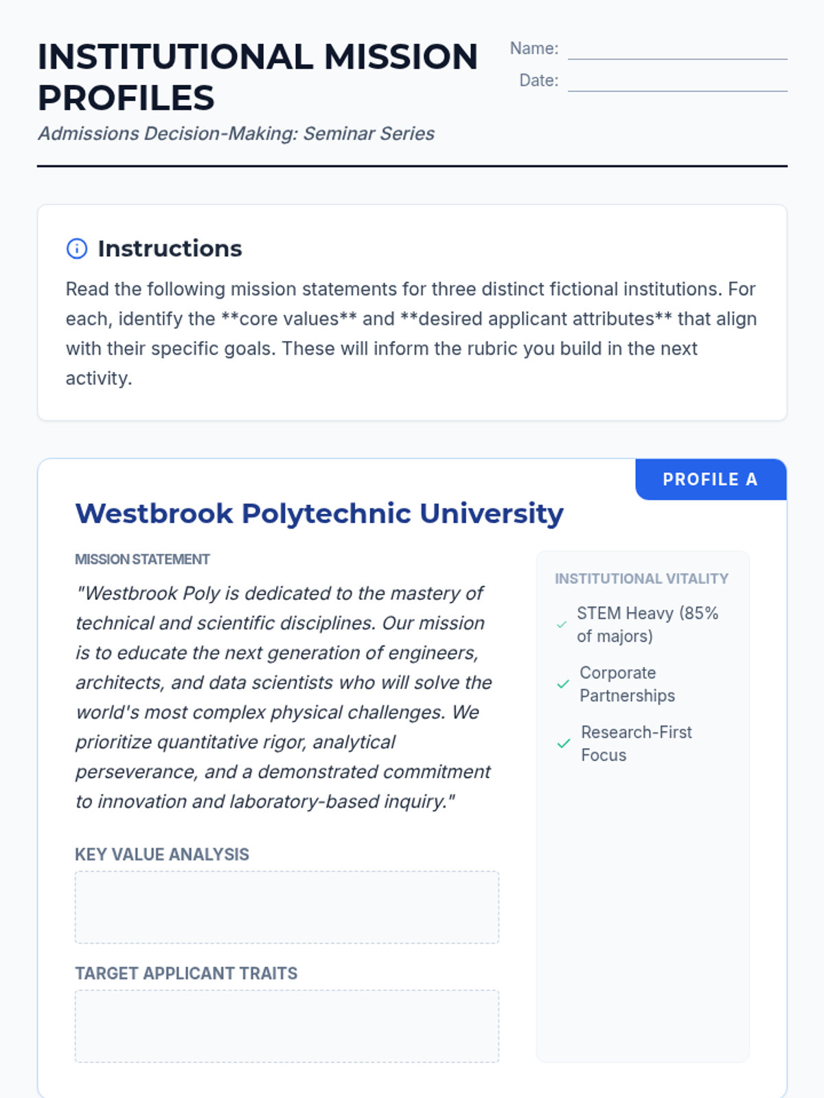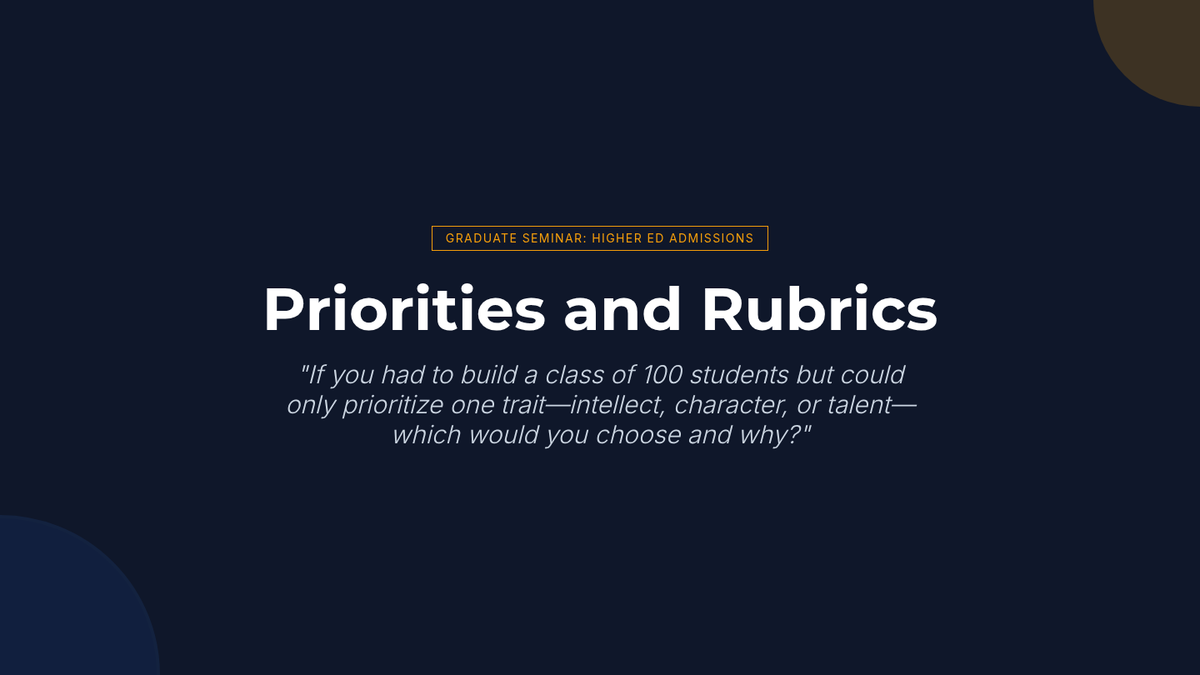 A graduate-level exploration of the admissions 'black box,' where students act as admissions officers to navigate the complexities of holistic review, institutional priorities, and systemic bias in post-secondary gatekeeping.