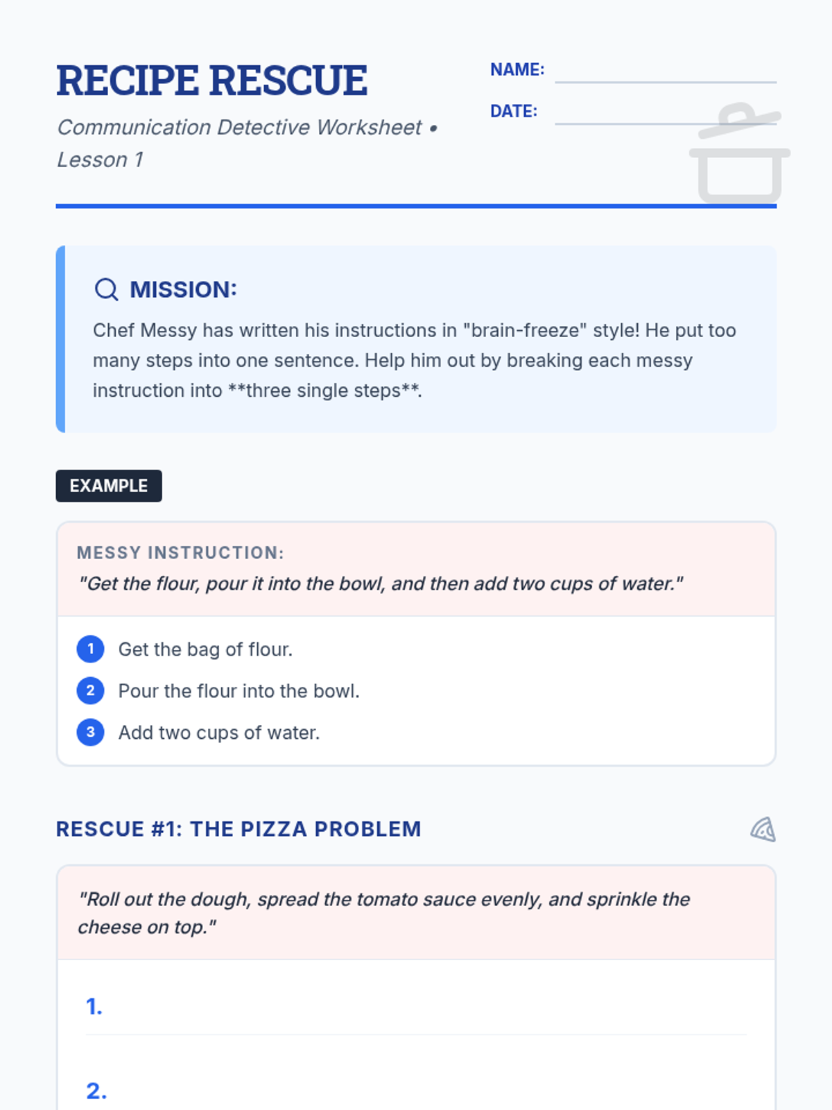A 5-lesson sequence for 5th-grade students focused on working memory and the importance of single-step directions. Students learn to analyze, reconstruct, and advocate for clear communication through case studies, games, and collaborative challenges.