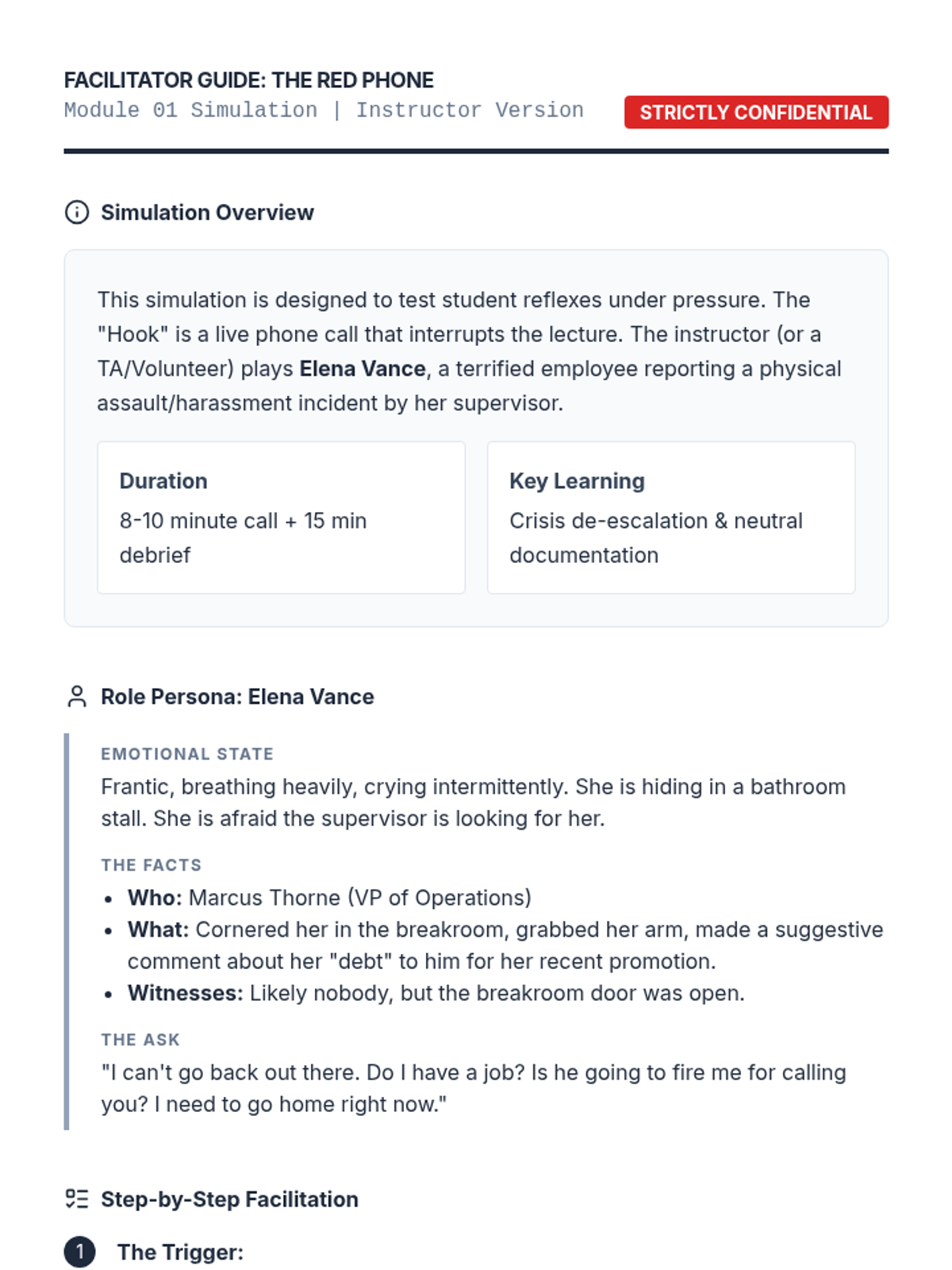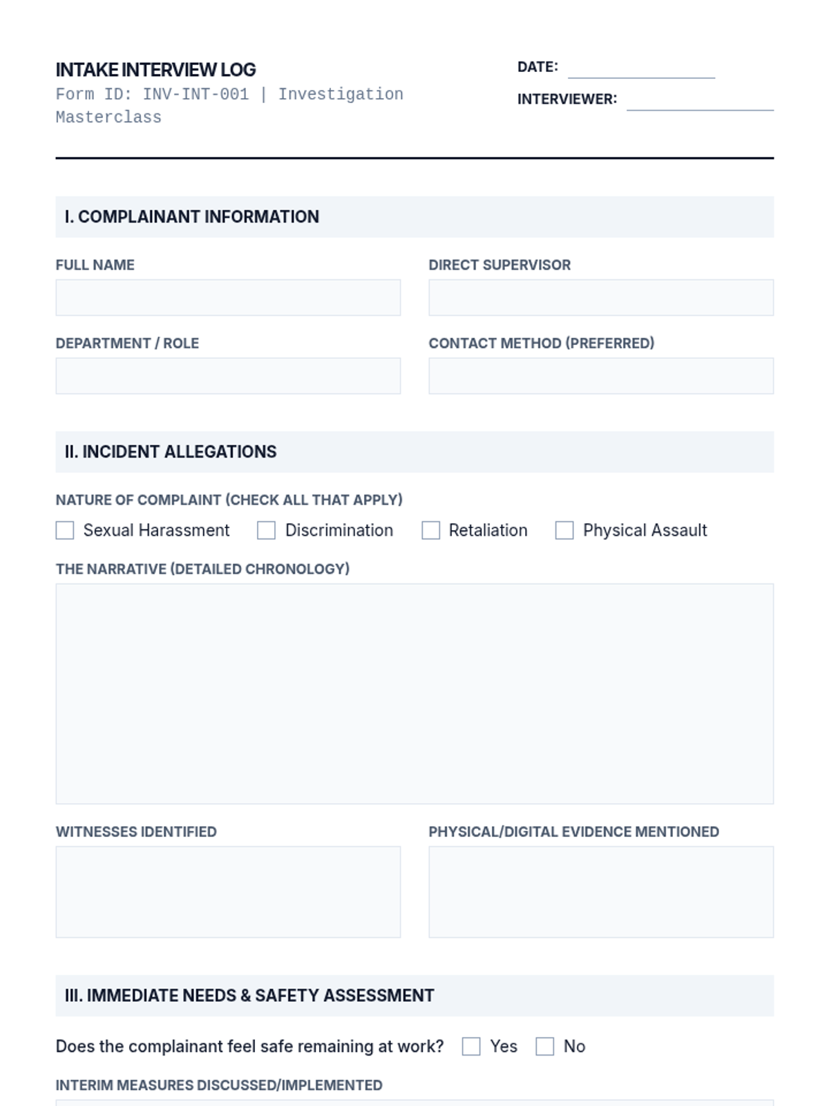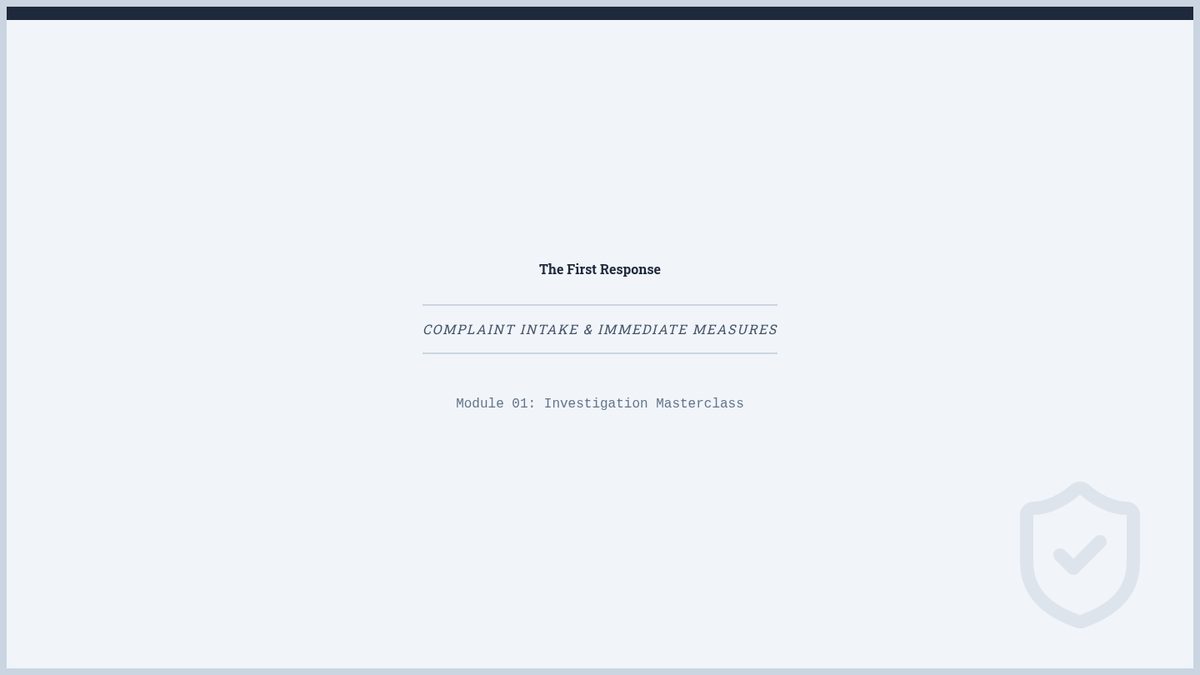A comprehensive graduate-level simulation-based course on handling workplace harassment and discrimination complaints. Students progress from initial intake to final report writing, focusing on procedural fairness, neutrality, and evidence-based determination.