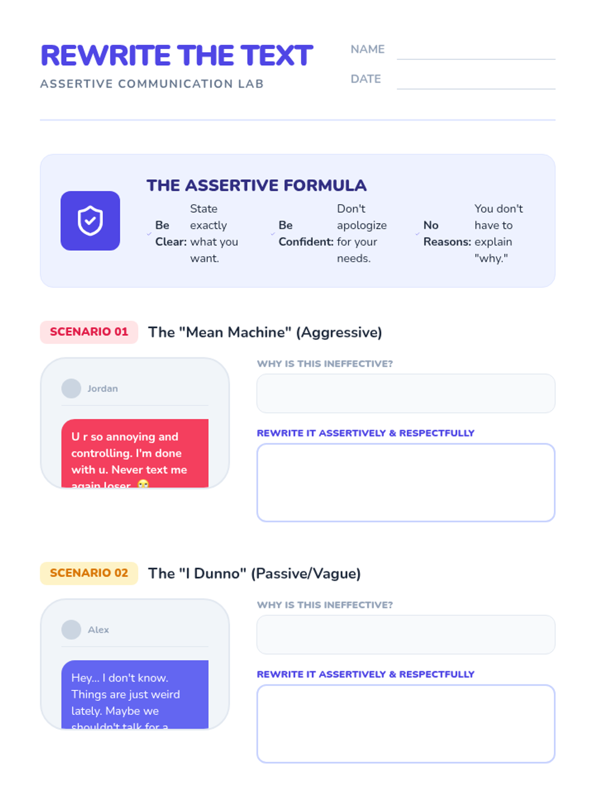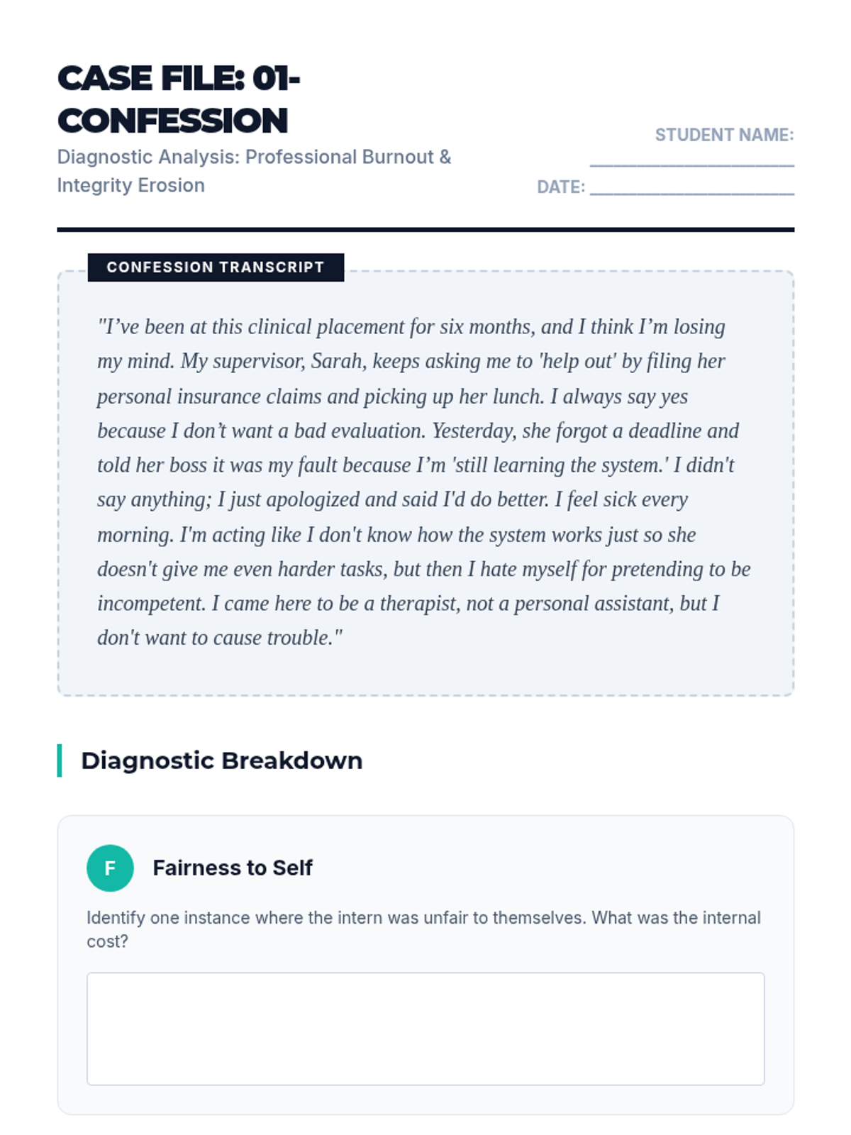 This sequence uses the FAST framework (DBT) to analyze professional social dynamics, helping undergraduate students identify and mitigate the erosion of self-respect in high-stakes environments like internships and early careers. Students progress from diagnostic analysis of professional failure scenarios to prescriptive intervention design.
