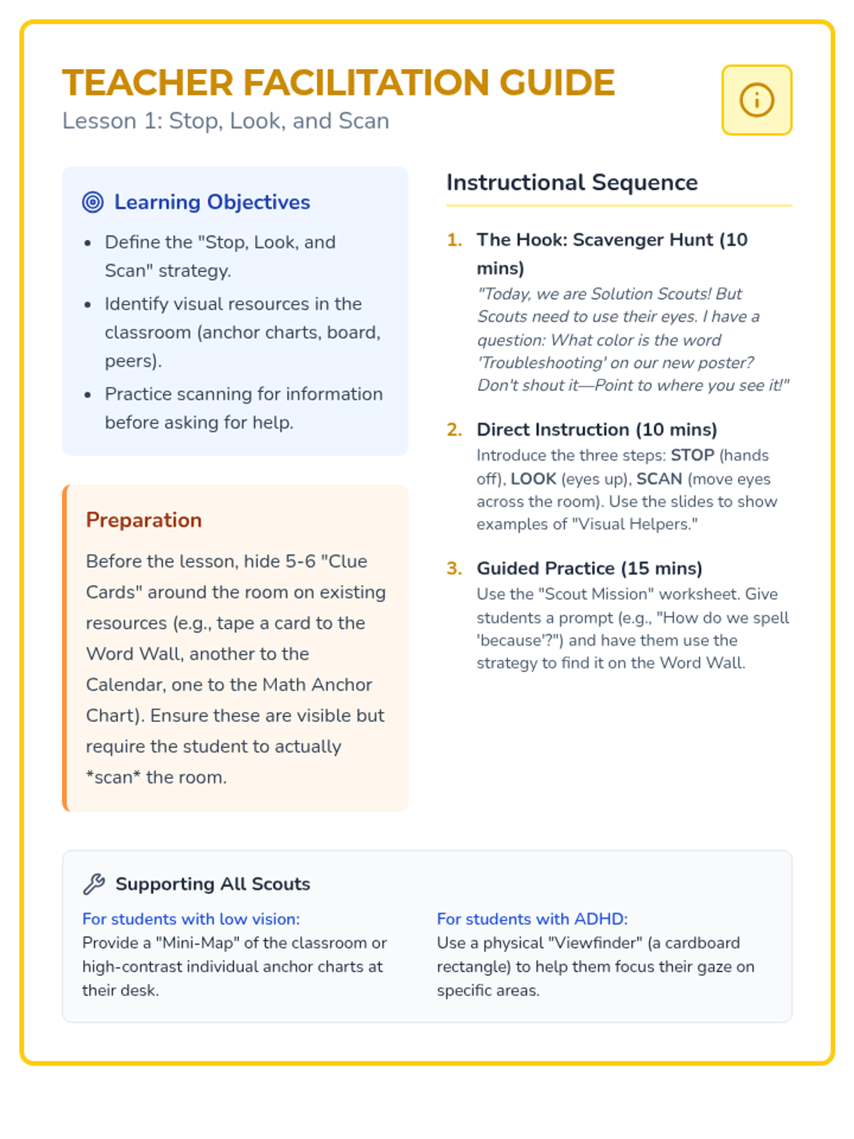 This sequence empowers 2nd-grade students with self-advocacy skills to navigate obstacles. It moves from recognizing when help is needed to choosing the right helper and using specific, actionable language or non-verbal signals.