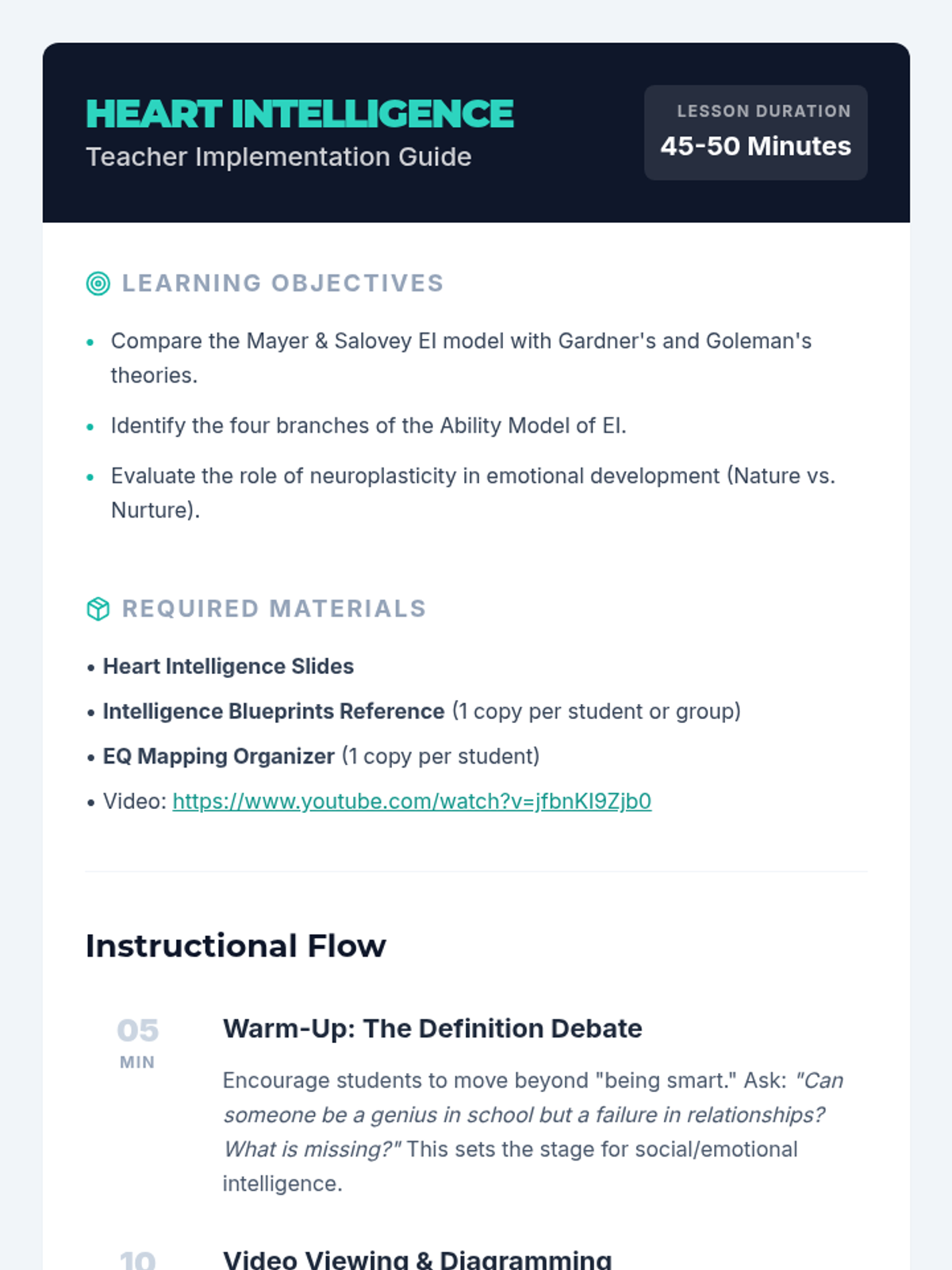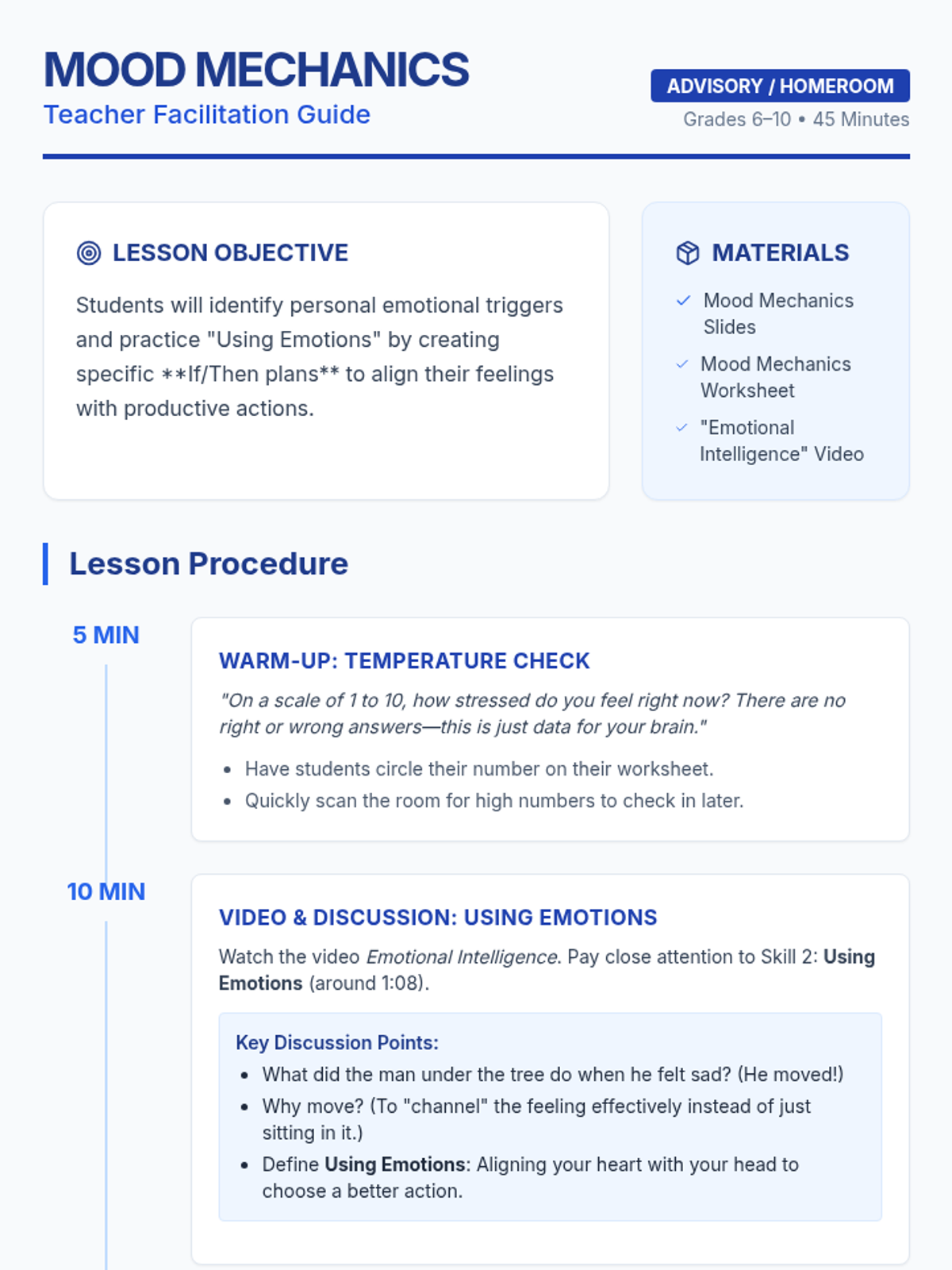 A lesson series focused on developing emotional intelligence through practical strategies like If/Then planning and mood regulation.