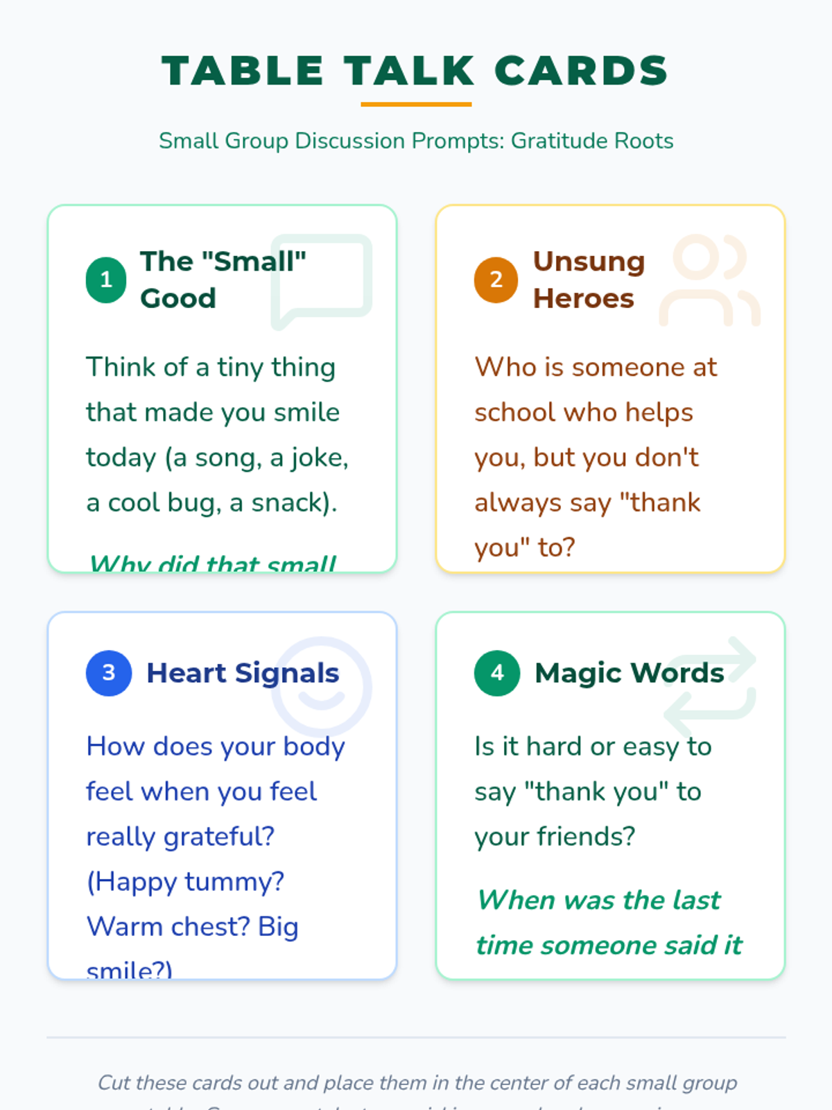A three-part exploration of gratitude and generosity through interactive small group activities, focusing on building community and social-emotional skills.