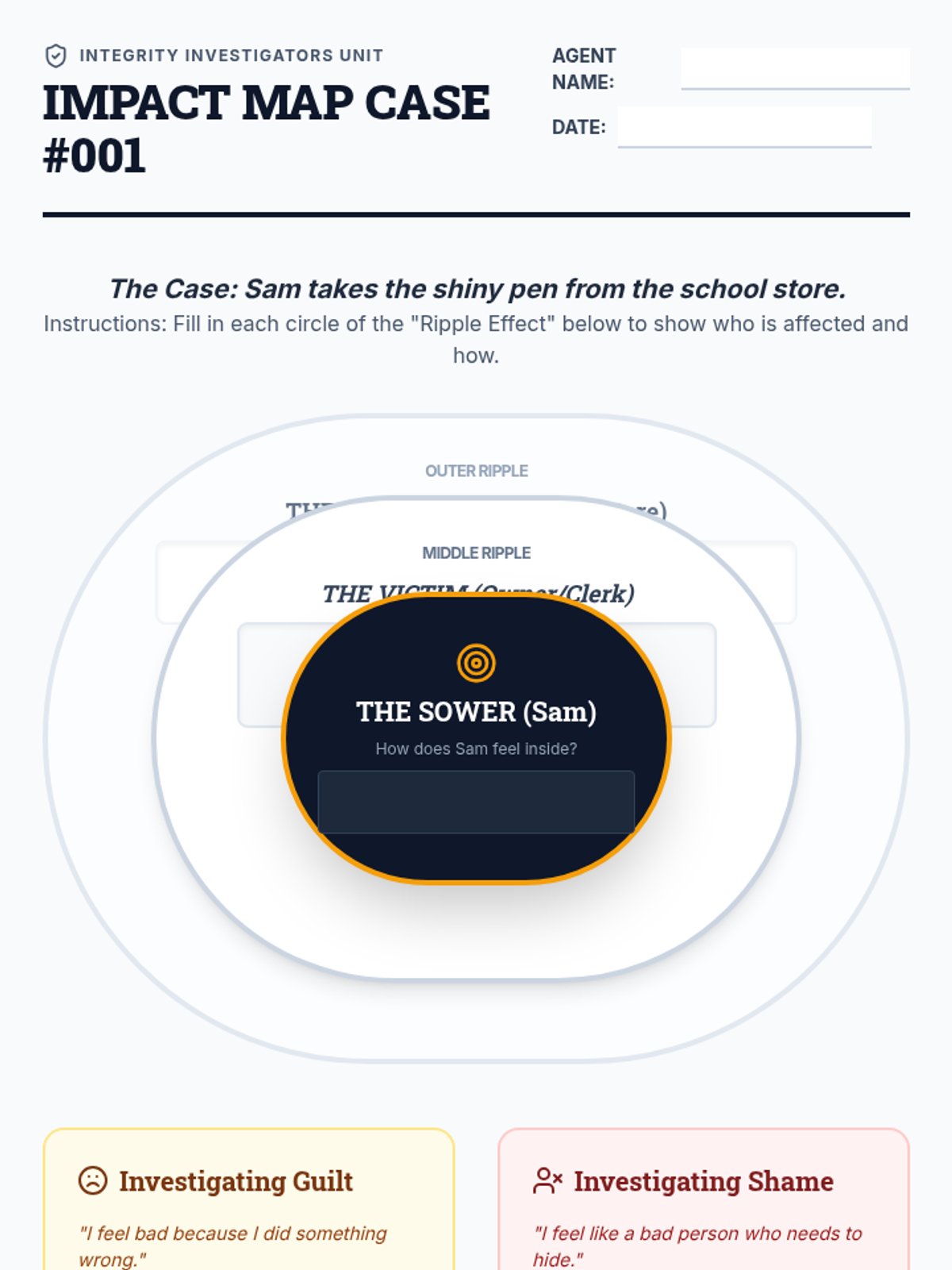 A 3-lesson SEL unit for Grades 3-5 focused on honesty, understanding the impact of stealing, and developing strategies to resist temptation. Students act as 'Integrity Investigators' to solve cases involving social-emotional dilemmas.