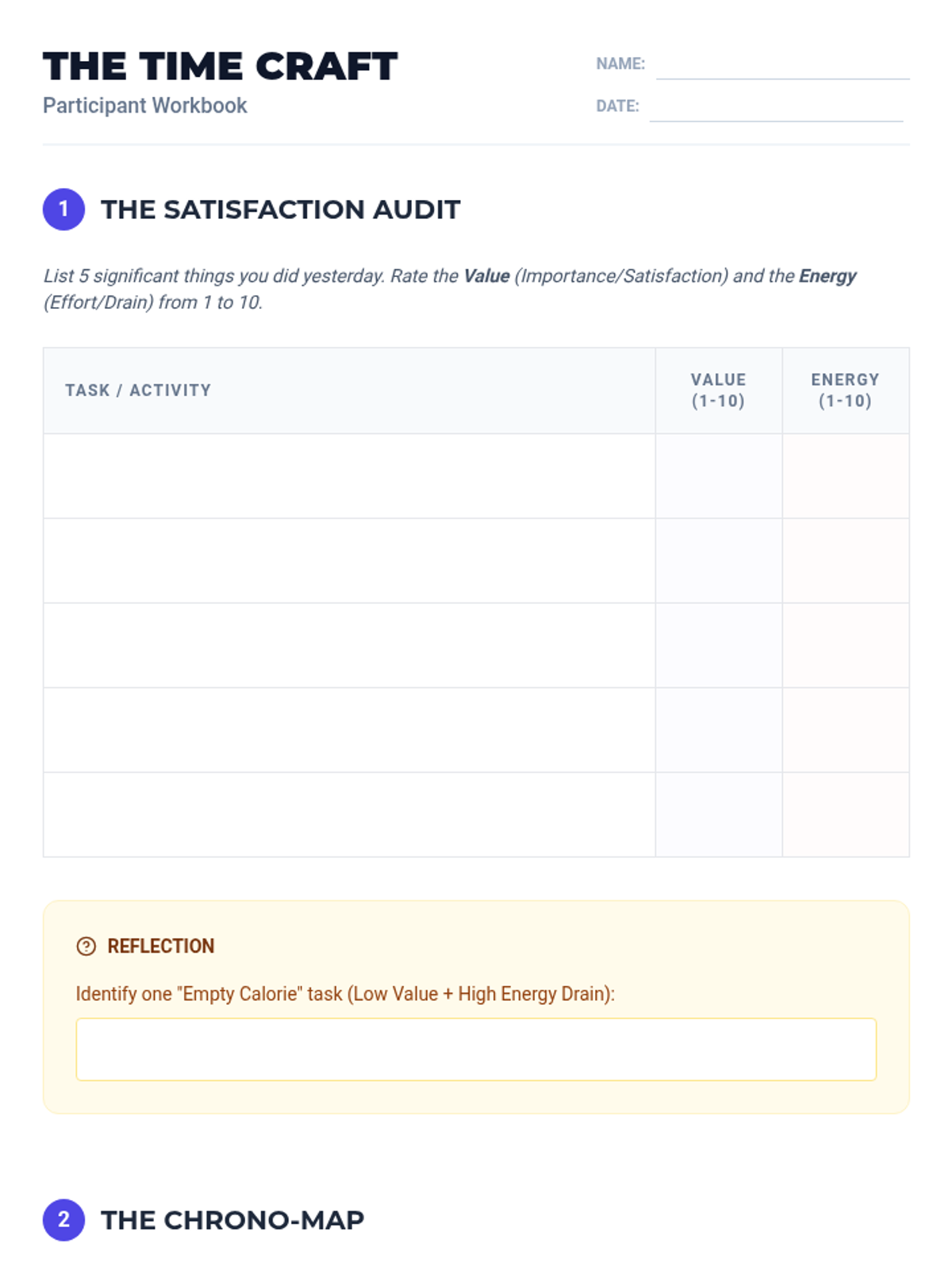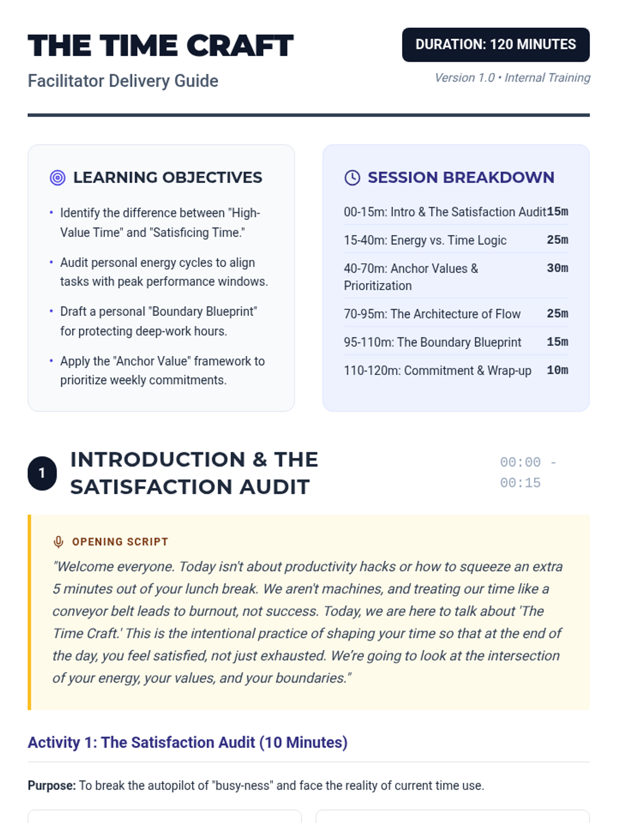 A comprehensive 4-hour mastery course on time satisfaction, moving from personal energy management to systemic leverage and environmental design.