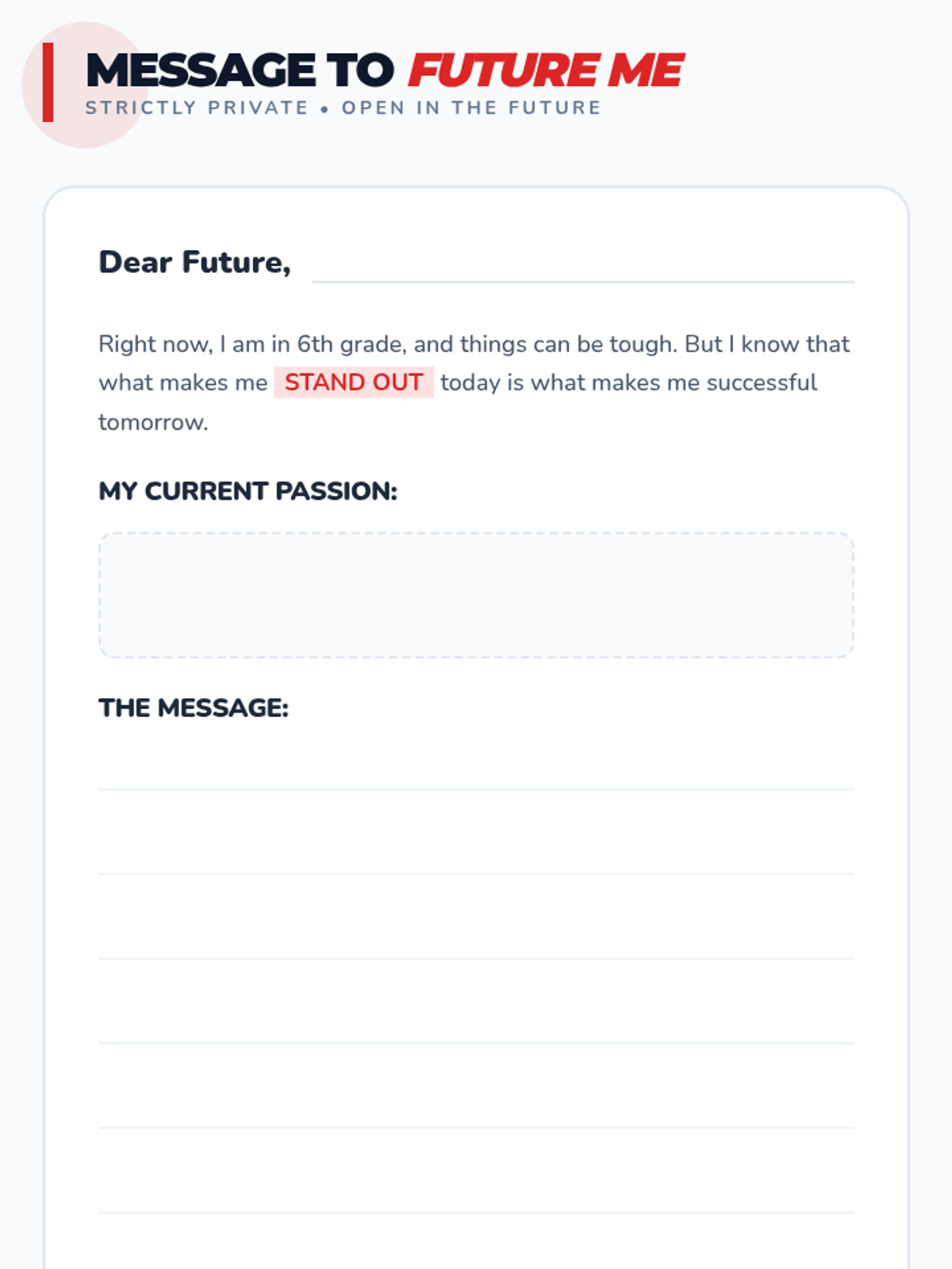 A series of mindset-shifting activities designed to help older elementary and middle school students develop resilience and long-term planning skills.