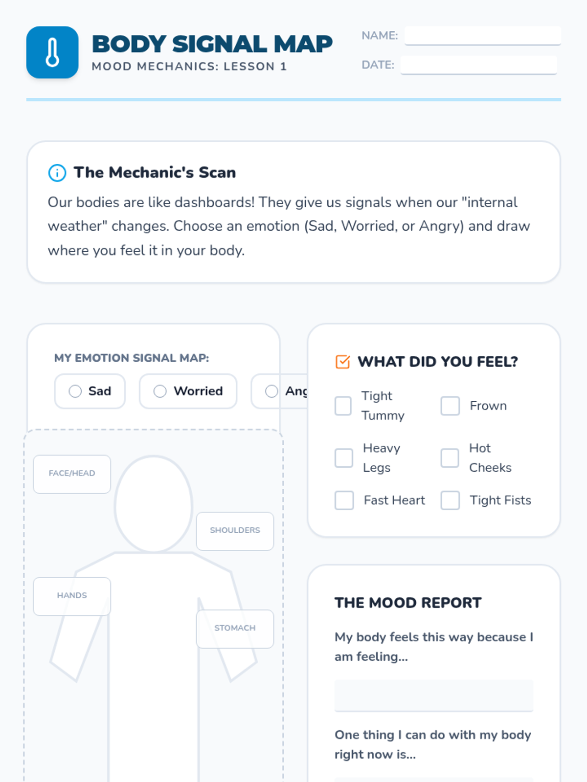 A sequence for 2nd graders to learn how behavioral activation—choosing positive actions—can help regulate emotions like sadness and anxiety. Students learn to recognize physical emotional cues and develop a personal 'Bounce-Back Plan' to shift their mood.