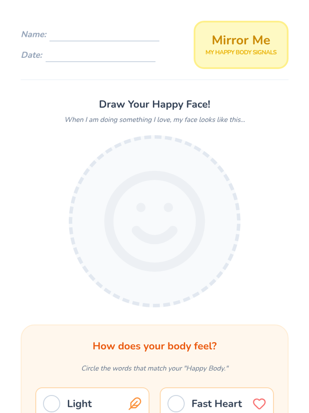 A therapeutic and self-discovery sequence for 2nd graders to identify personal sources of joy. Students explore the physical sensations of happiness, categorize their interests, and create a personalized 'Joy Menu' to use as a coping strategy for emotional regulation.