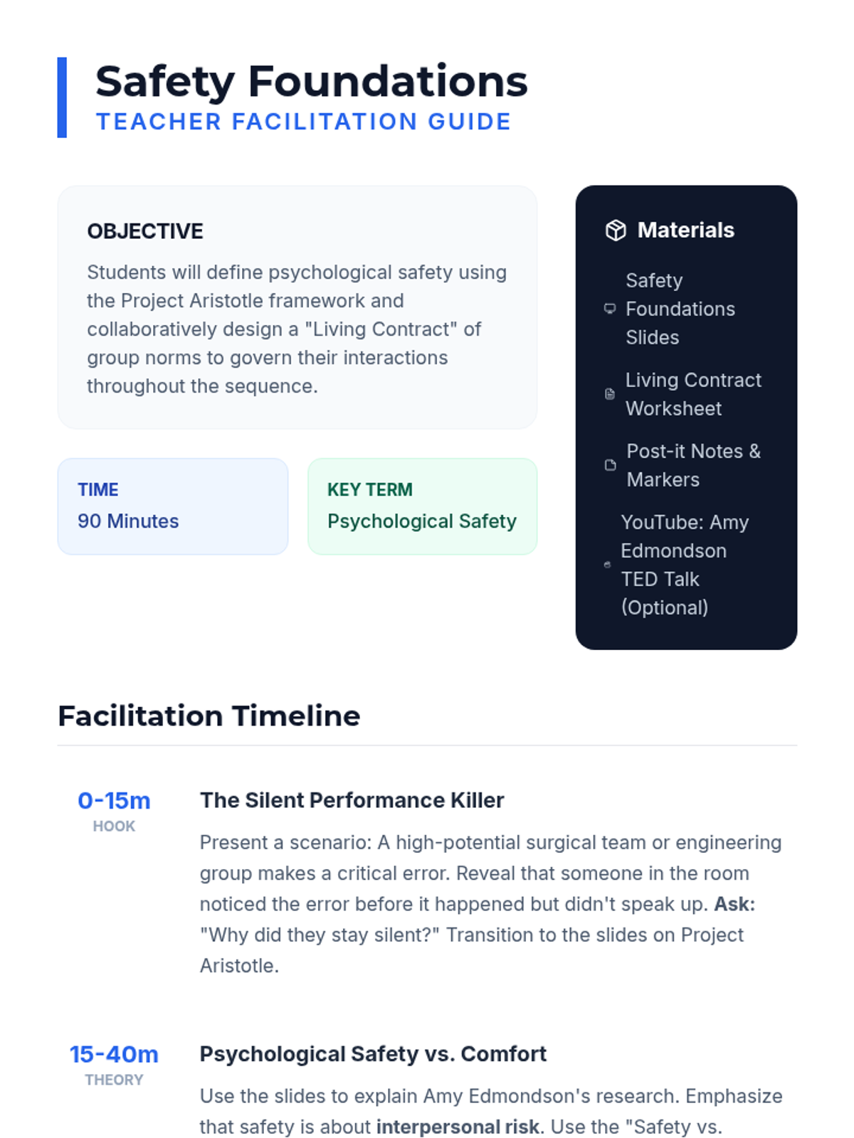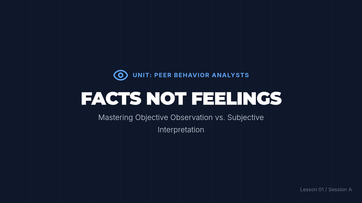 A high-intensity simulation-based unit for 12th graders focusing on situational awareness and the early detection of behavioral escalation in dynamic environments. Students take on the role of behavioral analysts to identify subtle cues before they lead to crisis.