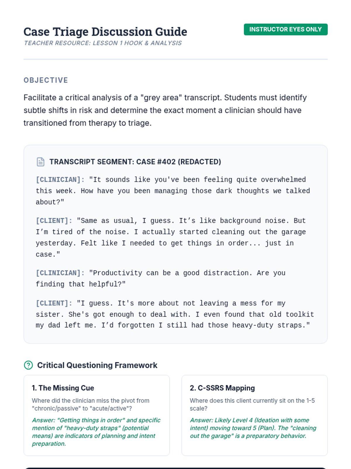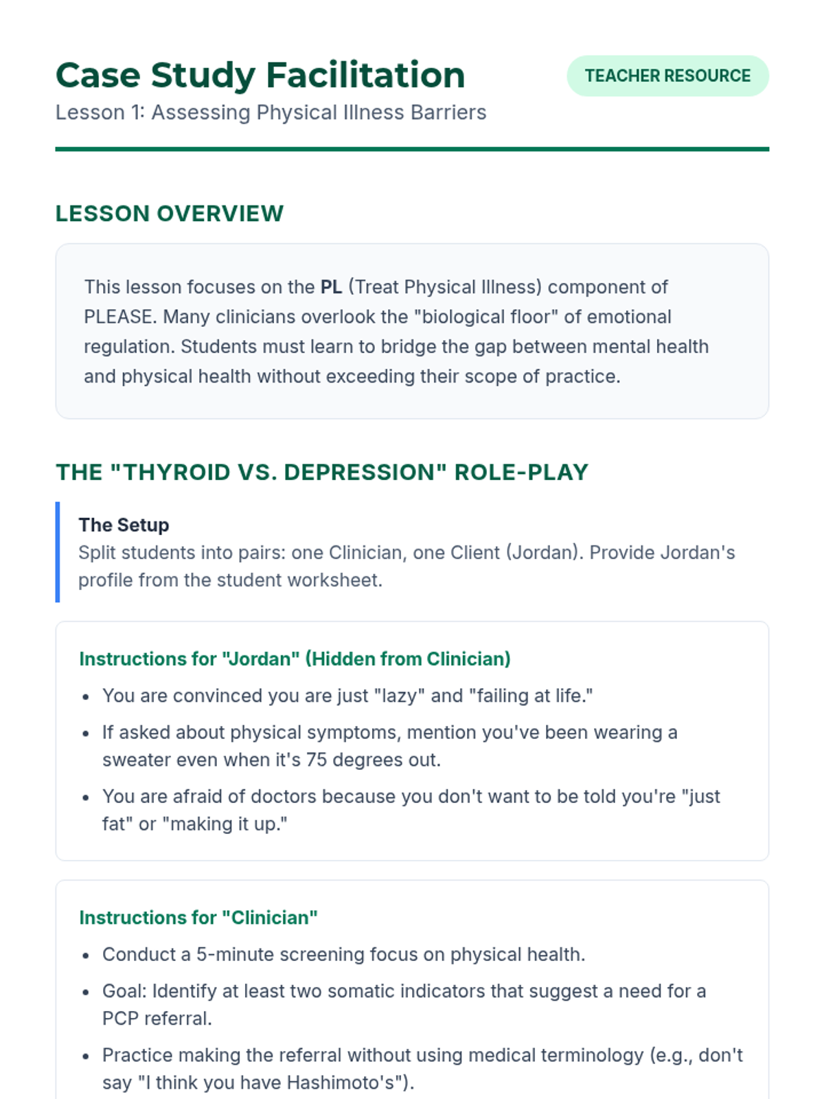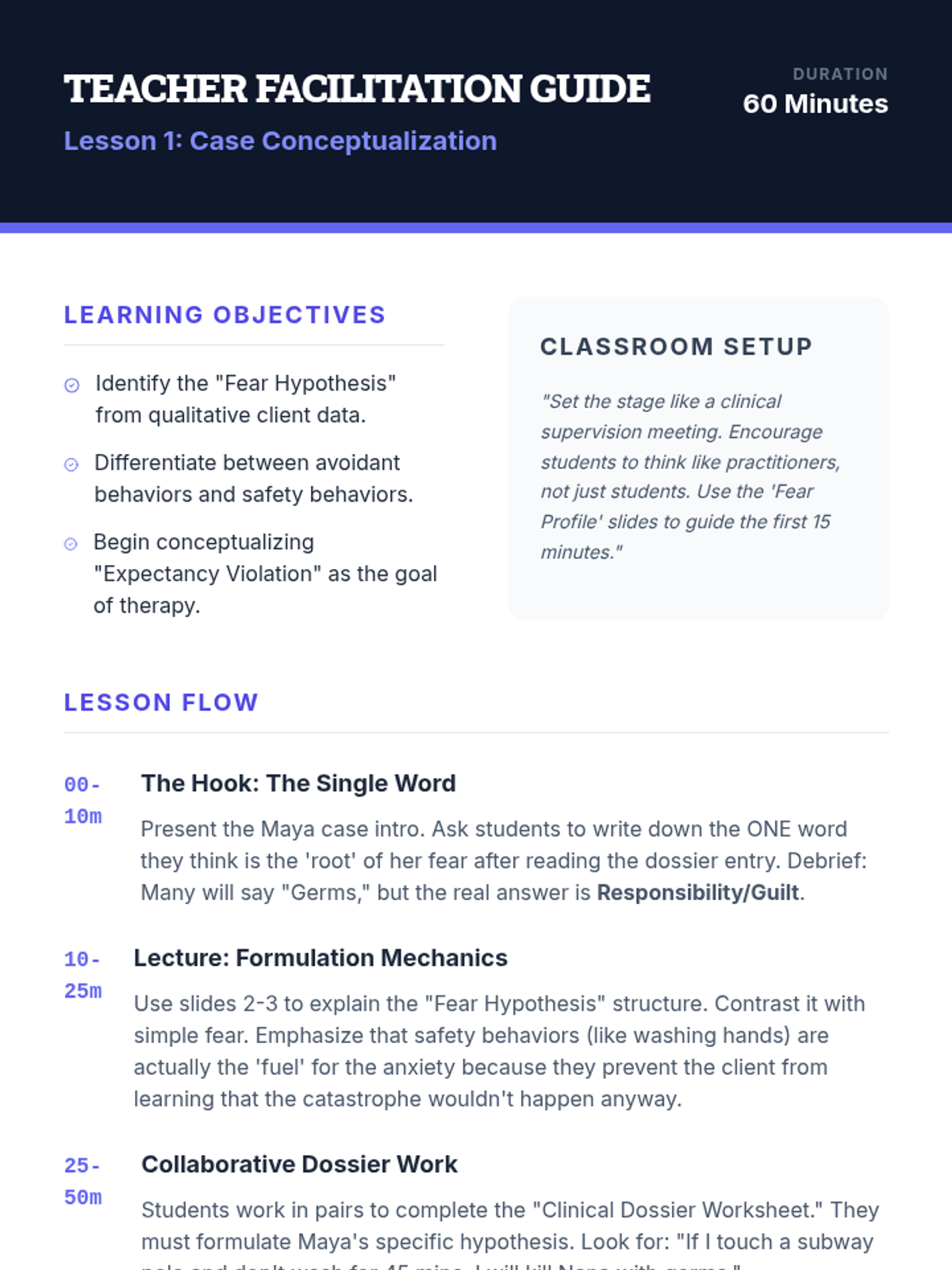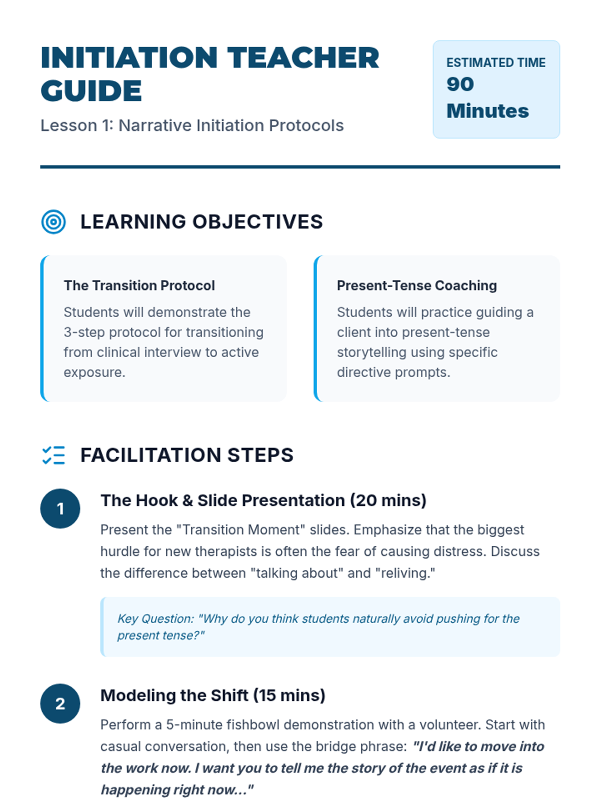 A comprehensive training sequence for undergraduate students focused on the clinical application of Thought Record tracking. Students transition from understanding the tool to facilitating it, mastering psychoeducation, Socratic questioning, and managing clinical resistance.