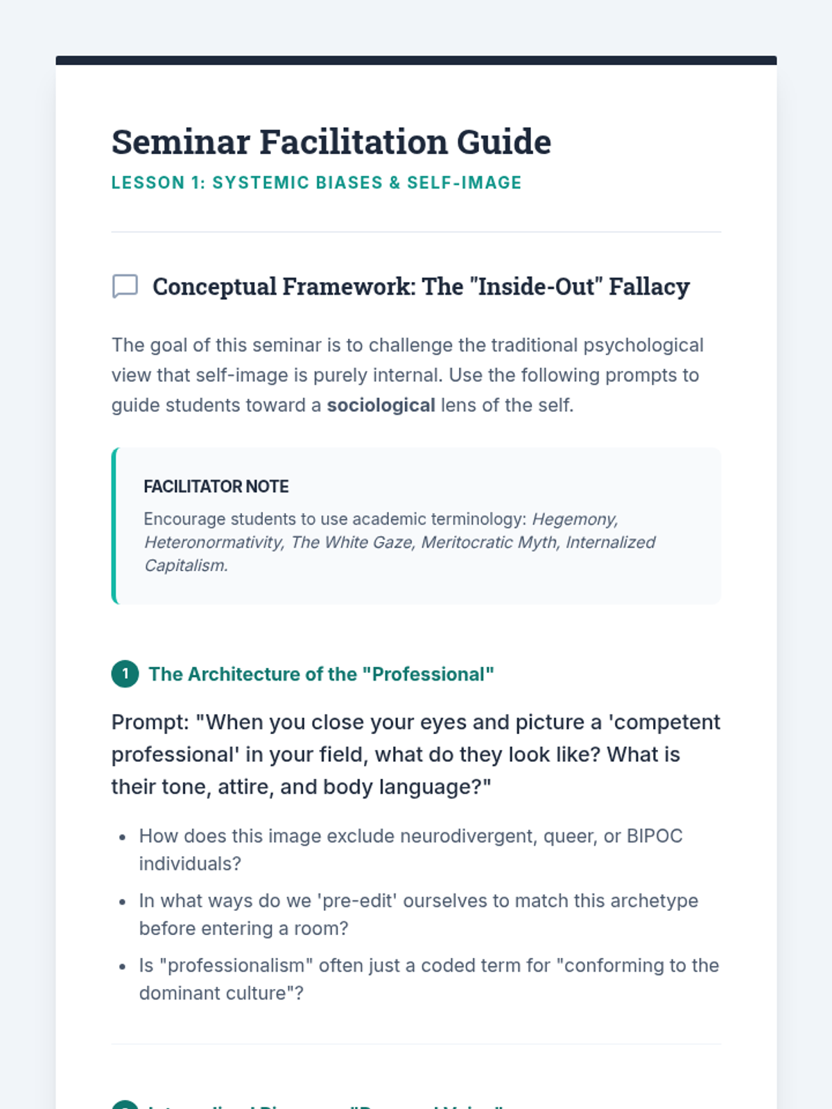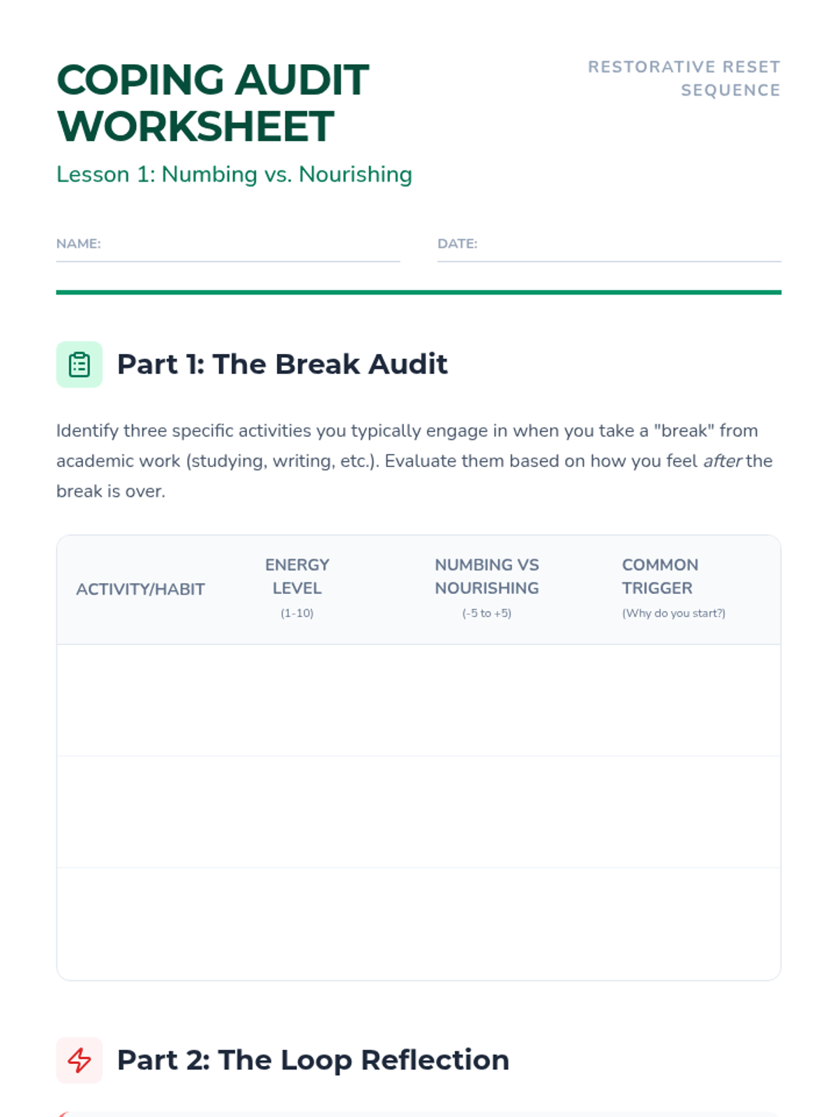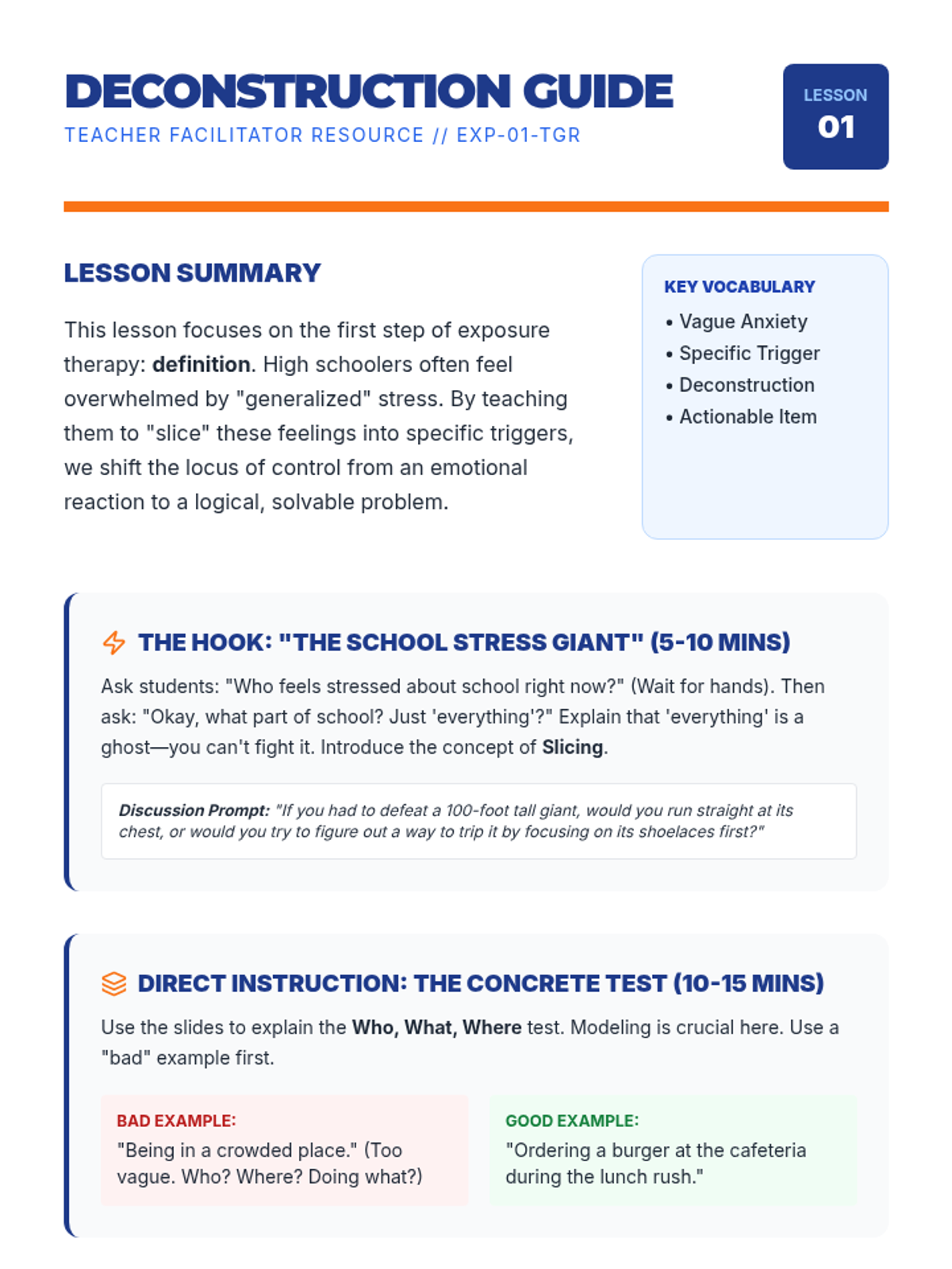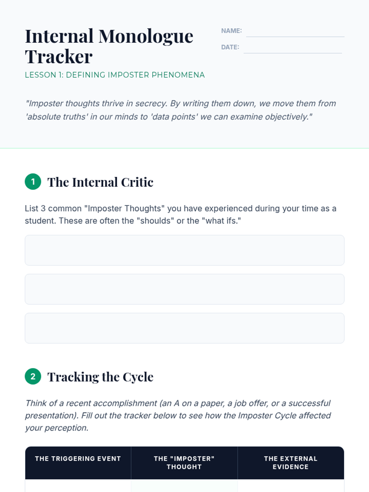 A comprehensive workshop sequence for graduate students to address academic anxiety through cognitive restructuring. The sequence explores Impostor Phenomenon, cognitive distortions, perfectionism, and professional identity to build long-term resilience.