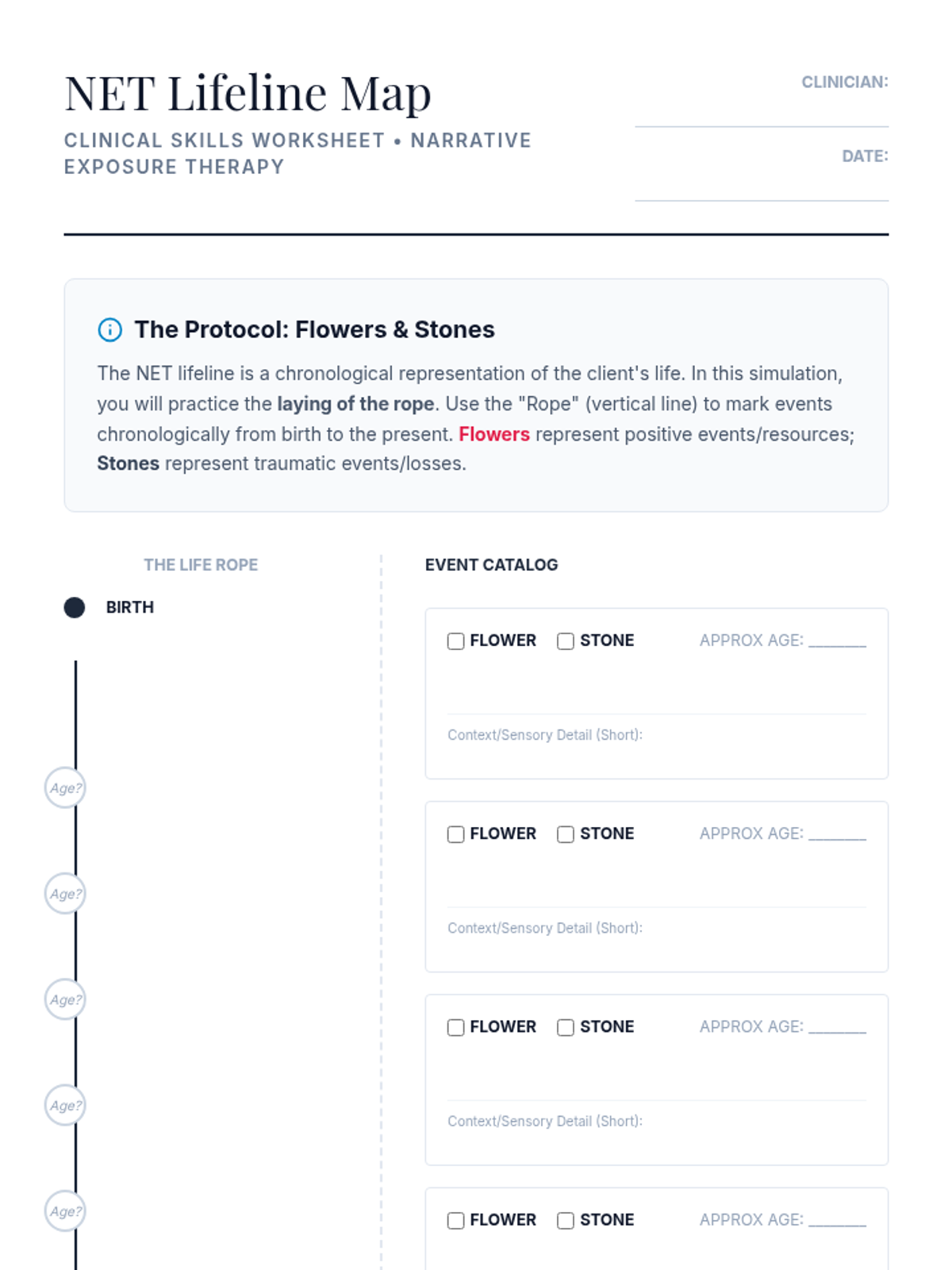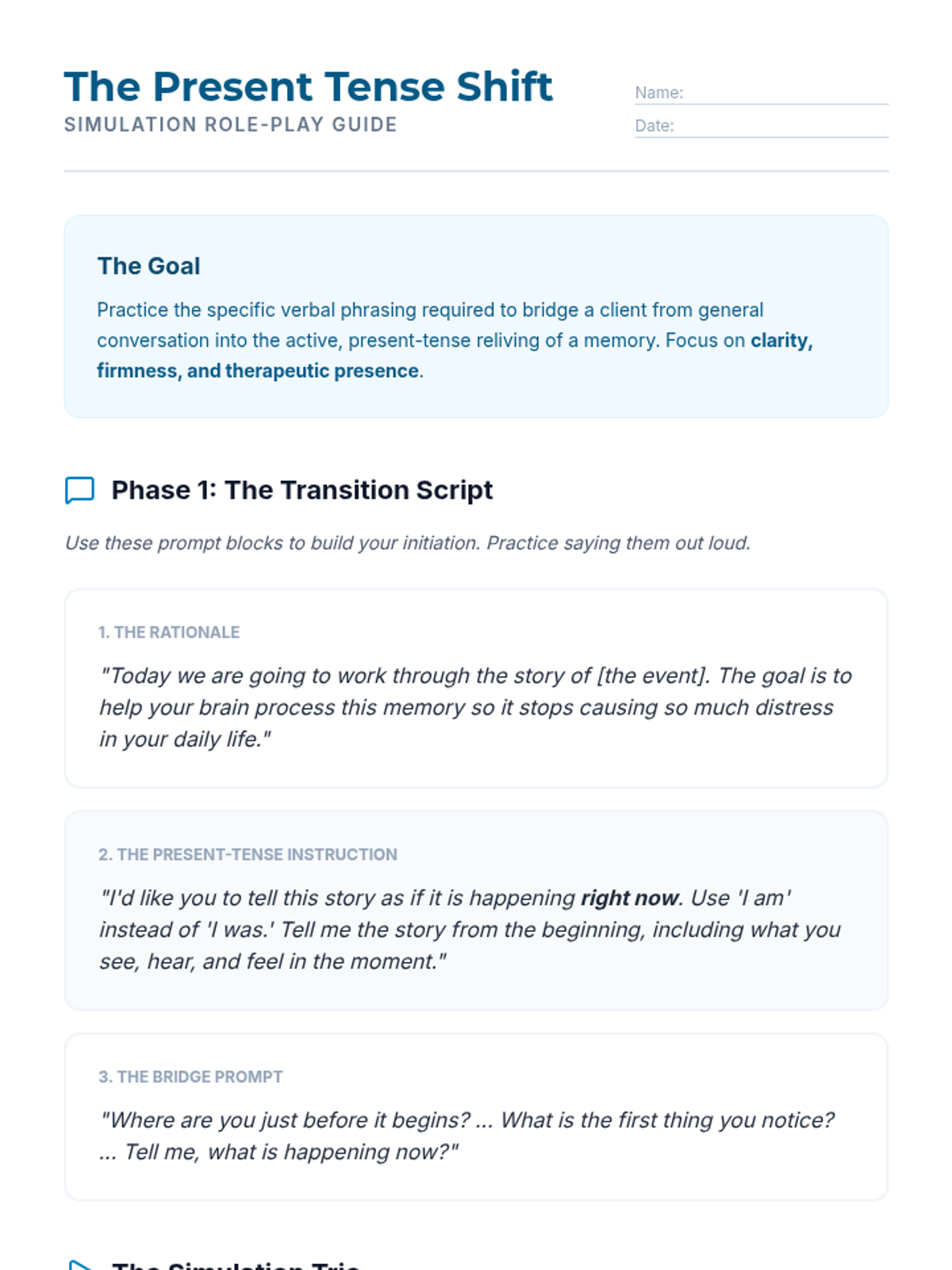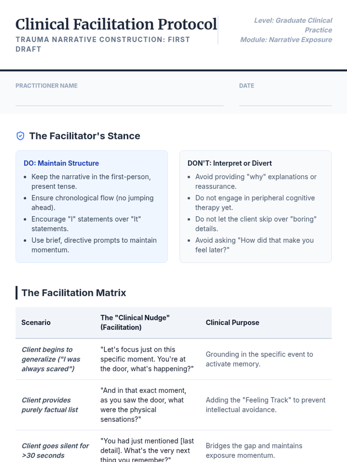 Developing Trauma StoryNarrative reconstruction techniques for integrating traumatic memories into a coherent chronological sequence. Targets emotional regulation, cognitive reframing, and the reduction of avoidance behaviors.