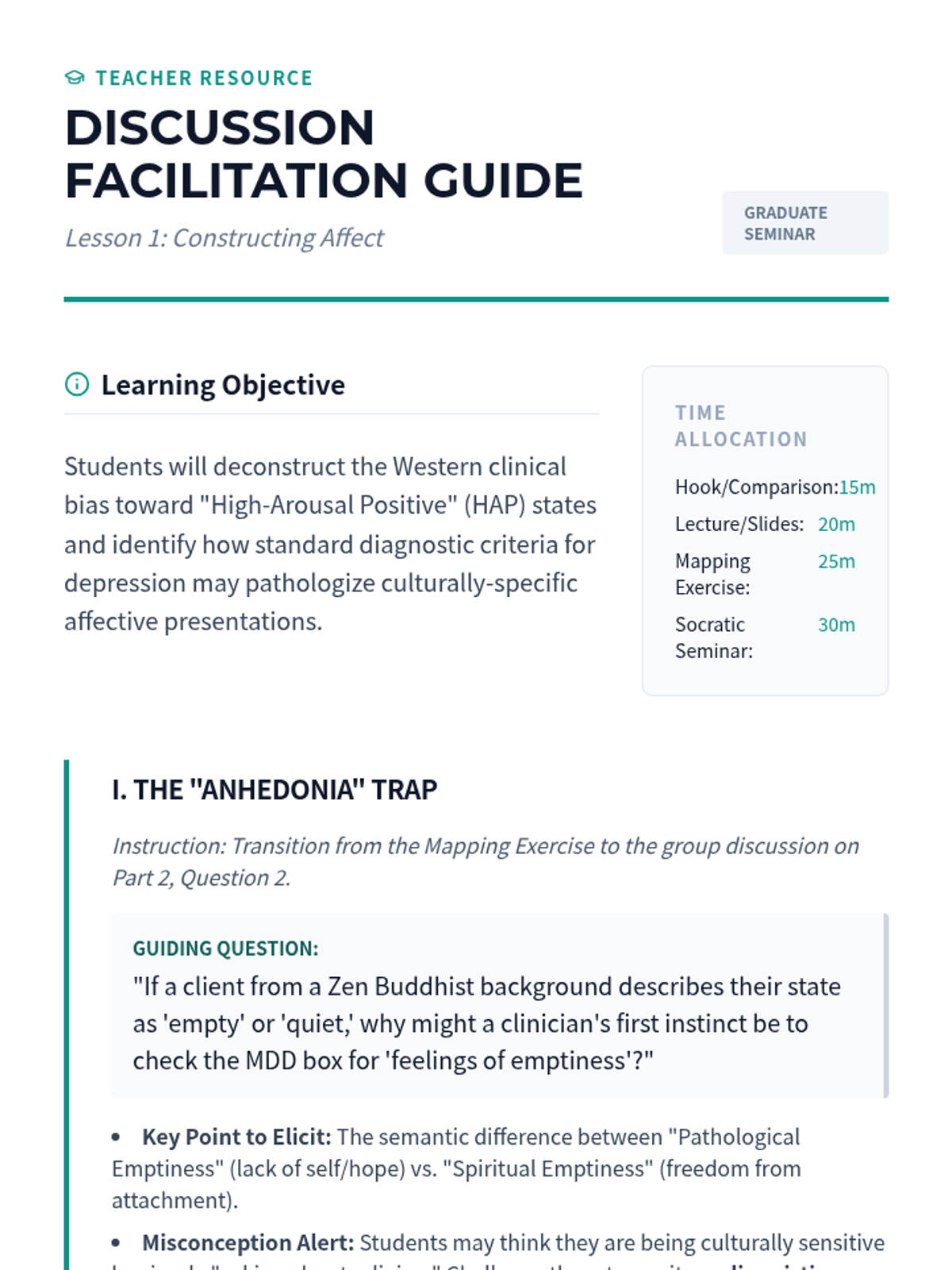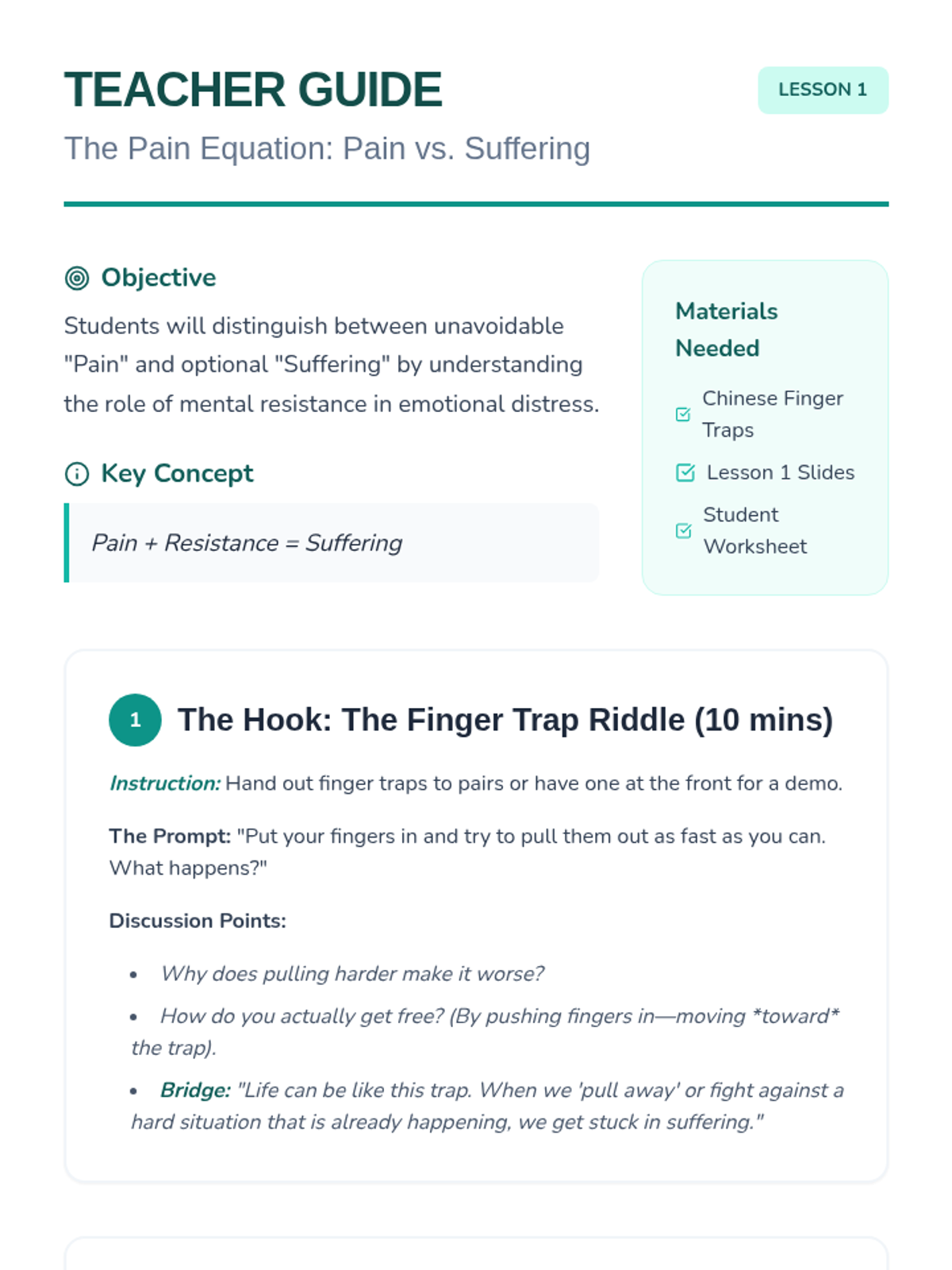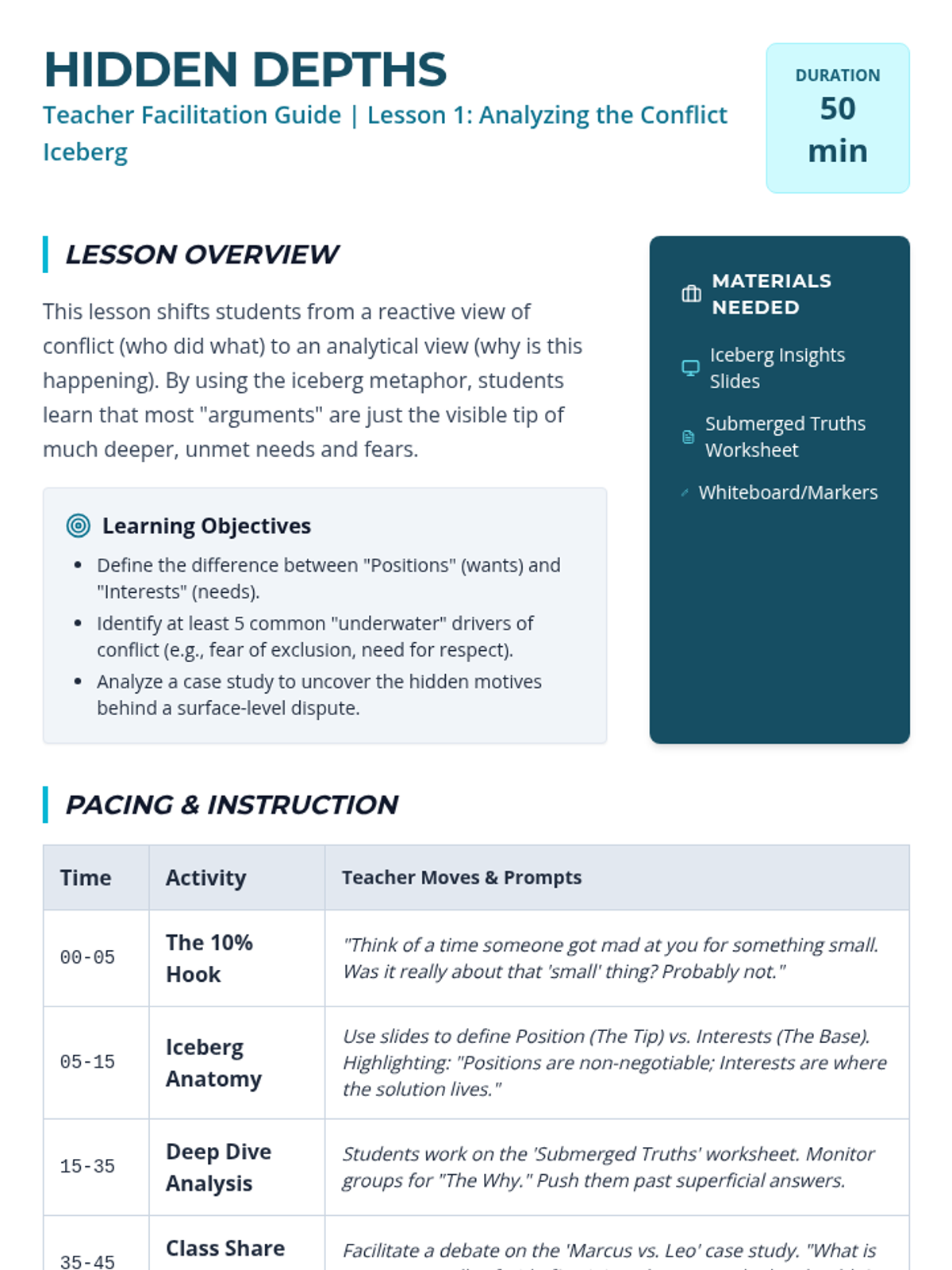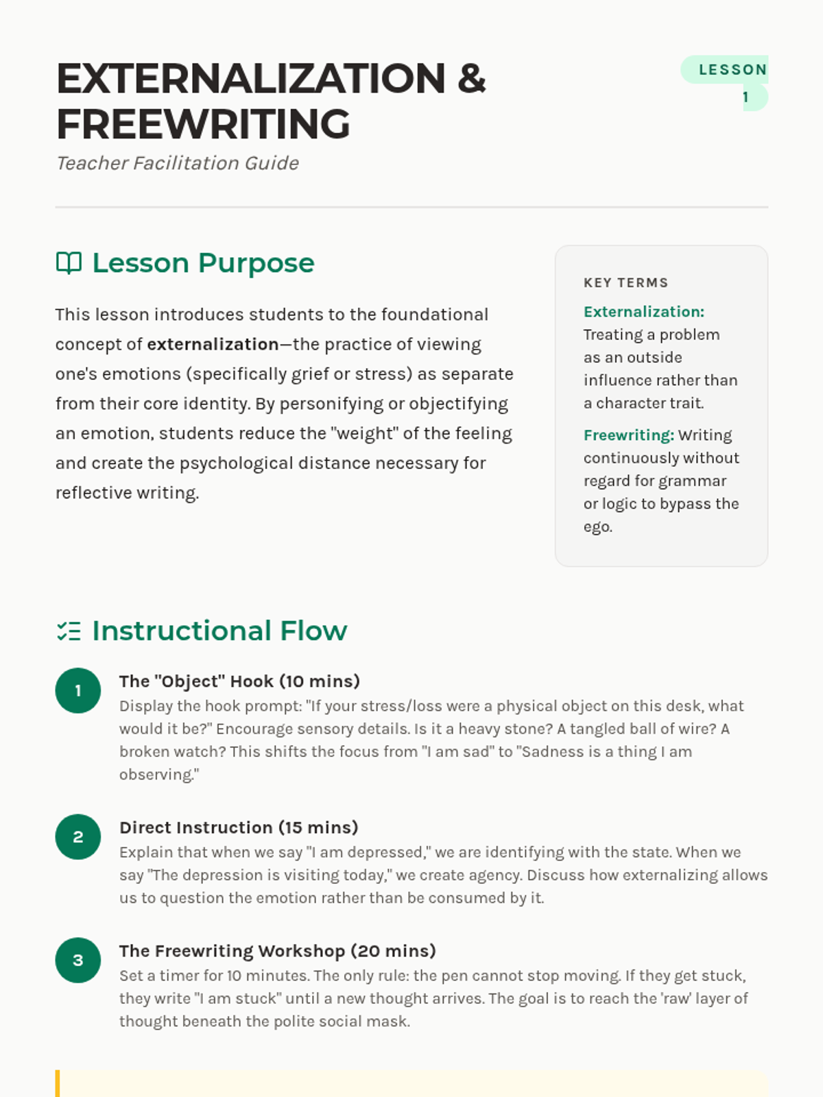 A comprehensive unit for 11th-grade students focusing on complex emotion labeling through dialectical thinking, case studies of imposter syndrome, empathy gap analysis, and transition-related emotions. Students develop sophisticated perspective-taking and conflict-resolution skills by moving beyond surface-level labels to identify mixed emotional states.
