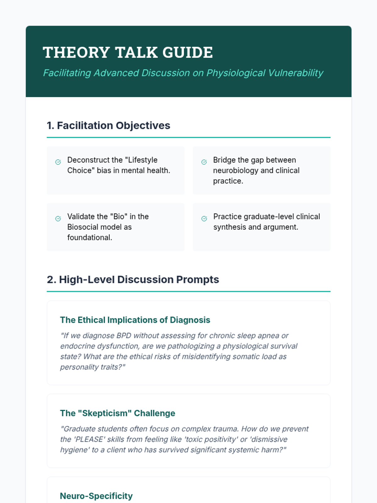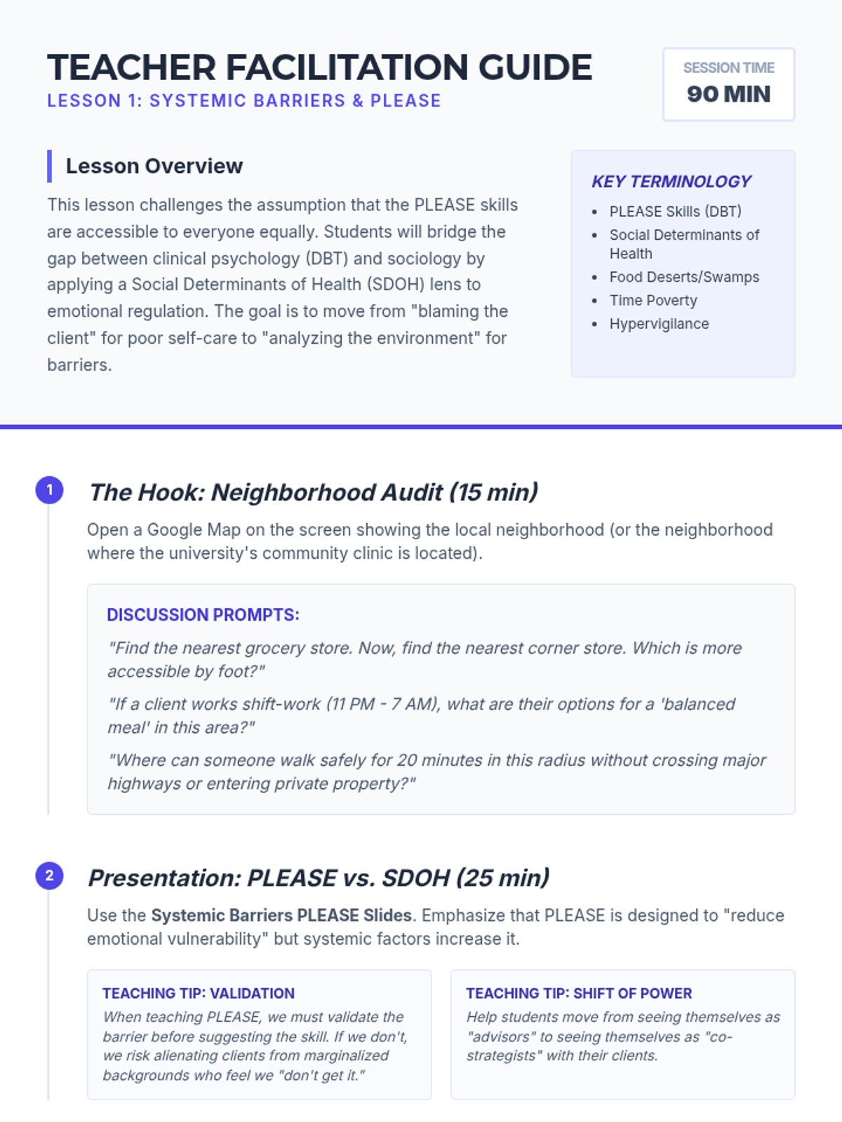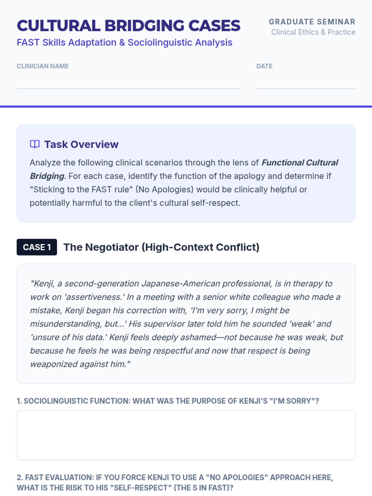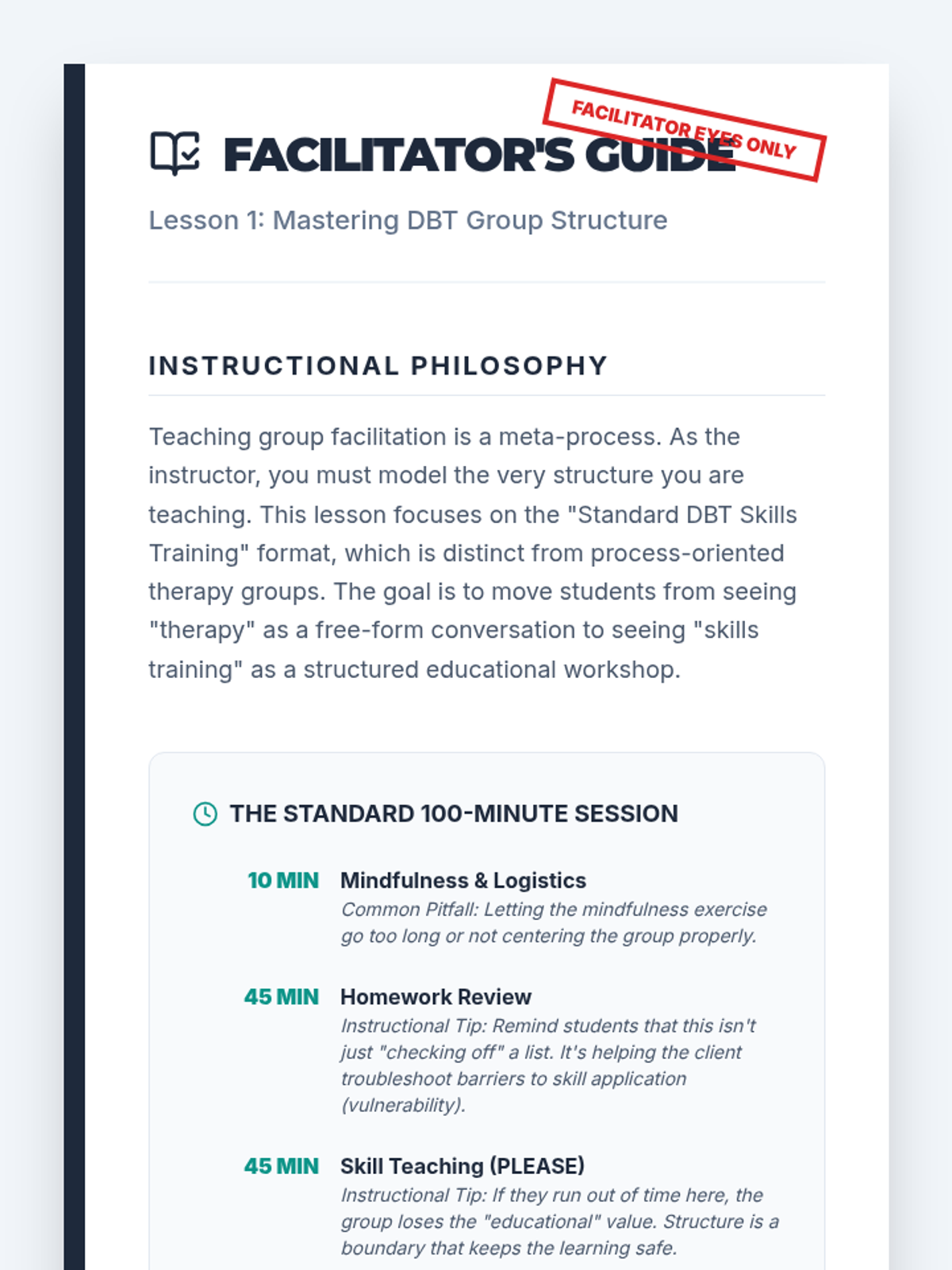 An advanced clinical training sequence for graduate students to master the DBT DEAR MAN communication protocol, focusing on theoretical depth, precise scripting, and high-fidelity simulation.