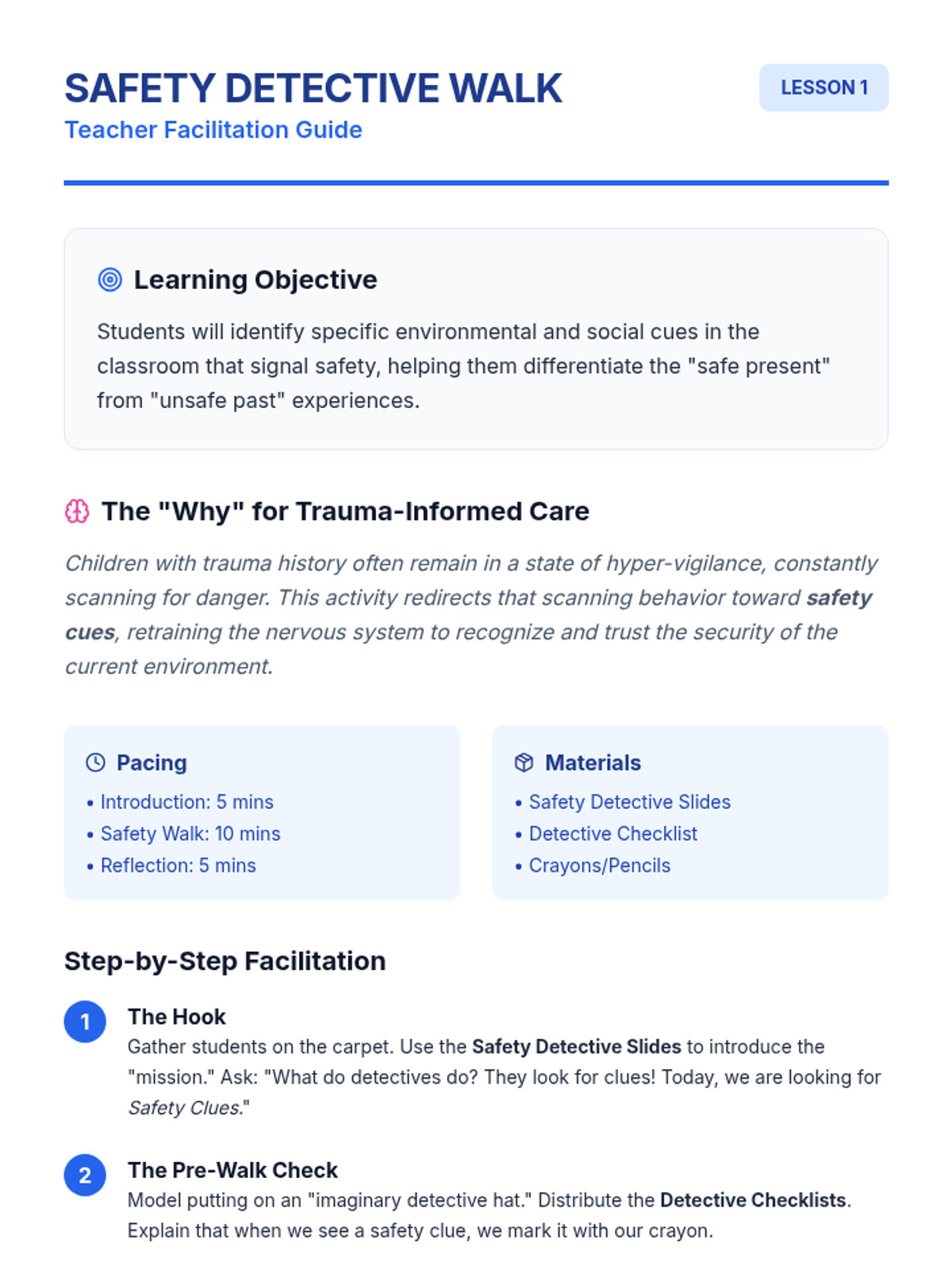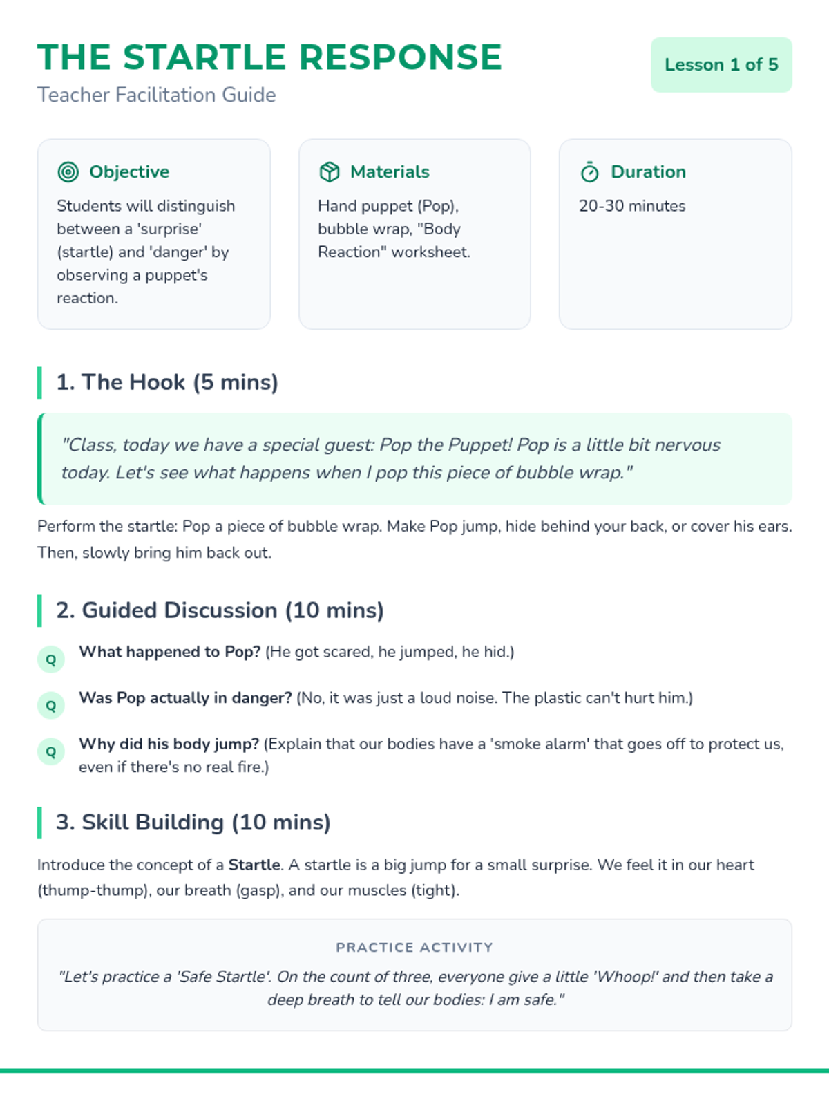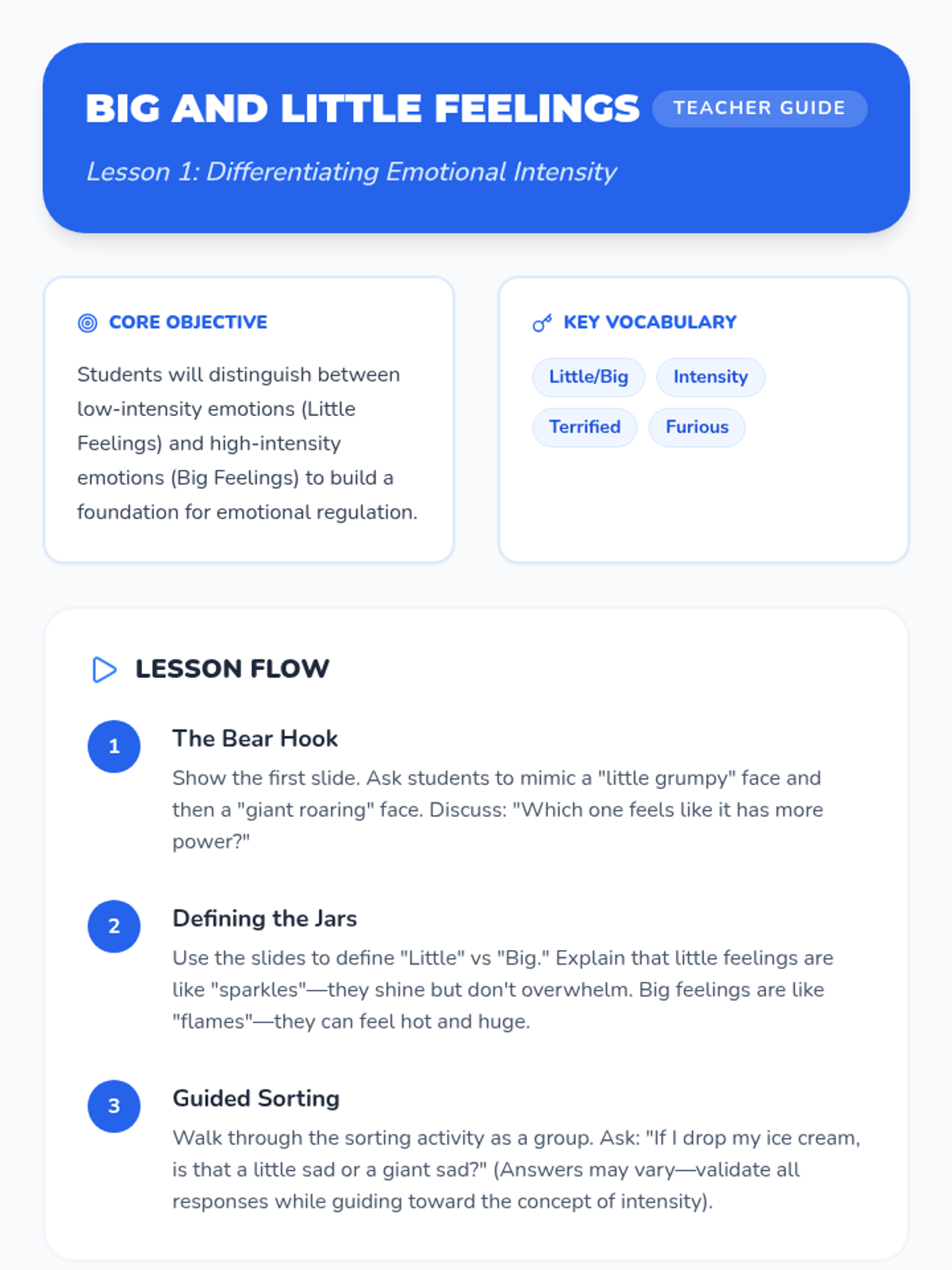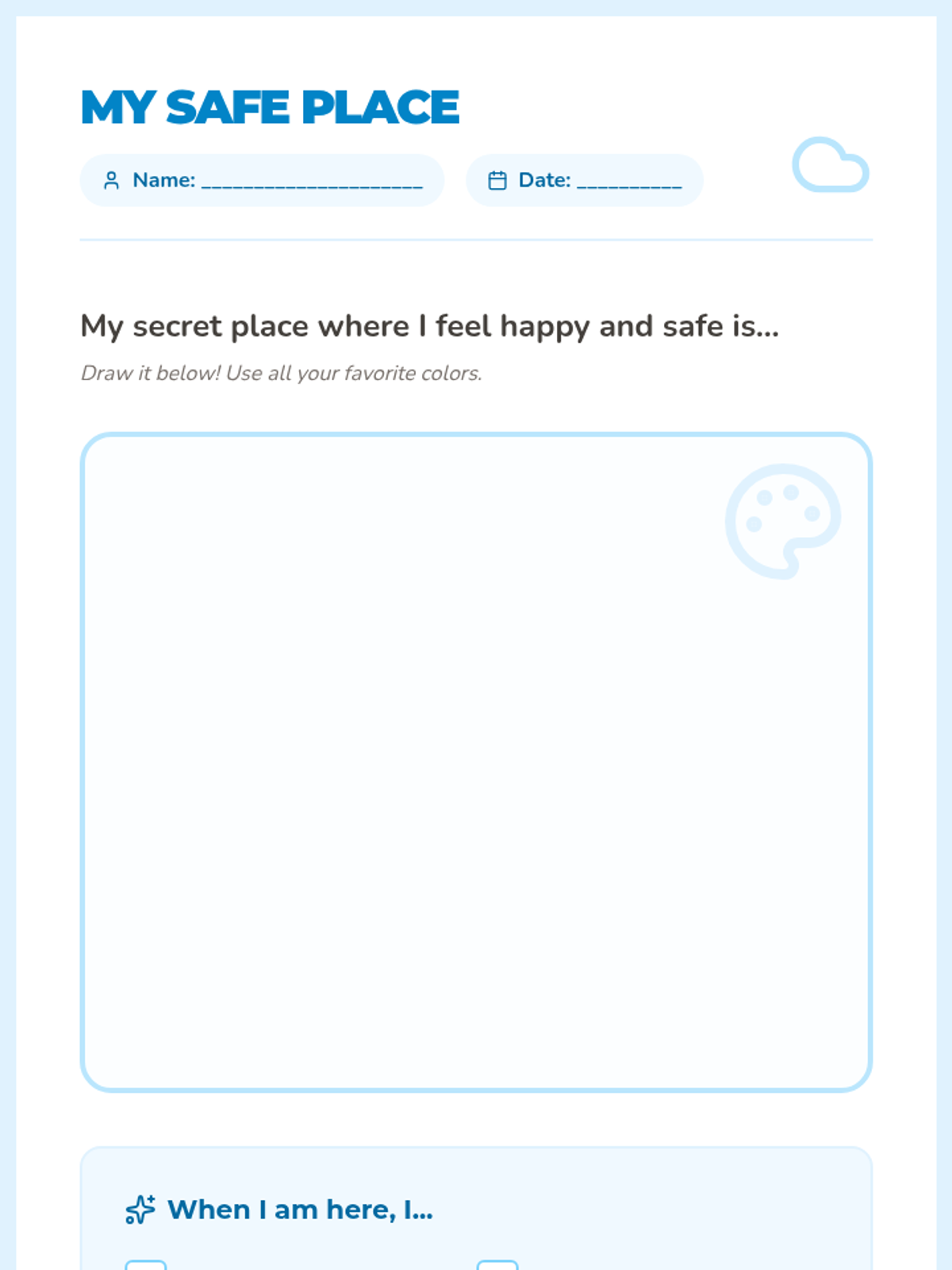 This sequence teaches Pre-K students how to build a mental safe place using their five senses. By focusing on sight, sound, touch, and smell, children create a vivid grounding tool for emotional regulation and self-soothing.