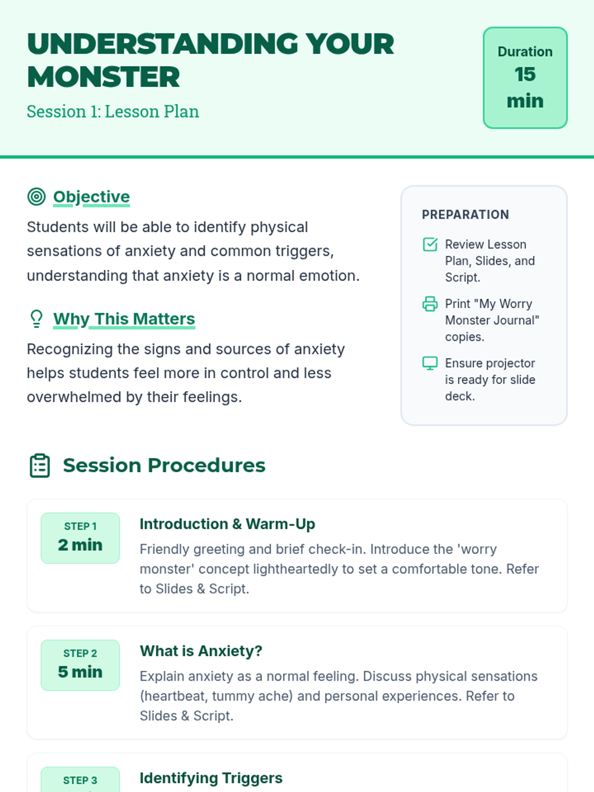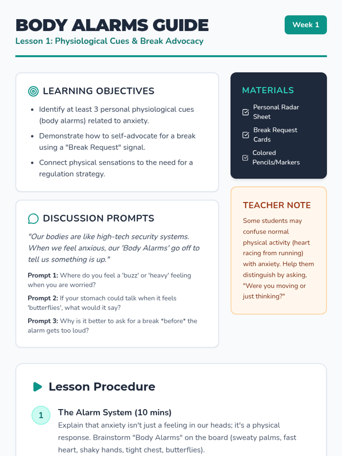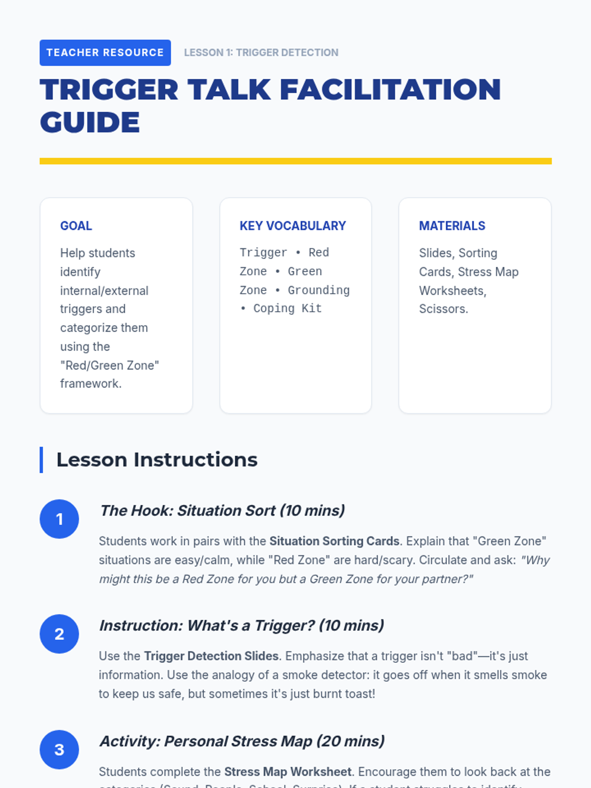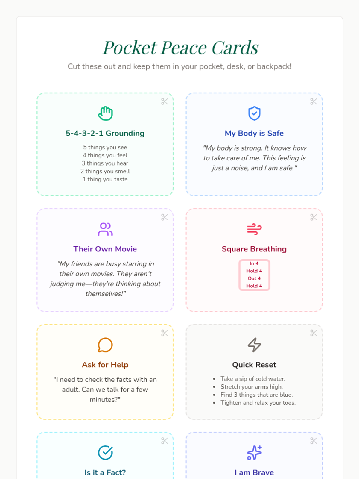 This sequence teaches Pre-K students how to build a mental safe place using their five senses. By focusing on sight, sound, touch, and smell, children create a vivid grounding tool for emotional regulation and self-soothing.