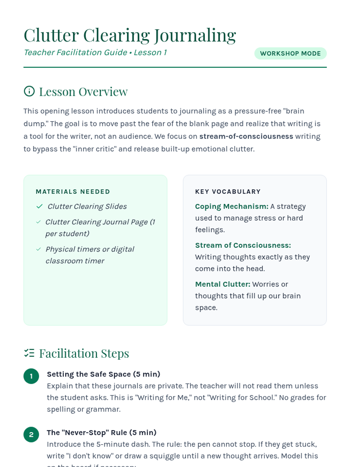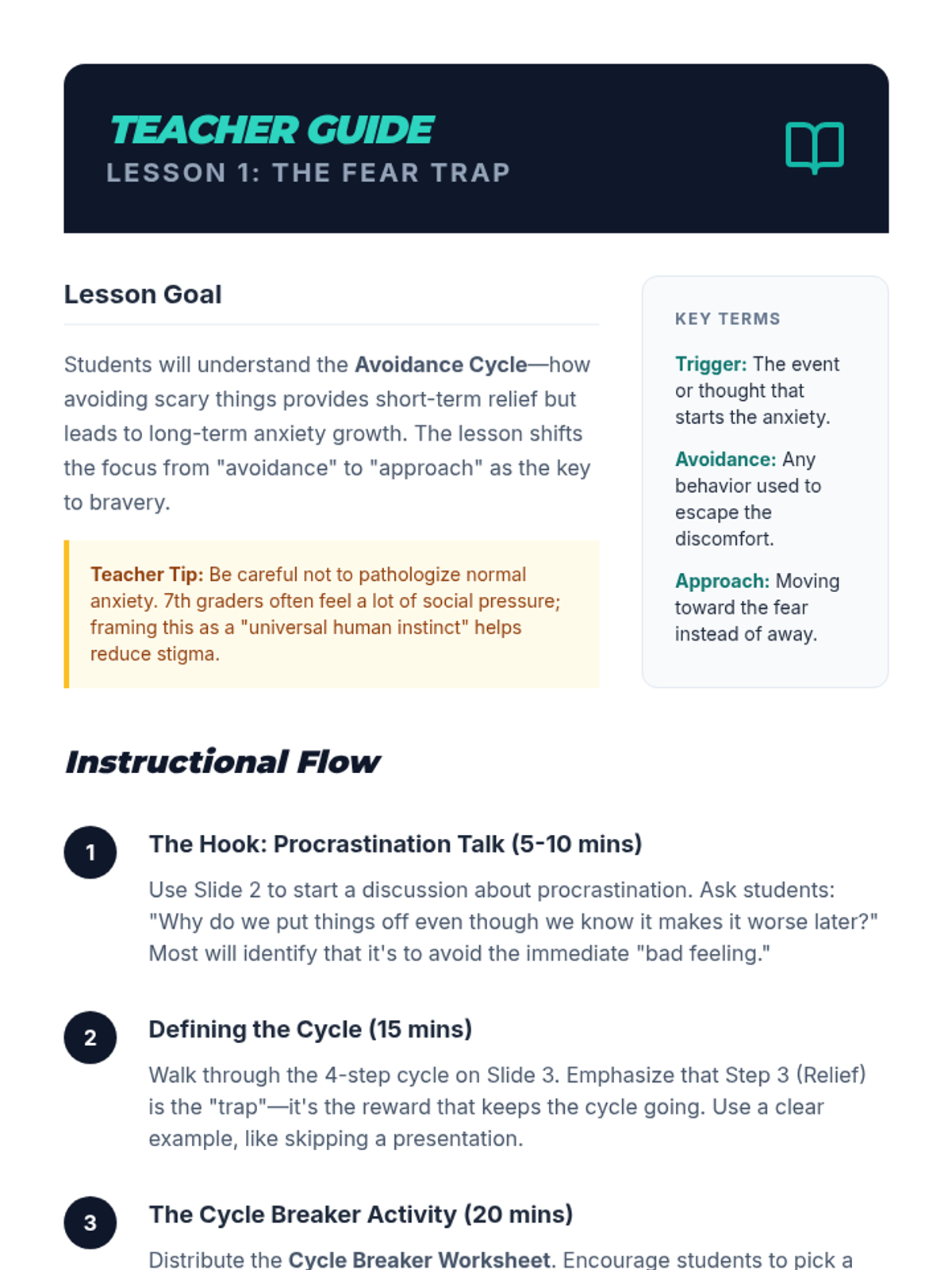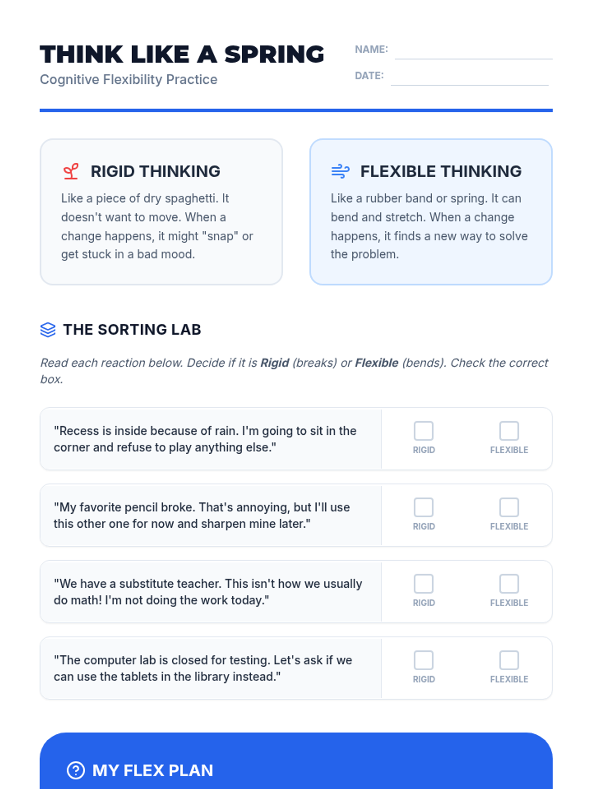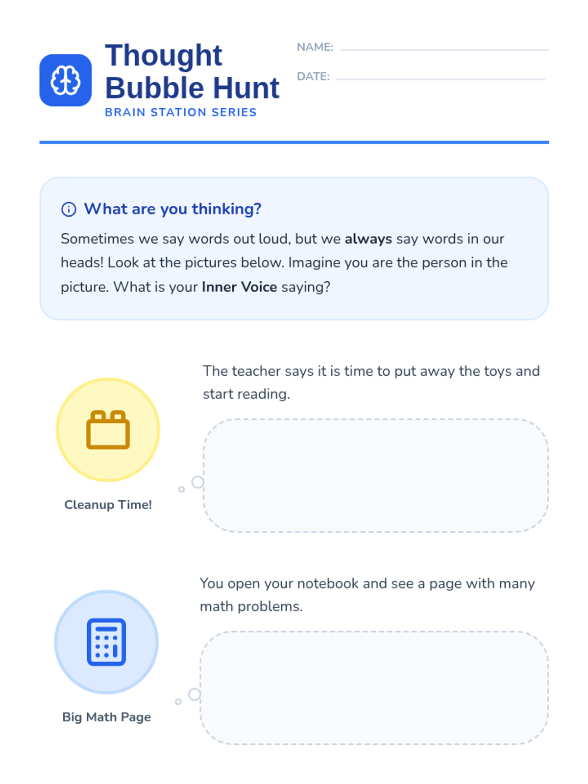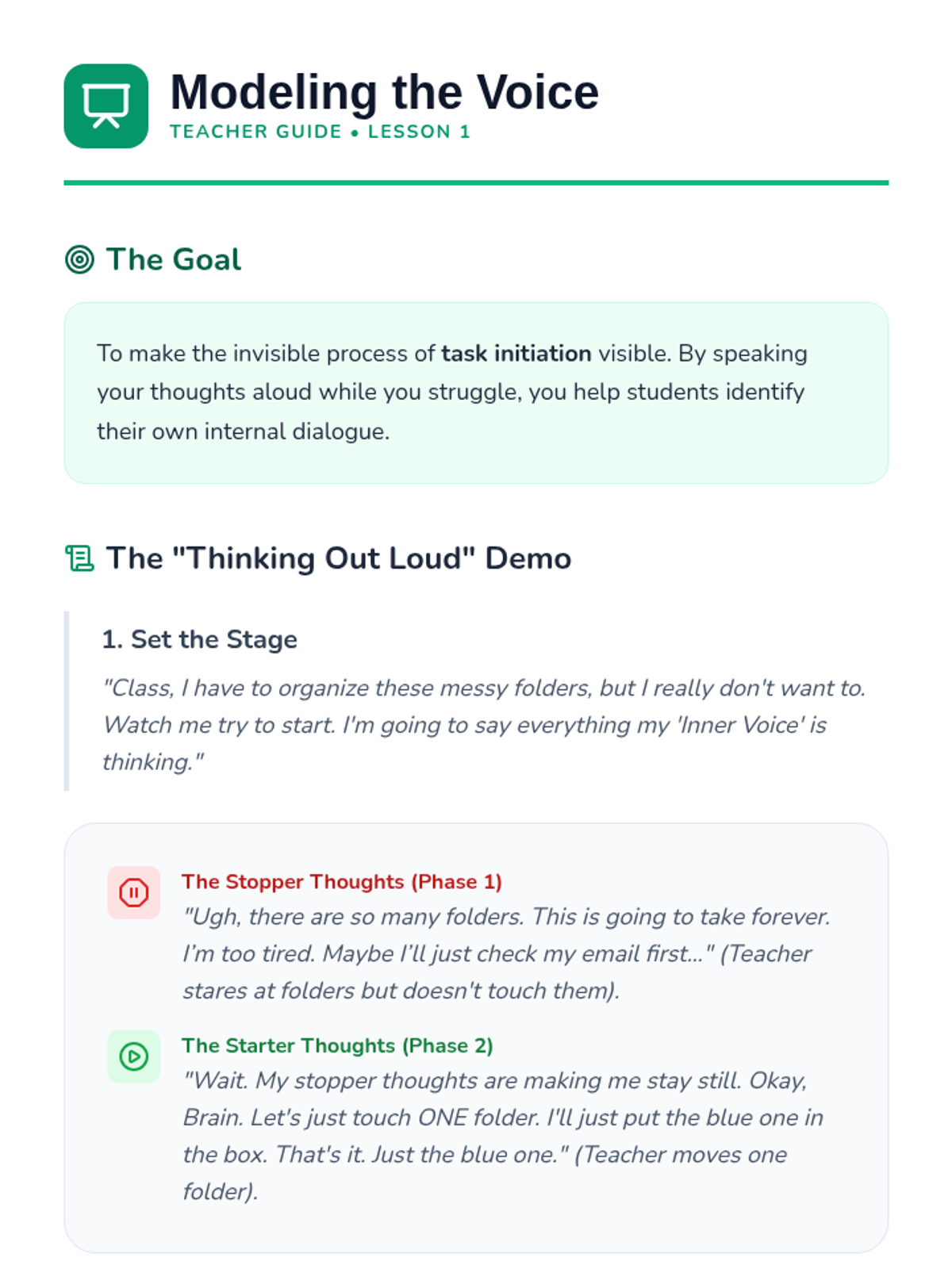 This sequence helps 2nd graders understand their 'inner voice' and use it as a tool for task initiation. Students learn to identify 'stopper' thoughts and replace them with 'starter' thoughts to overcome resistance and get to work.