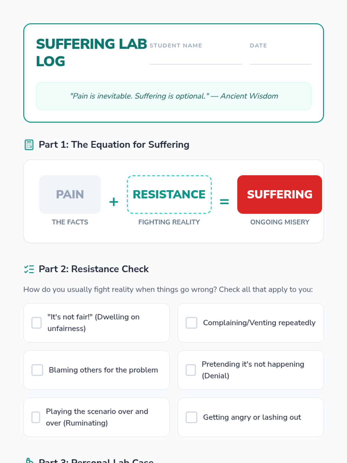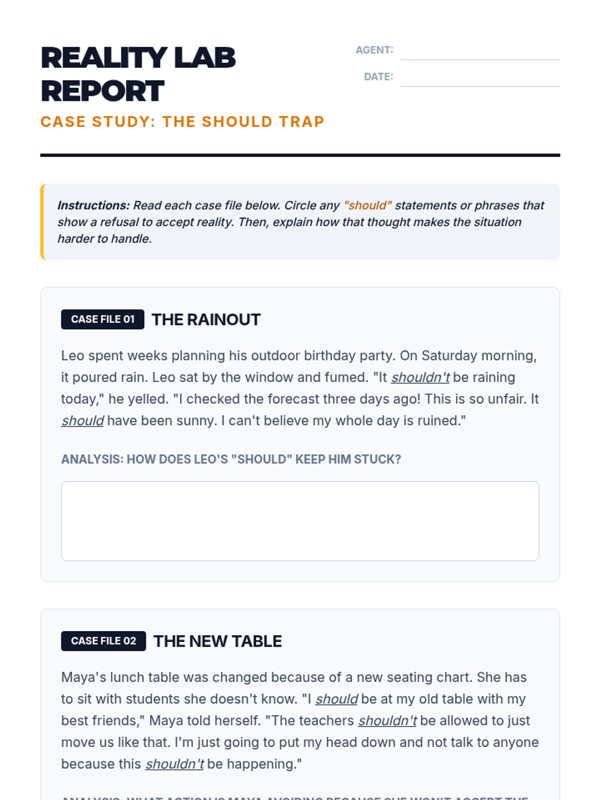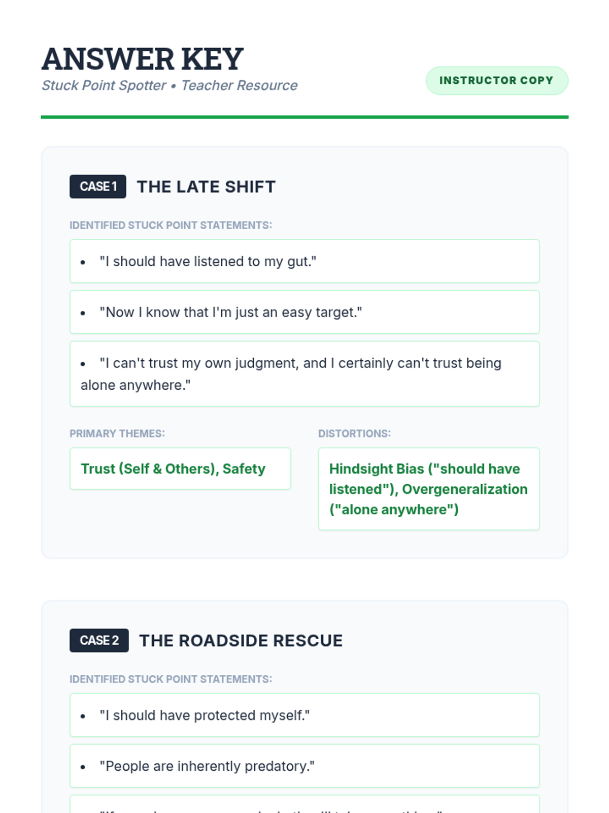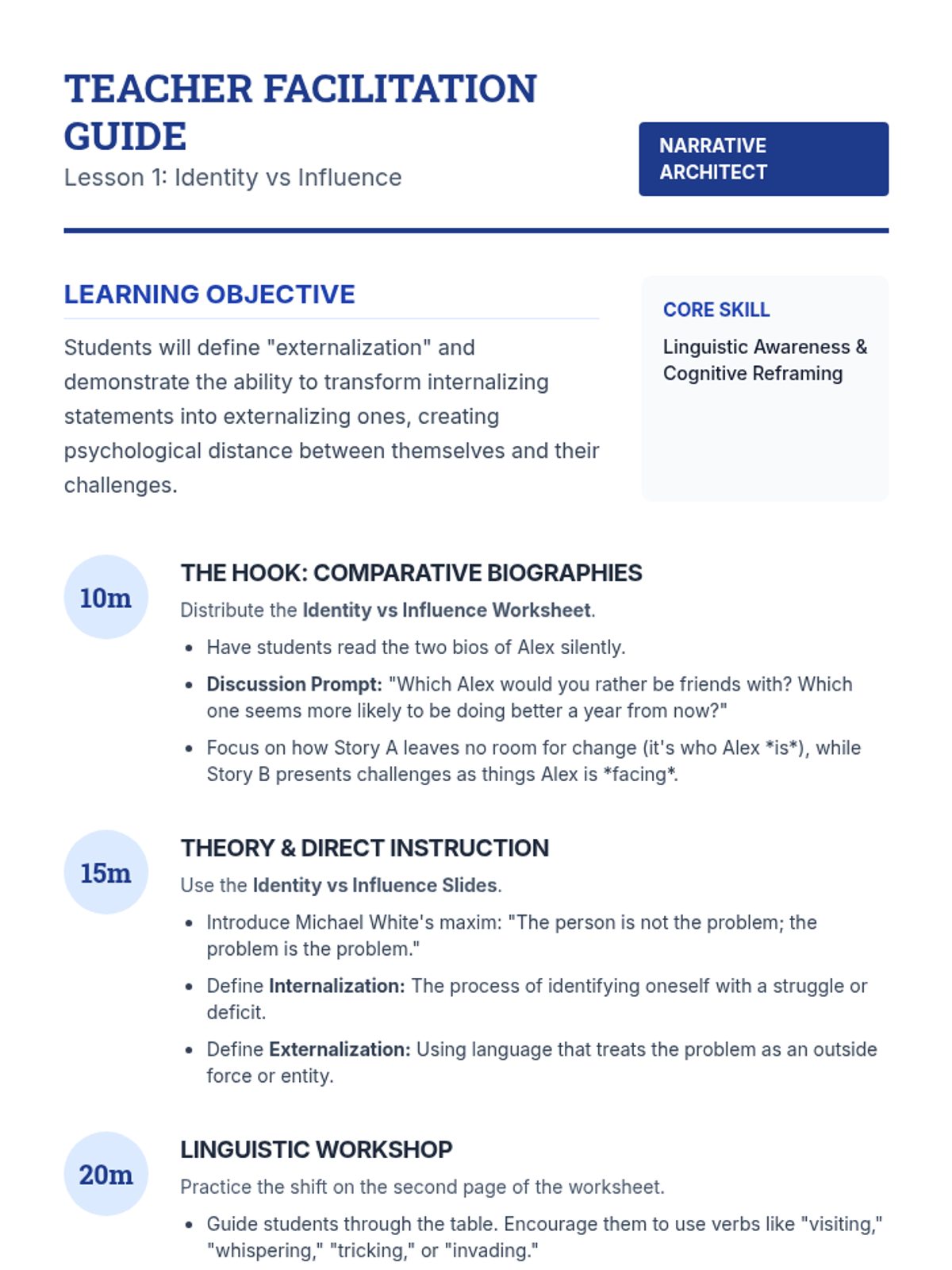 A comprehensive workshop-style sequence for undergraduate students to master cognitive reframing techniques. Students progress from identifying distortions to deconstructing beliefs and building resilient internal narratives.