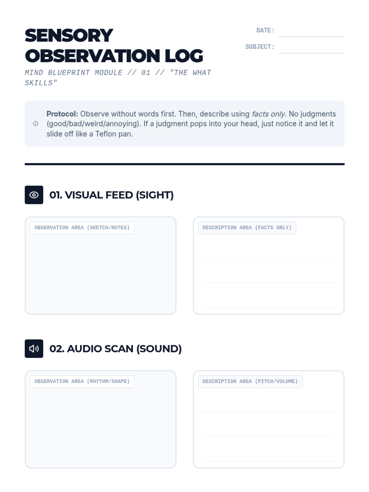 Non-Judgmental ObservationTechniques for labeling internal and external experiences using neutral, factual language instead of evaluative judgments. Supports emotional regulation and objective self-awareness in clinical and mindfulness settings.