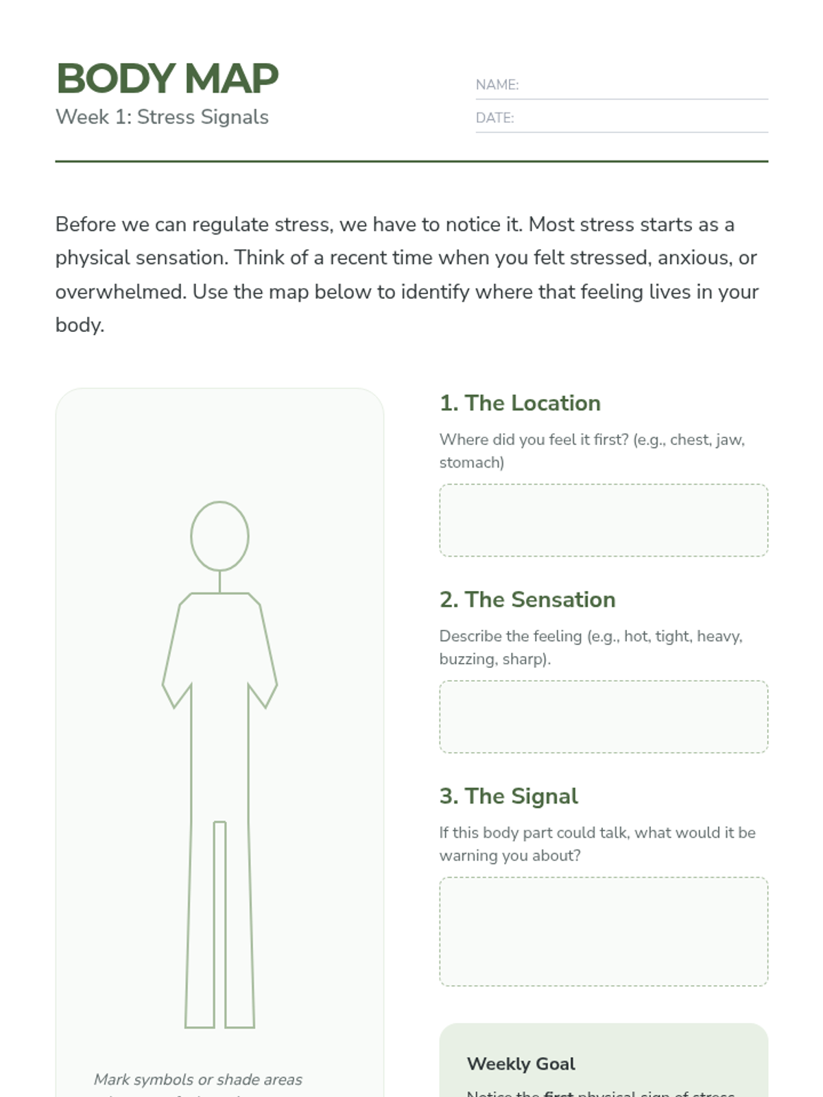 Identifying Trauma FeelingsRecognition of emotional and physiological signatures associated with traumatic experiences. Targets awareness of triggers, somatic markers, and the distinction between past reactions and present safety.