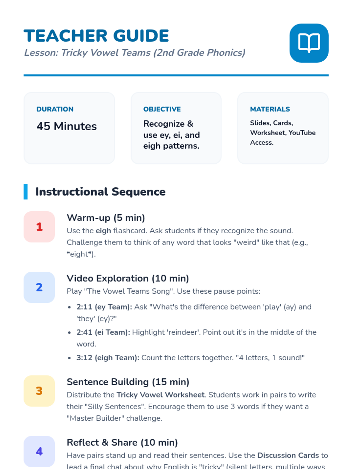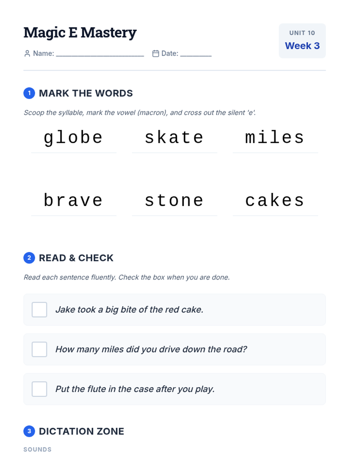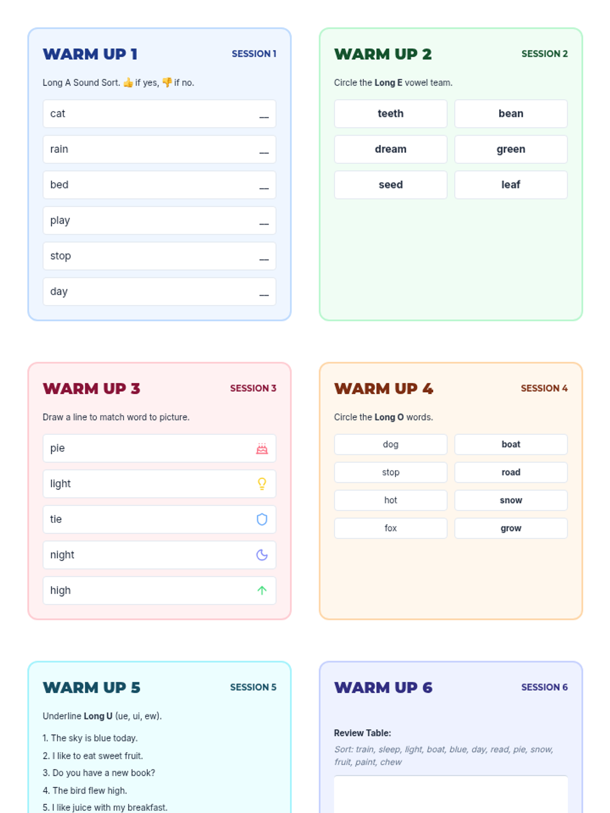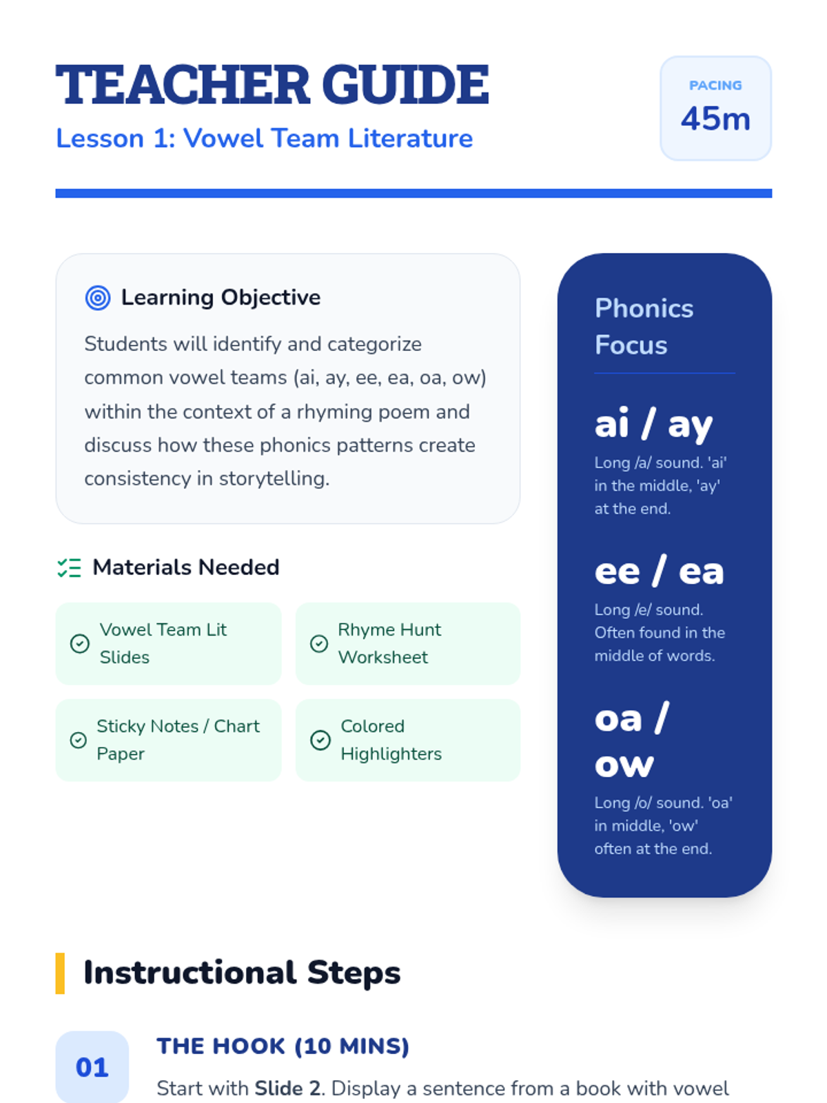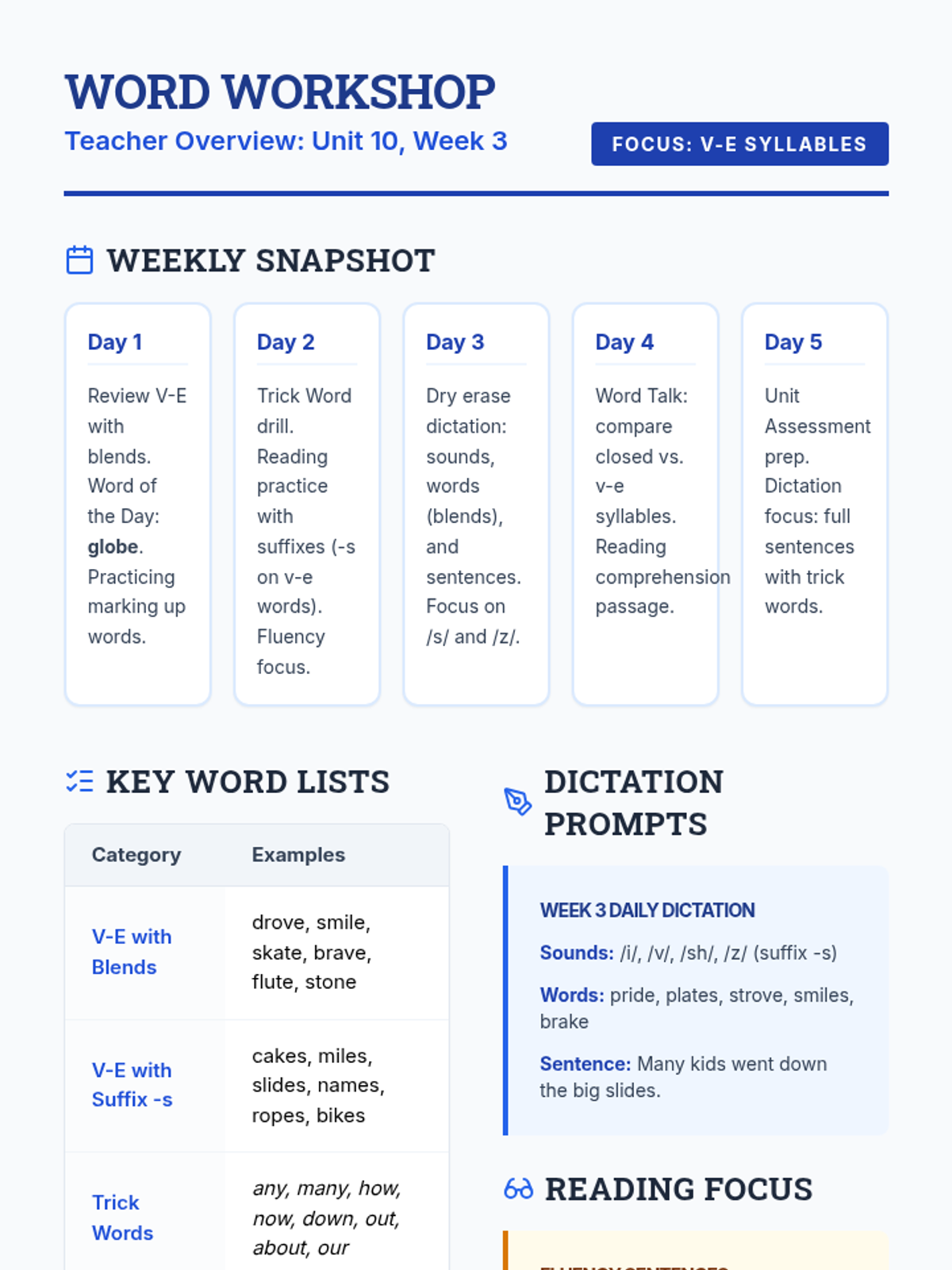 Letter identification, phonemic awareness, and decoding skills ranging from simple letter-sound associations to complex multisyllabic patterns. Develops reading fluency through systematic instruction in vowel teams, consonant blends, and word recognition strategies using decodable texts.