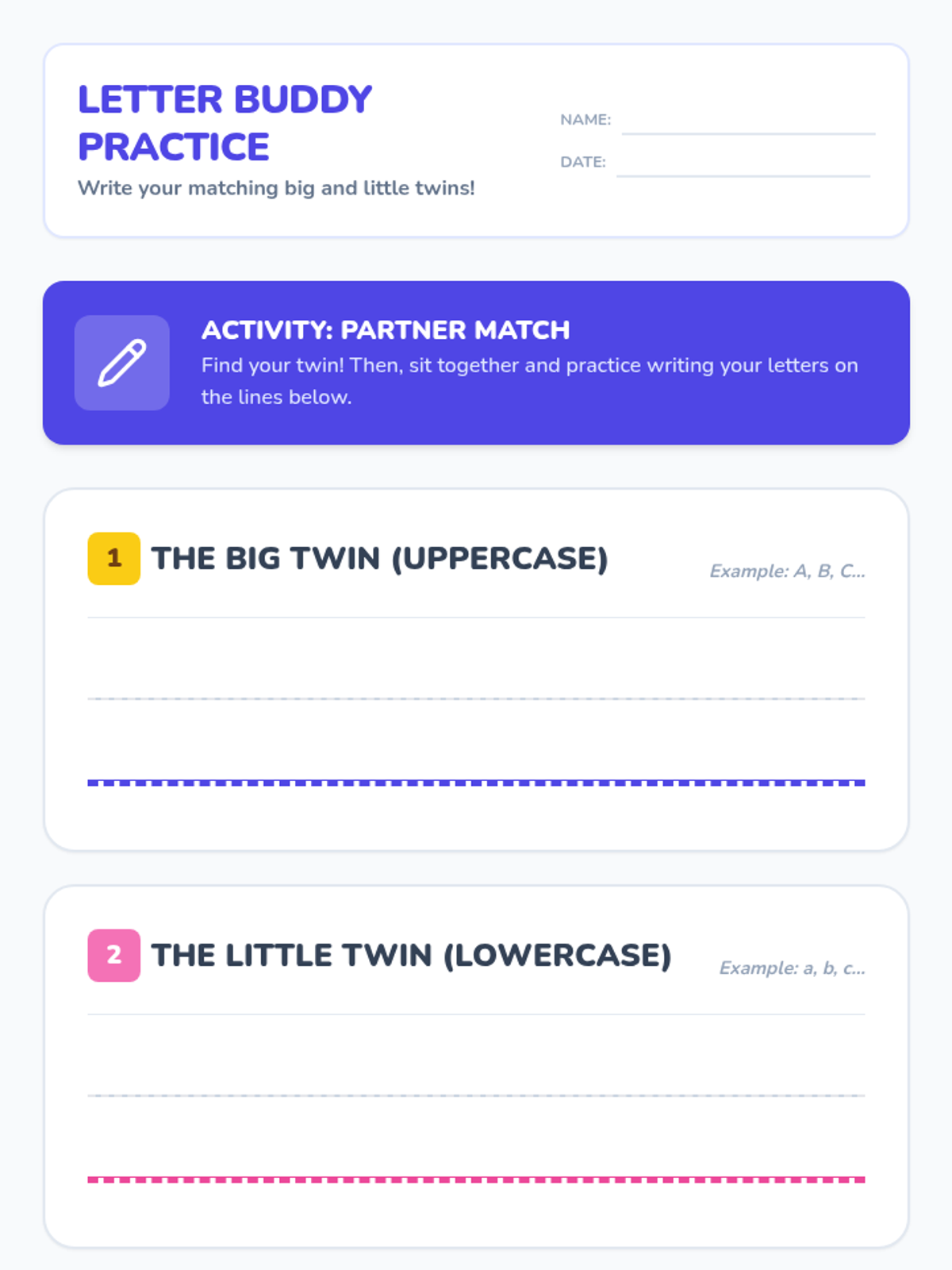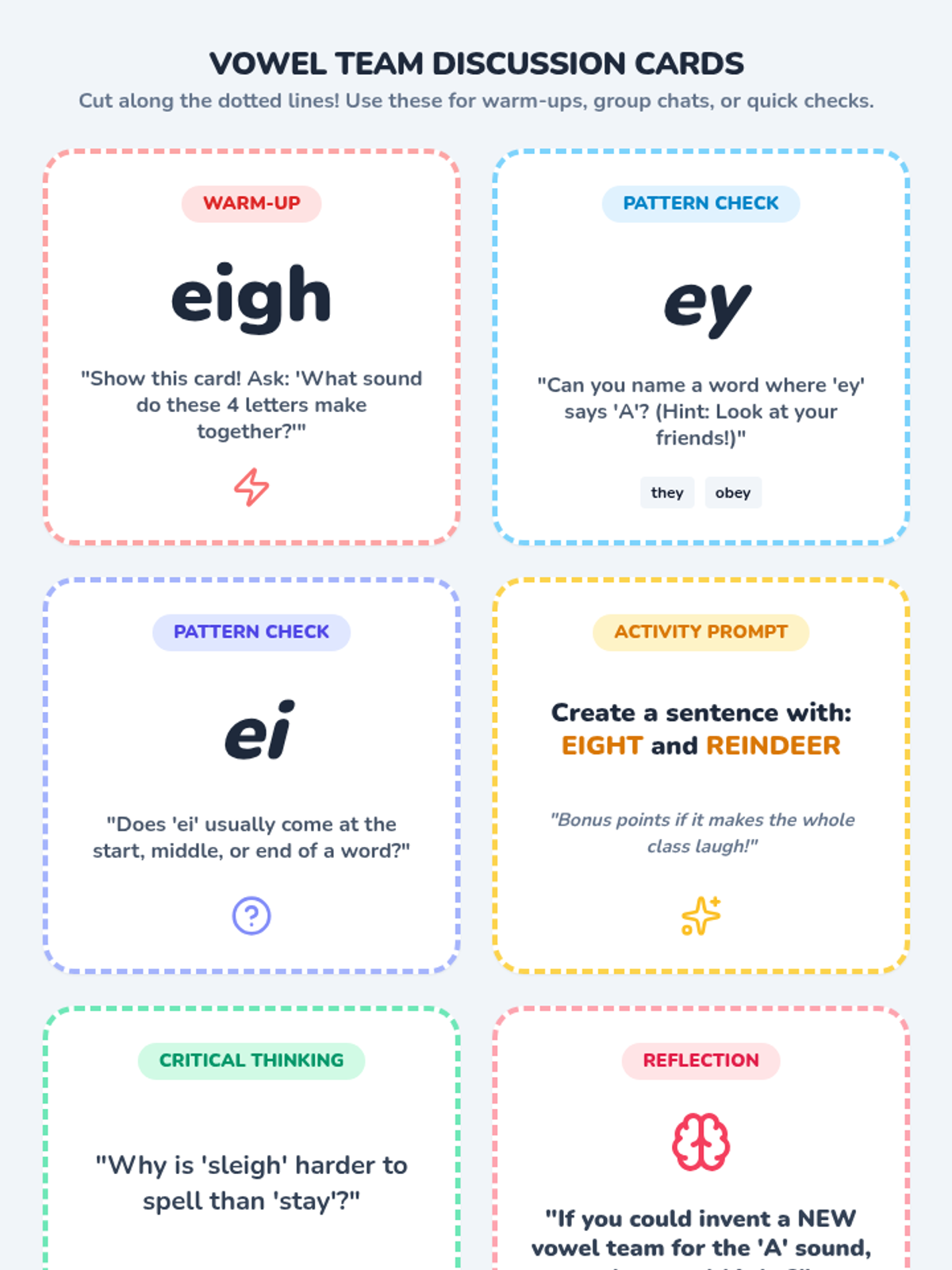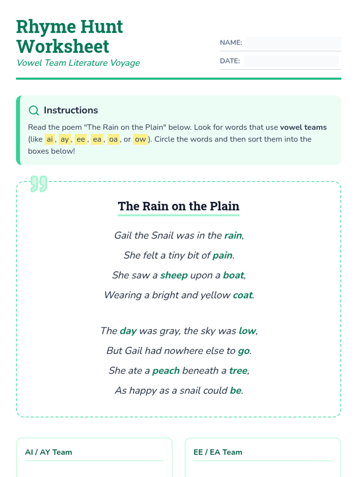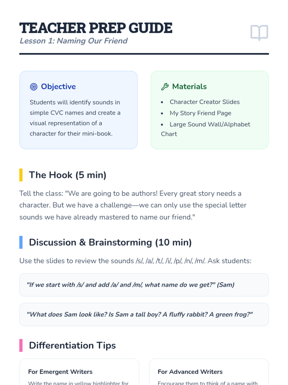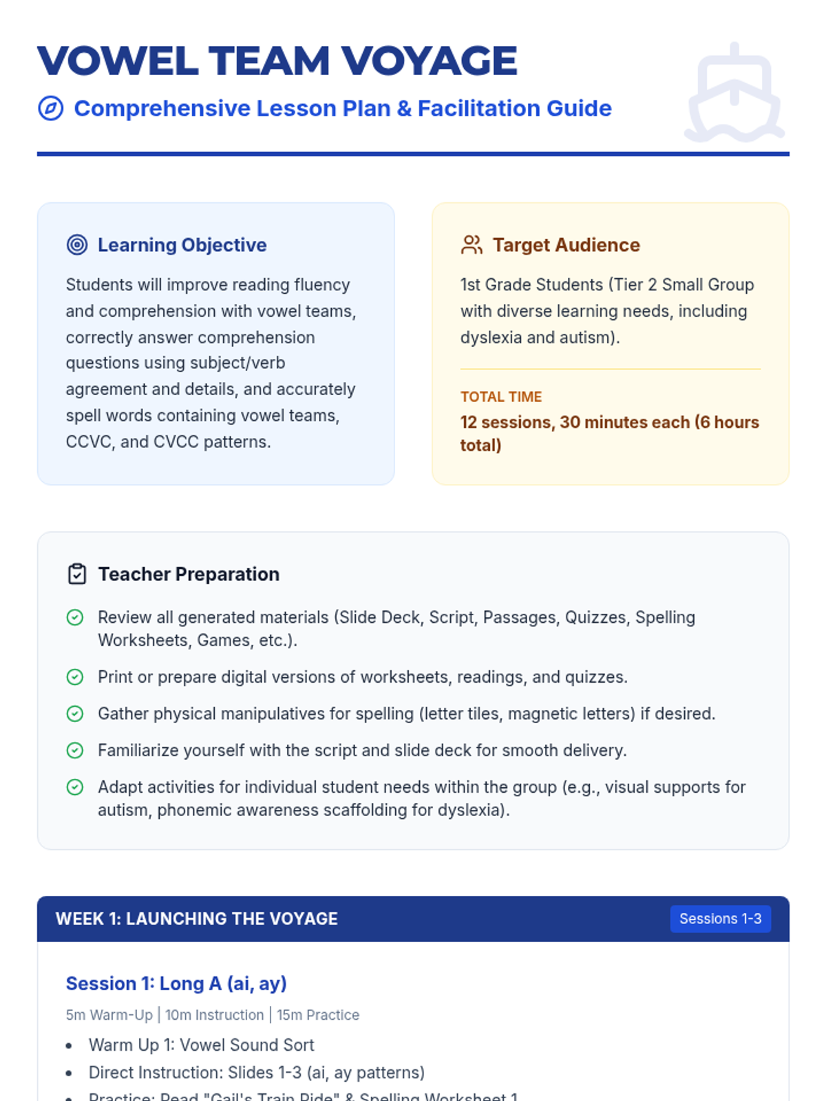 Letter identification, phonemic awareness, and decoding skills ranging from simple letter-sound associations to complex multisyllabic patterns. Develops reading fluency through systematic instruction in vowel teams, consonant blends, and word recognition strategies using decodable texts.