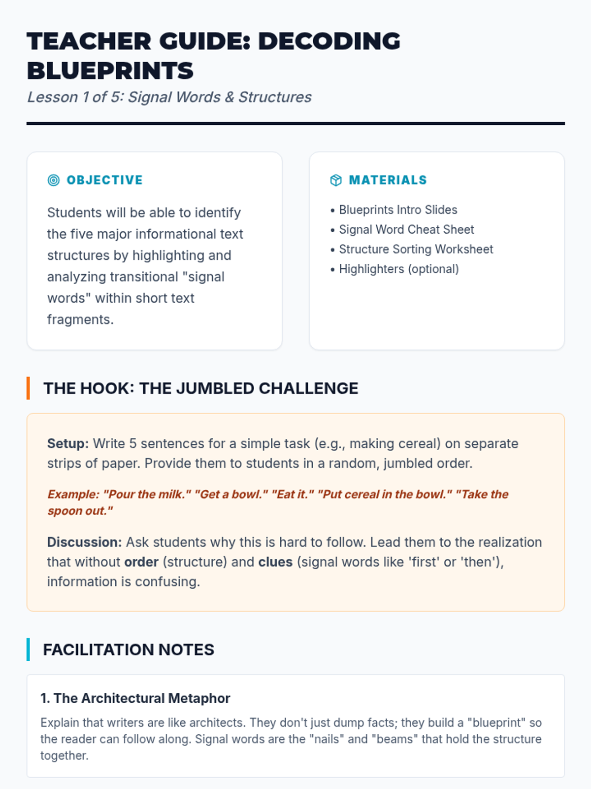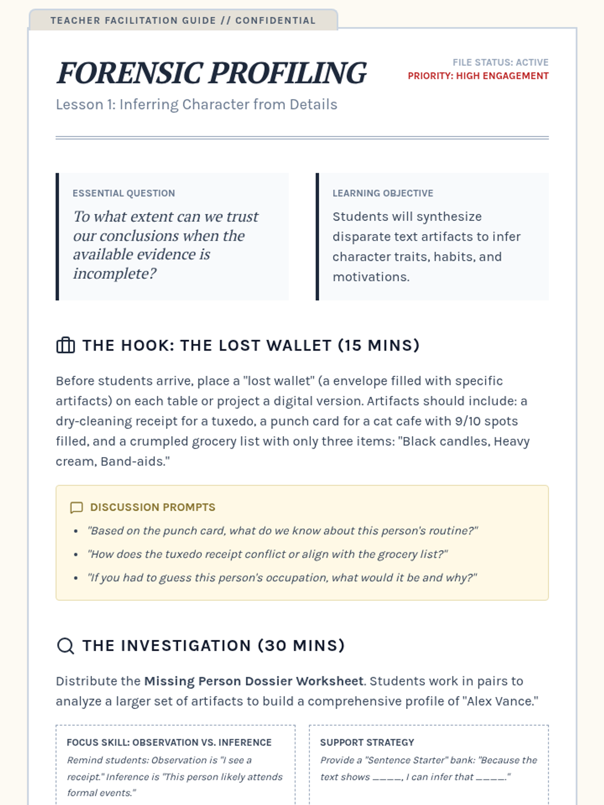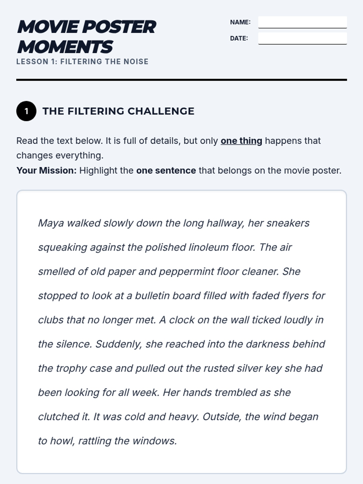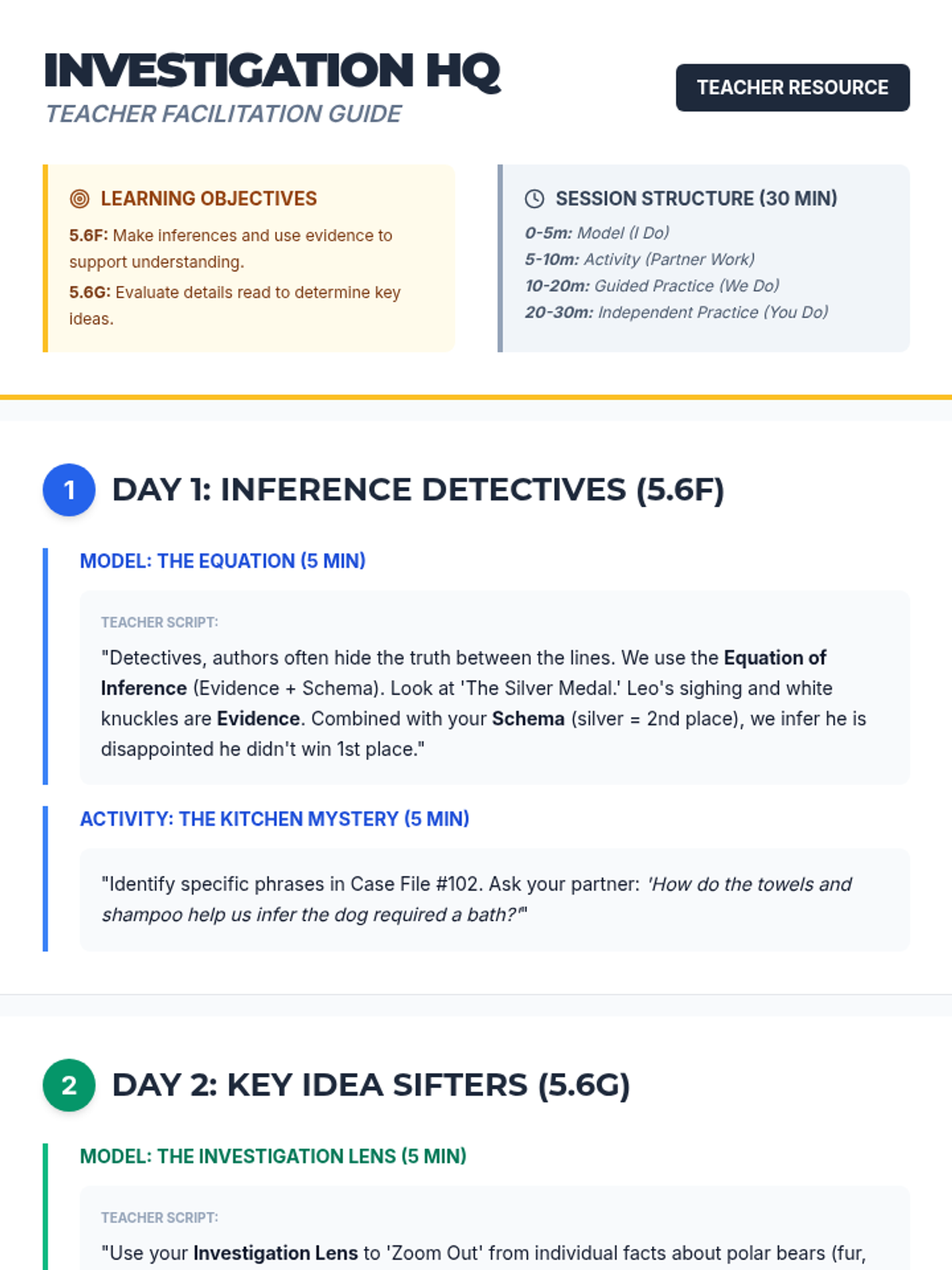 This sequence helps 9th-grade students who struggle with reading fluency build inference skills by first mastering visual analysis in films and images before transitioning those cognitive strategies to written text.