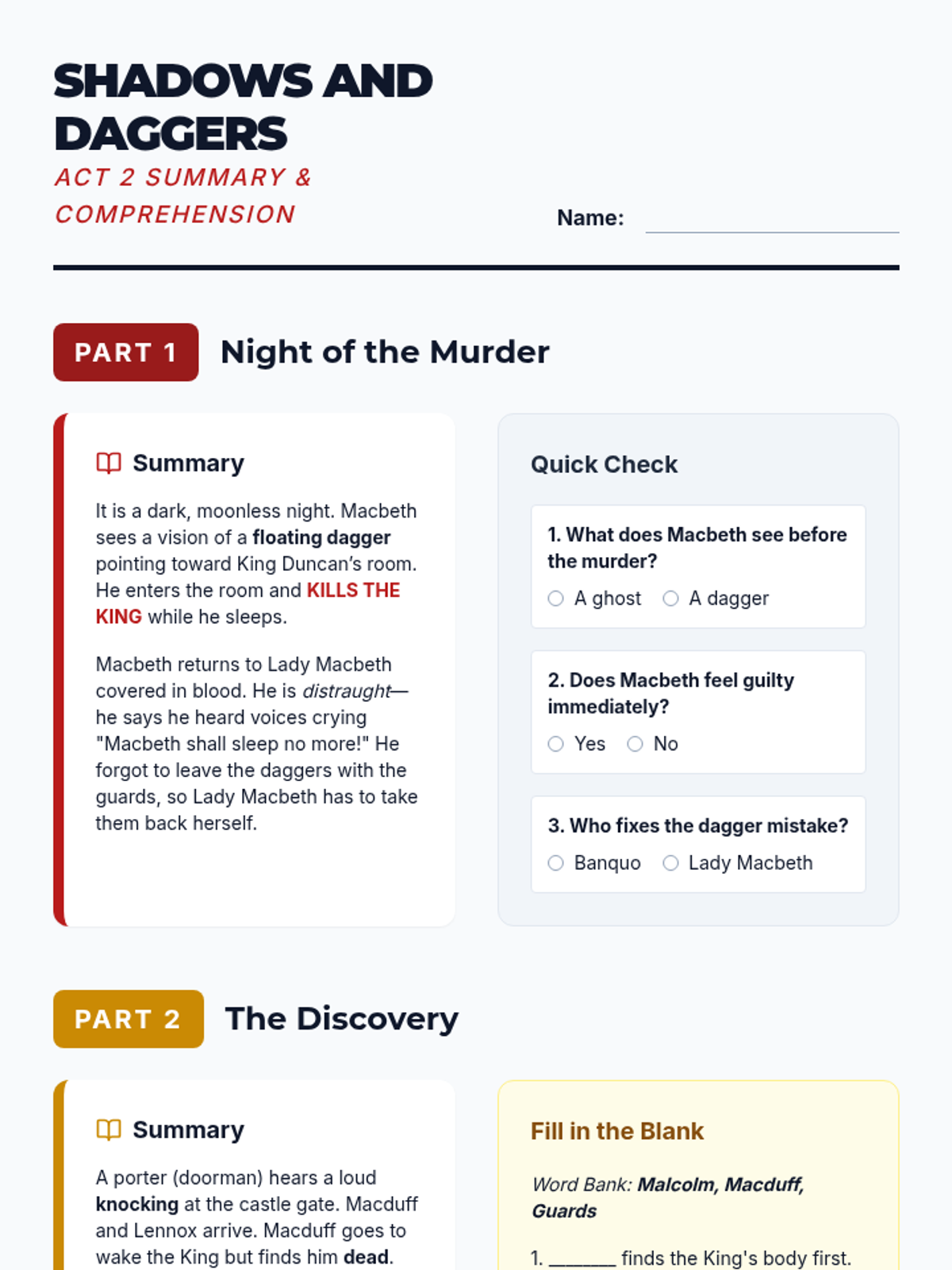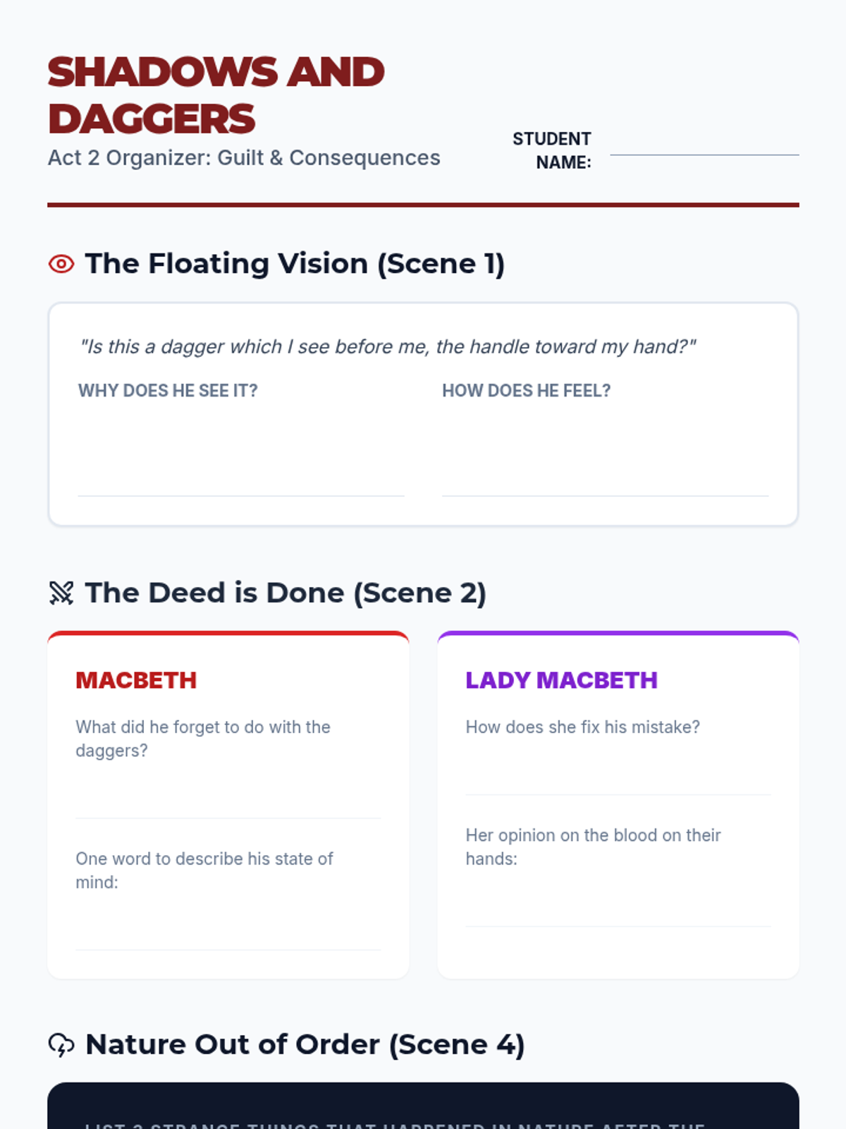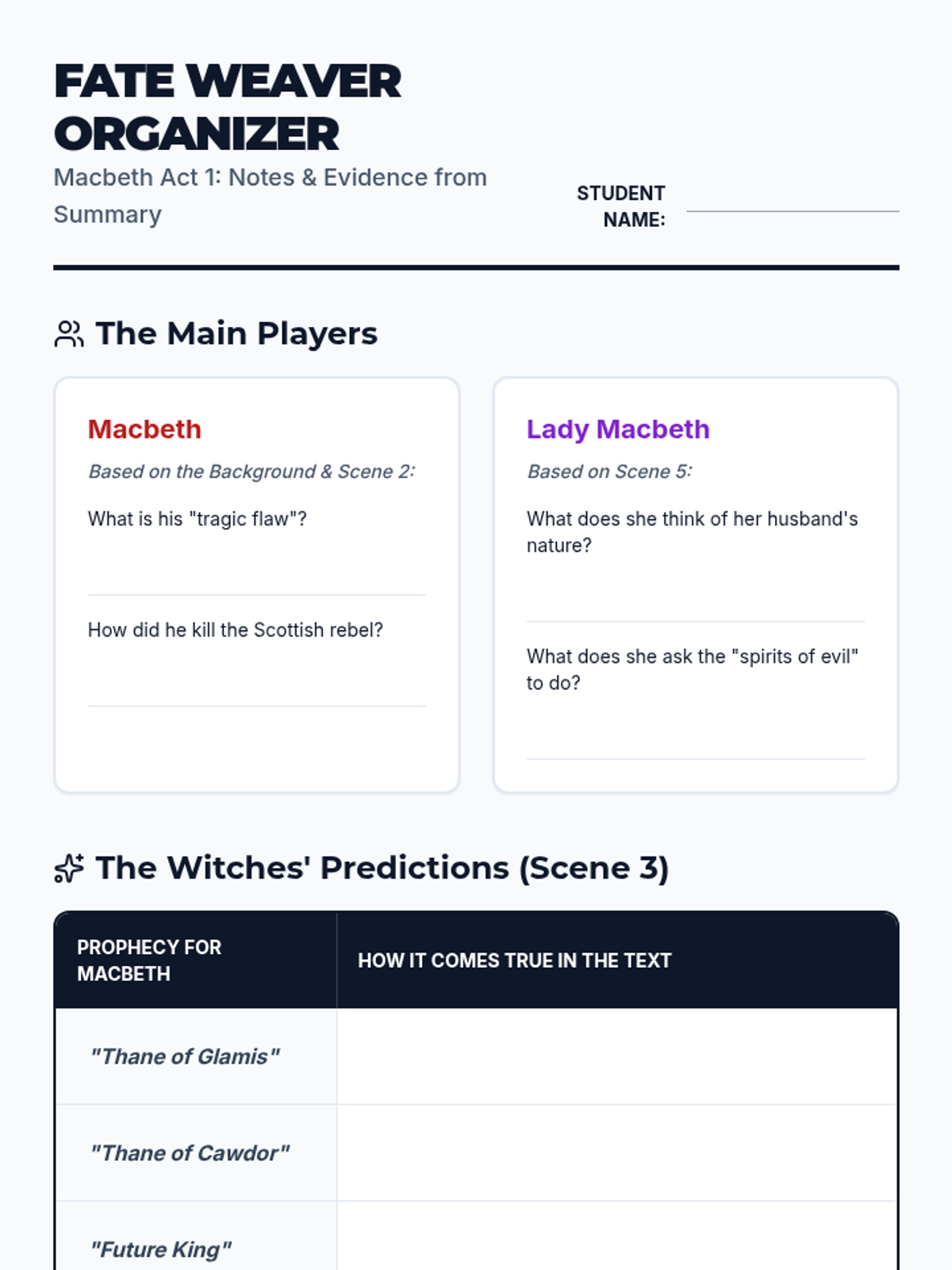 Story ElementsIdentification and analysis of plot, characters, setting, conflict, and resolution. Strengthens reading comprehension by mapping narrative structures and examining how individual components shape a story.