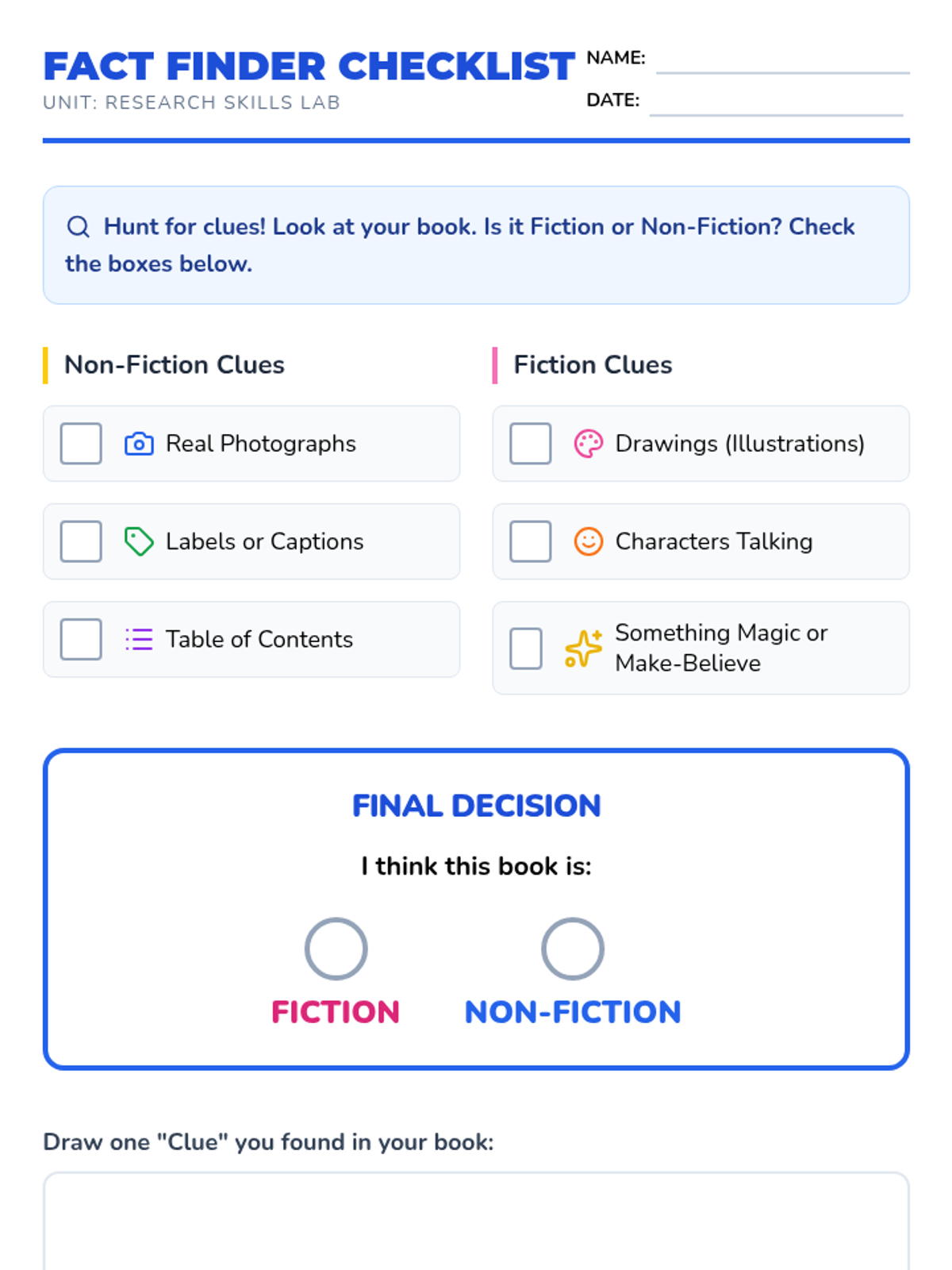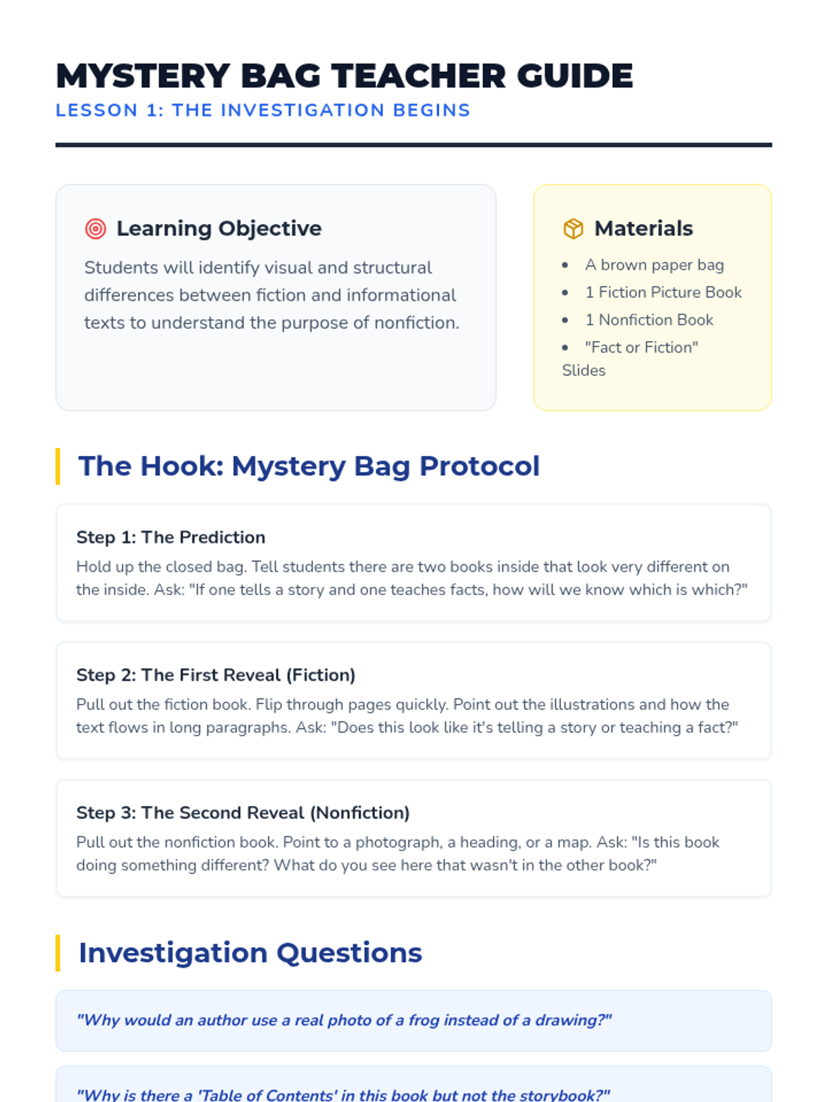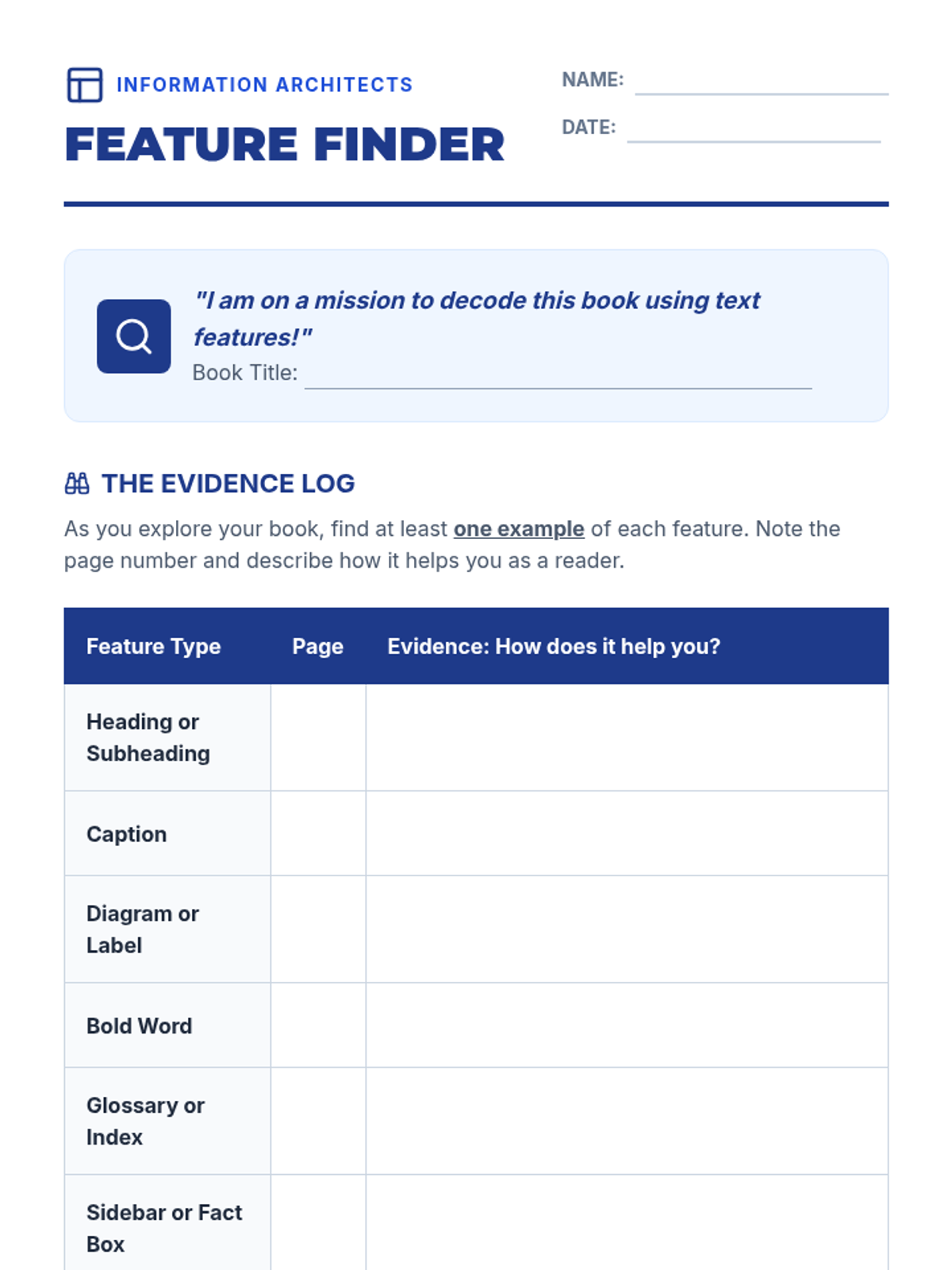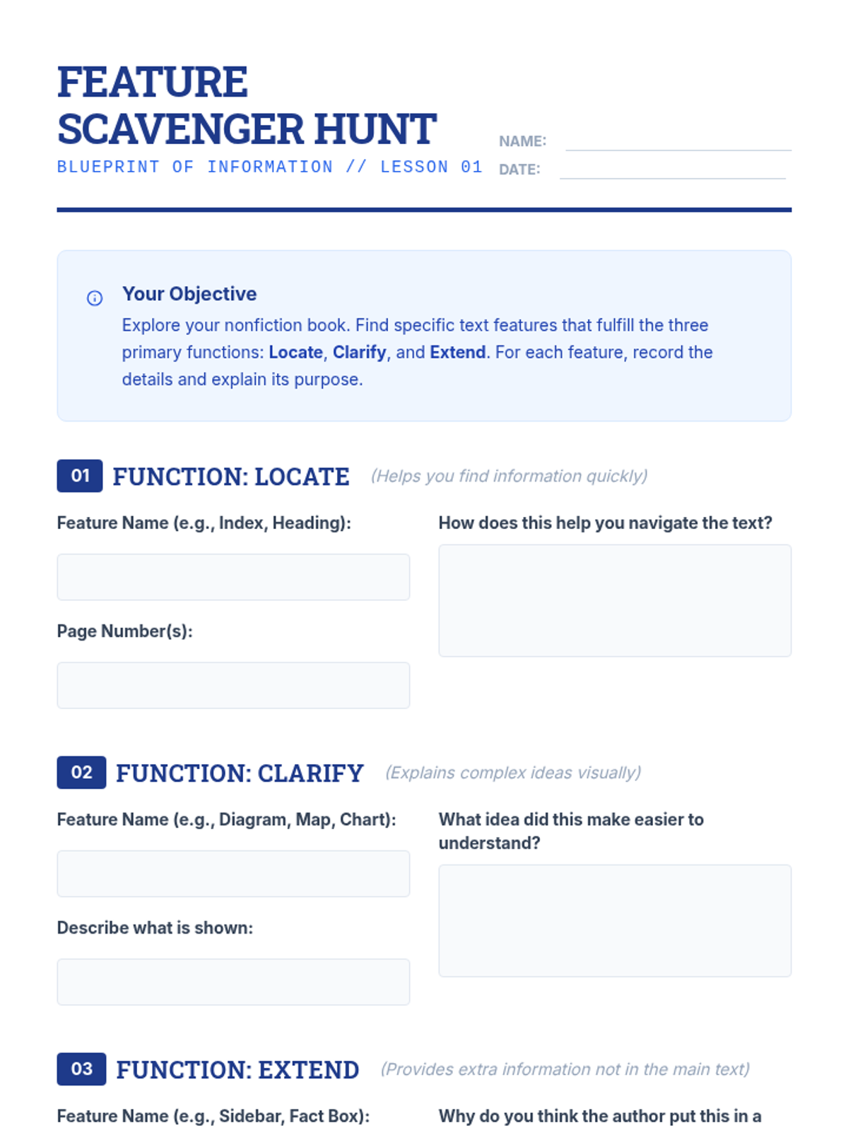 Nonfiction Book StudyAnalysis of text features, main ideas, and supporting details in informational texts. Develops critical thinking through evidence-based questioning and summary skills.