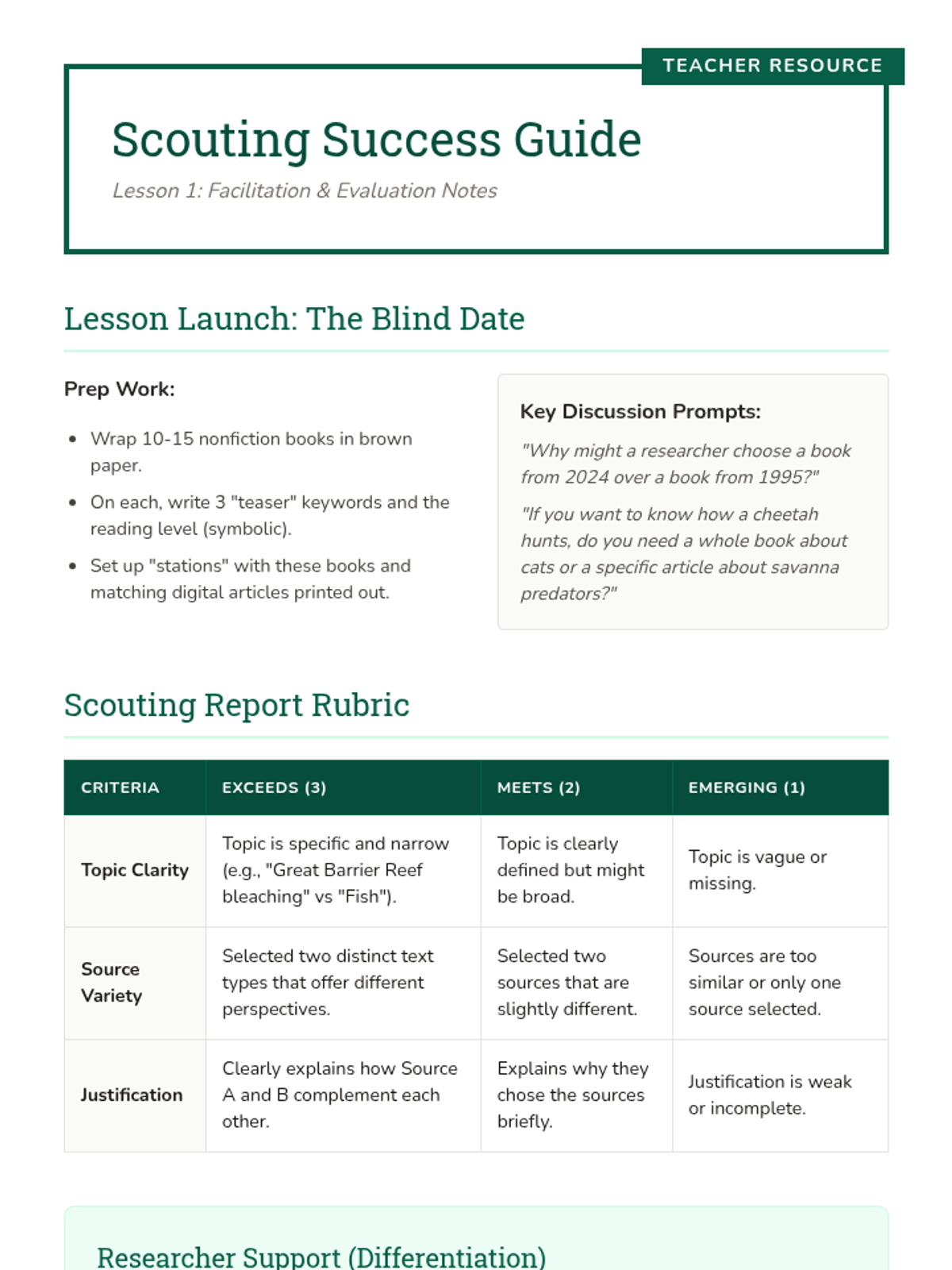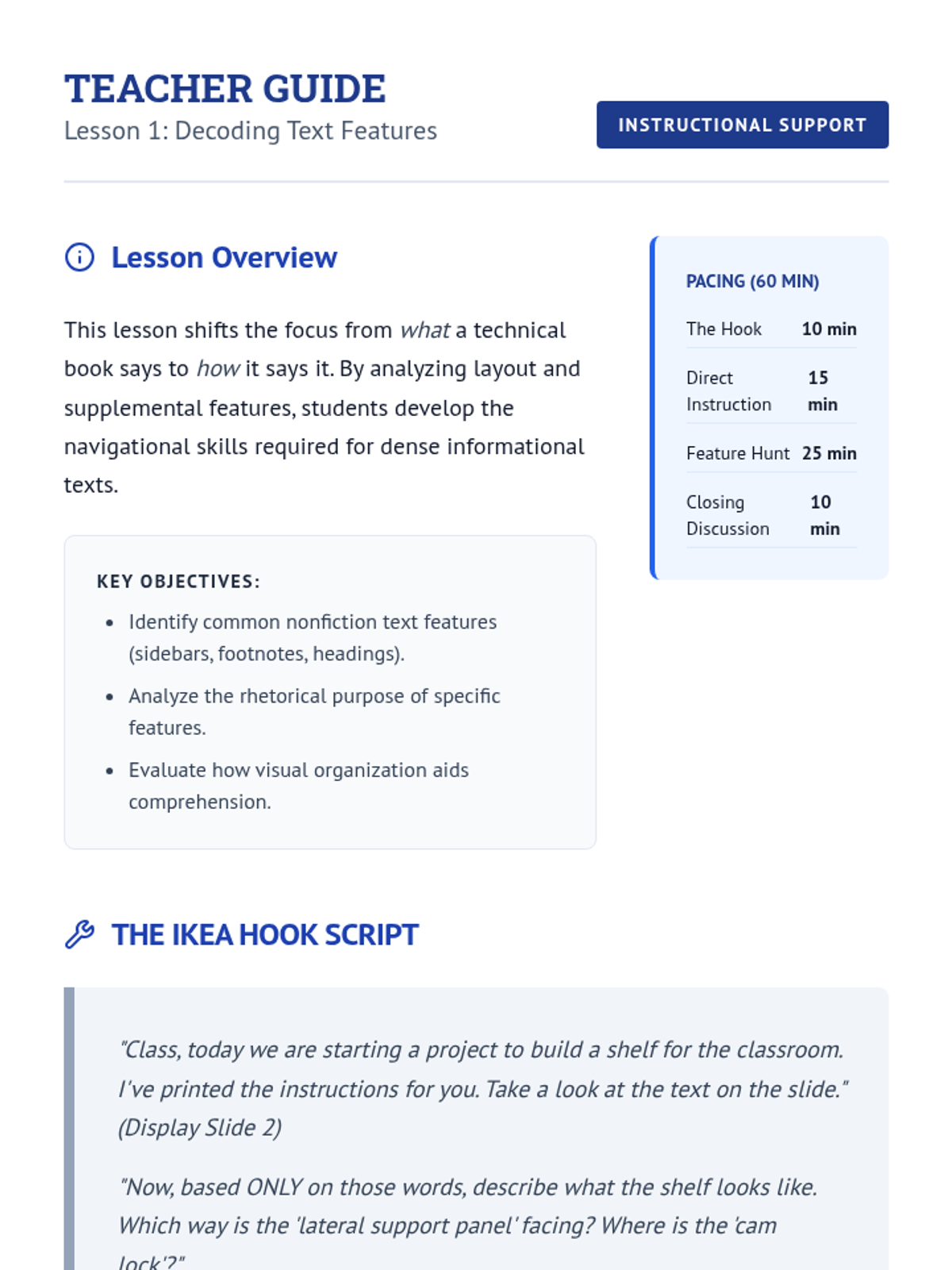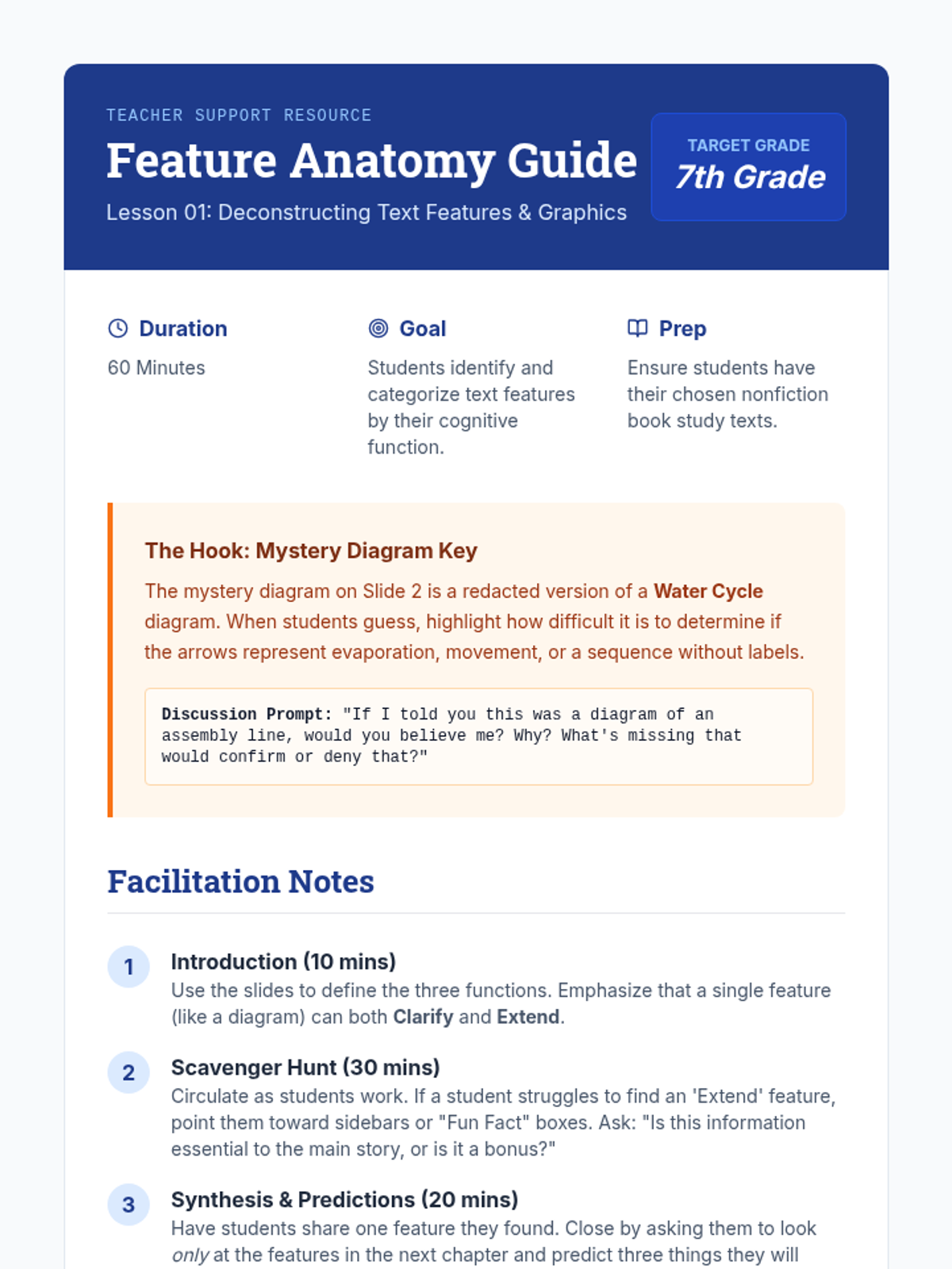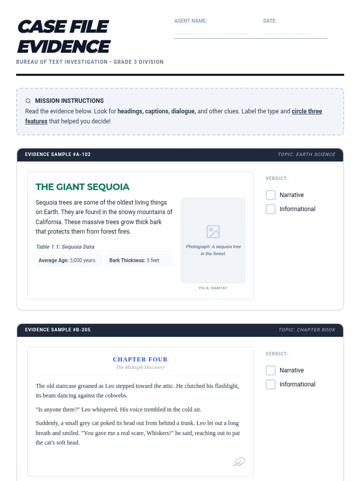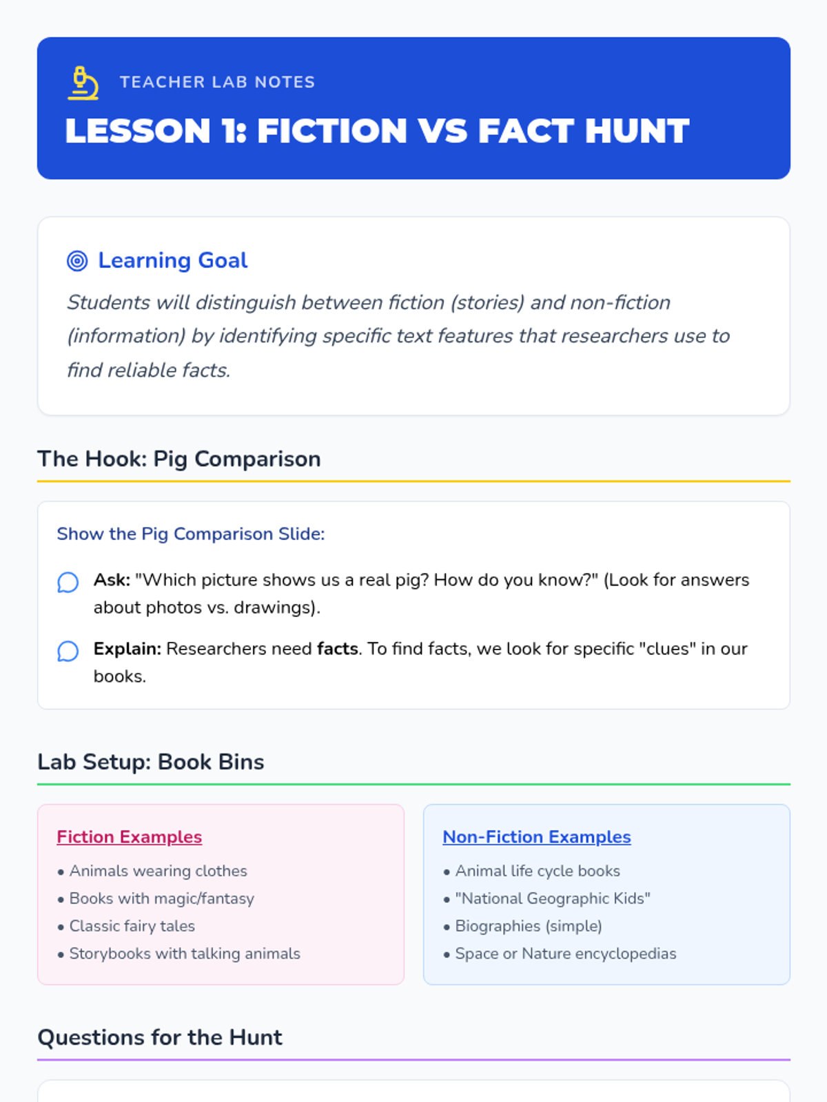 Nonfiction Book StudyAnalysis of text features, main ideas, and supporting details in informational texts. Develops critical thinking through evidence-based questioning and summary skills.