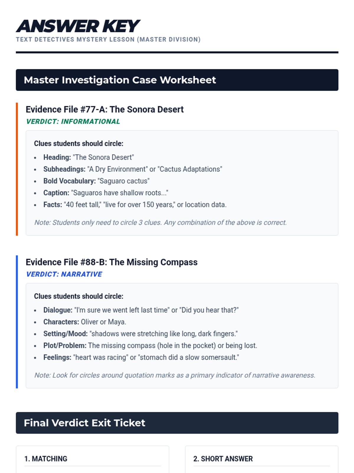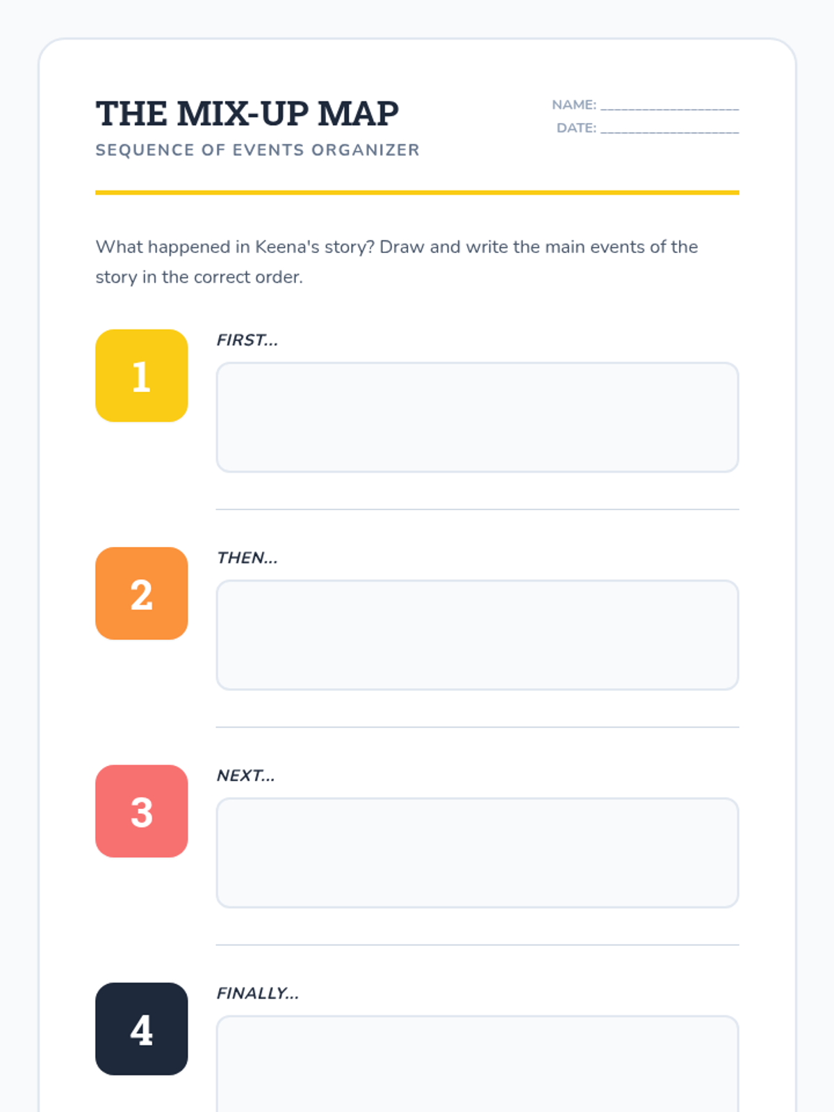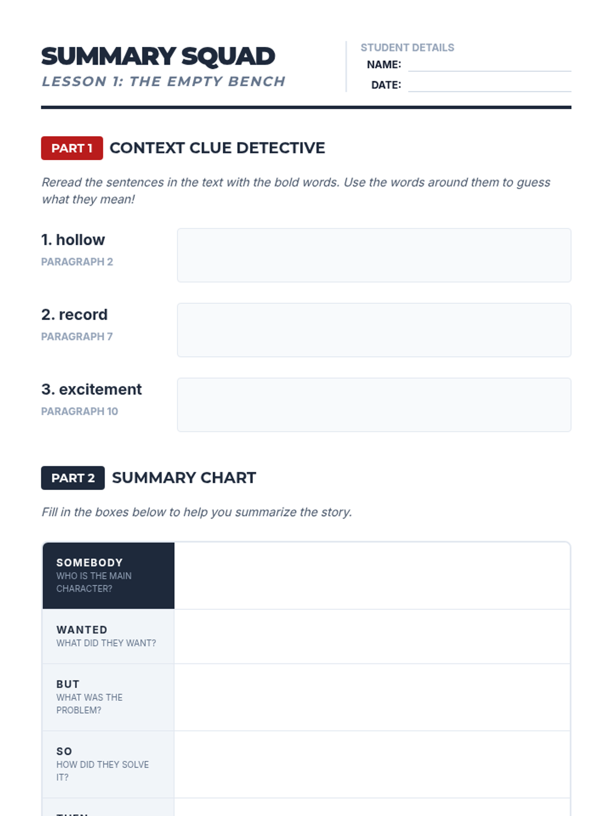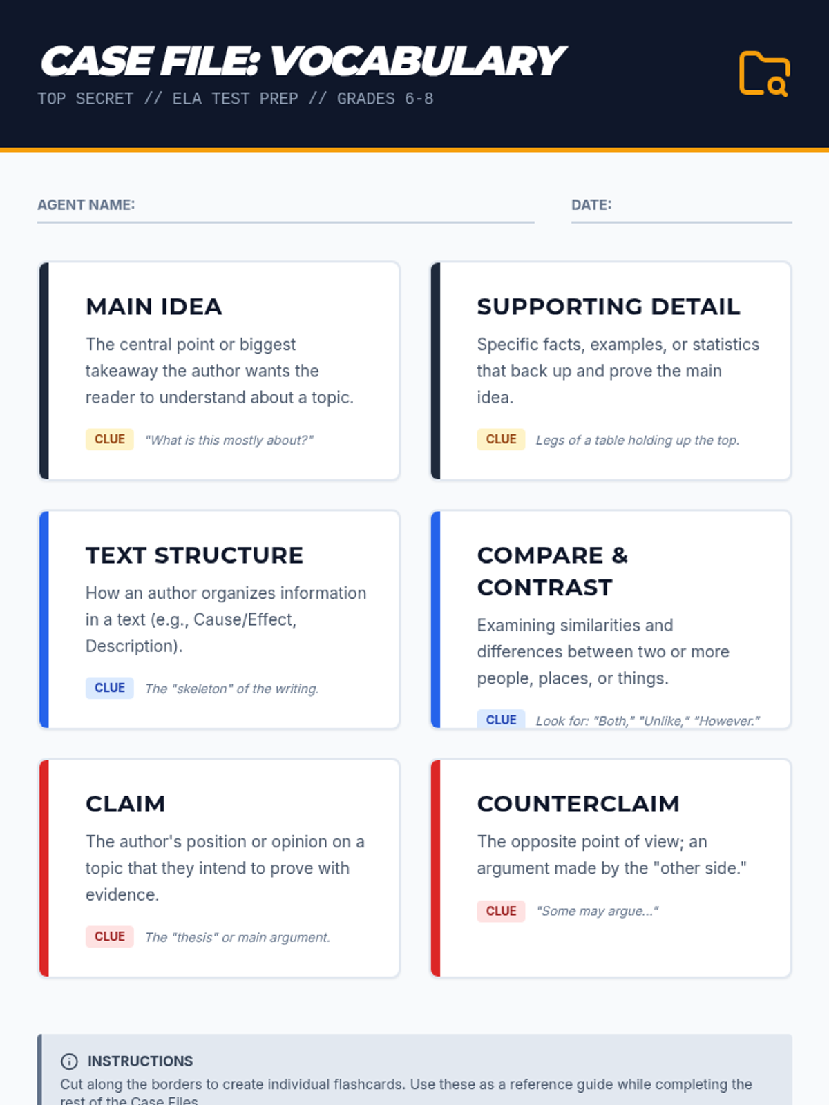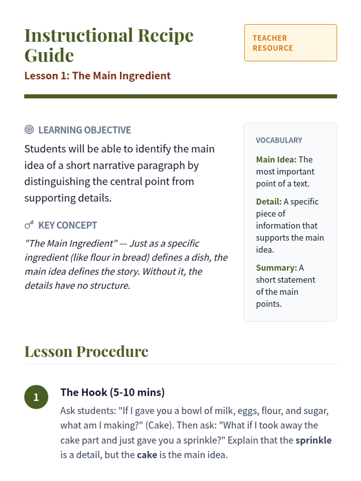 Main IdeaIdentification of central messages and supporting details within informational and narrative texts. Strengthens summarization skills and the ability to distinguish primary points from secondary evidence.