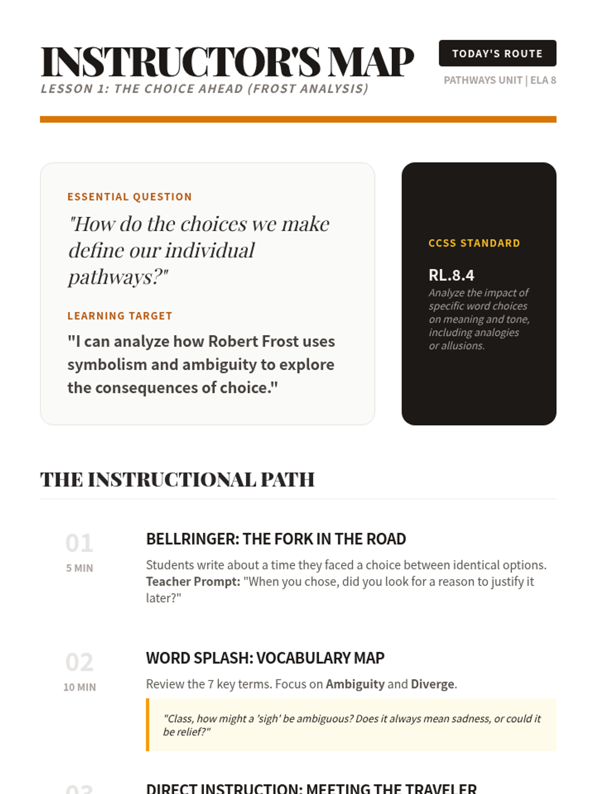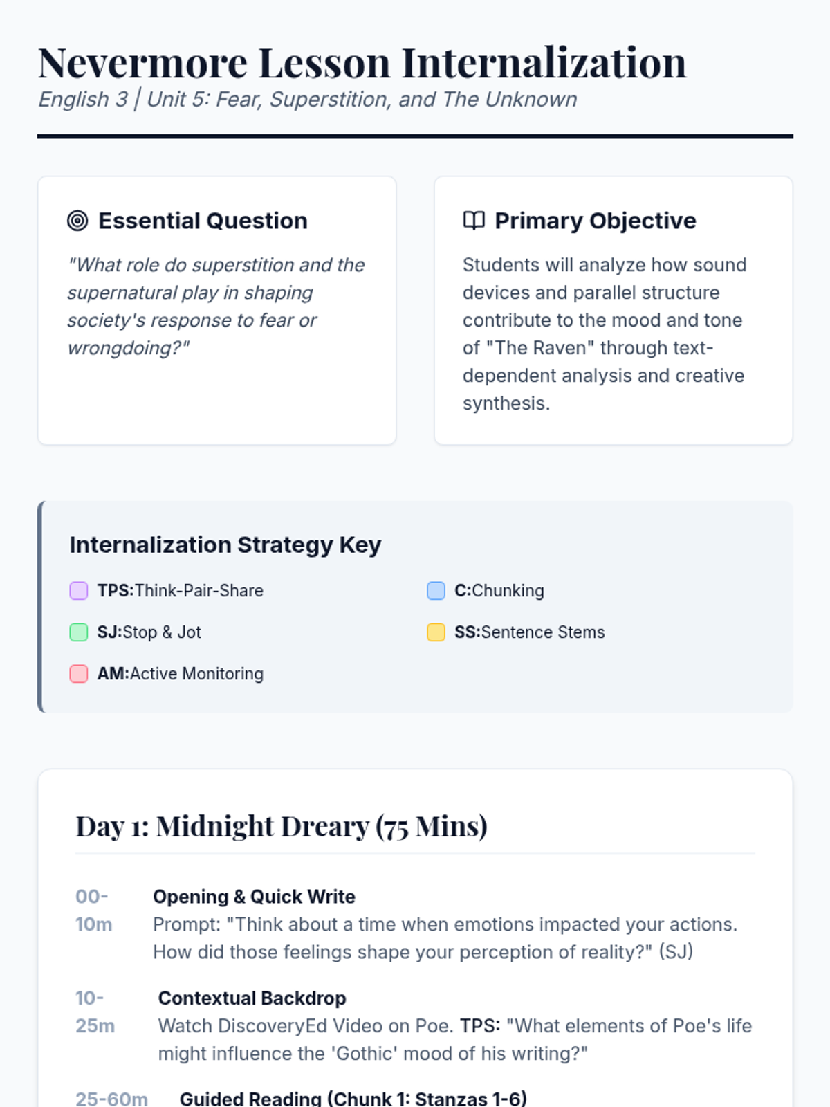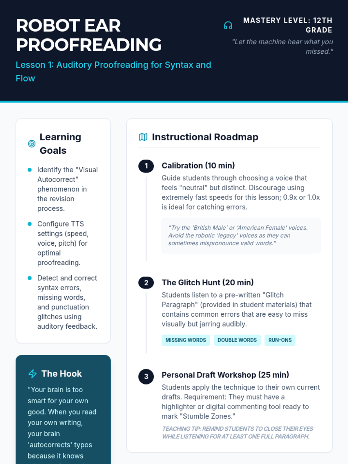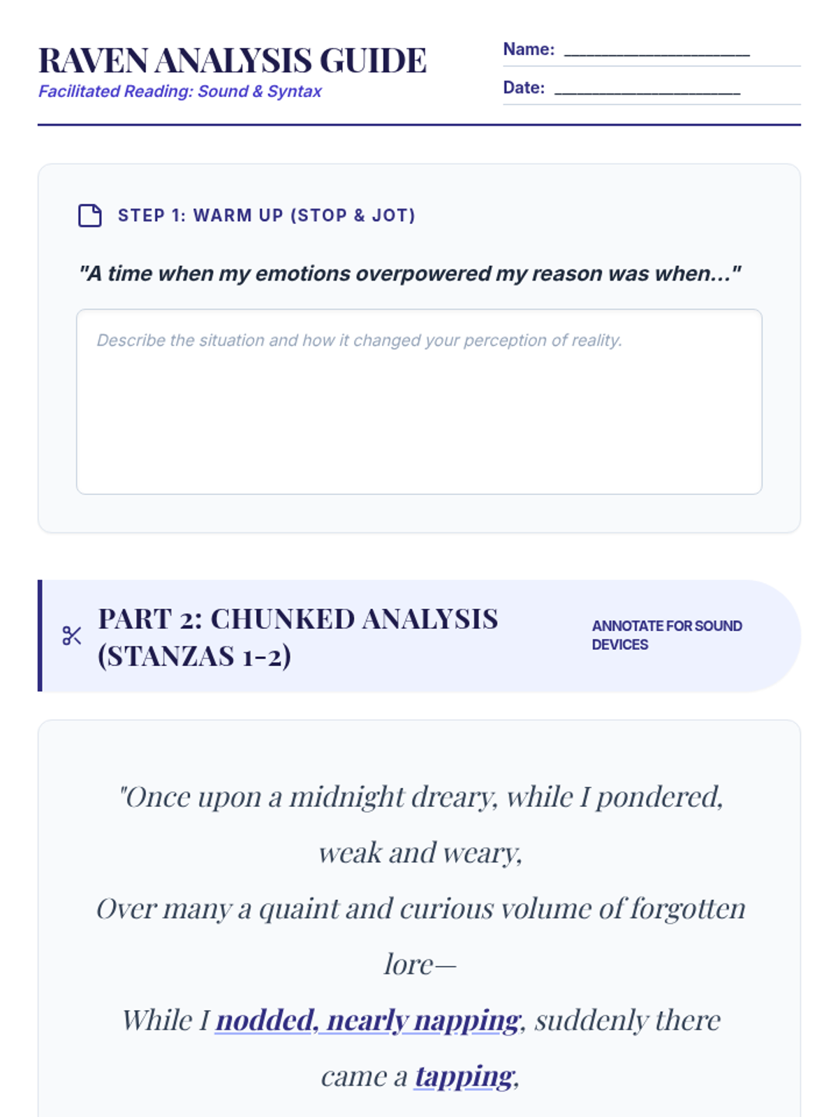 This 3rd-grade sequence explores how imagery, rhythm, and sound devices create meaning in poetry through a multisensory read-along approach. Students progress from visualizing sensory details to analyzing structural elements and finally synthesizing their understanding by creating their own audio-enhanced poetry experiences.