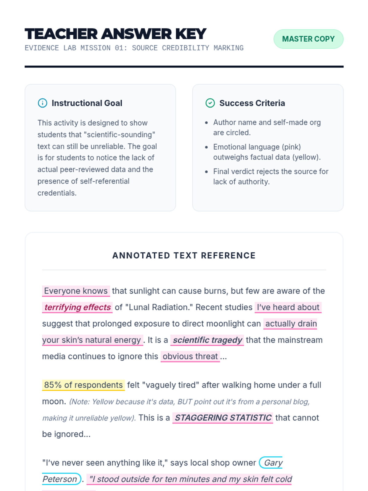 Author's PerspectiveIdentifies the underlying attitudes, biases, and purposes that influence a writer’s presentation of information. Connects text evidence to the author's background and intended impact on the audience.