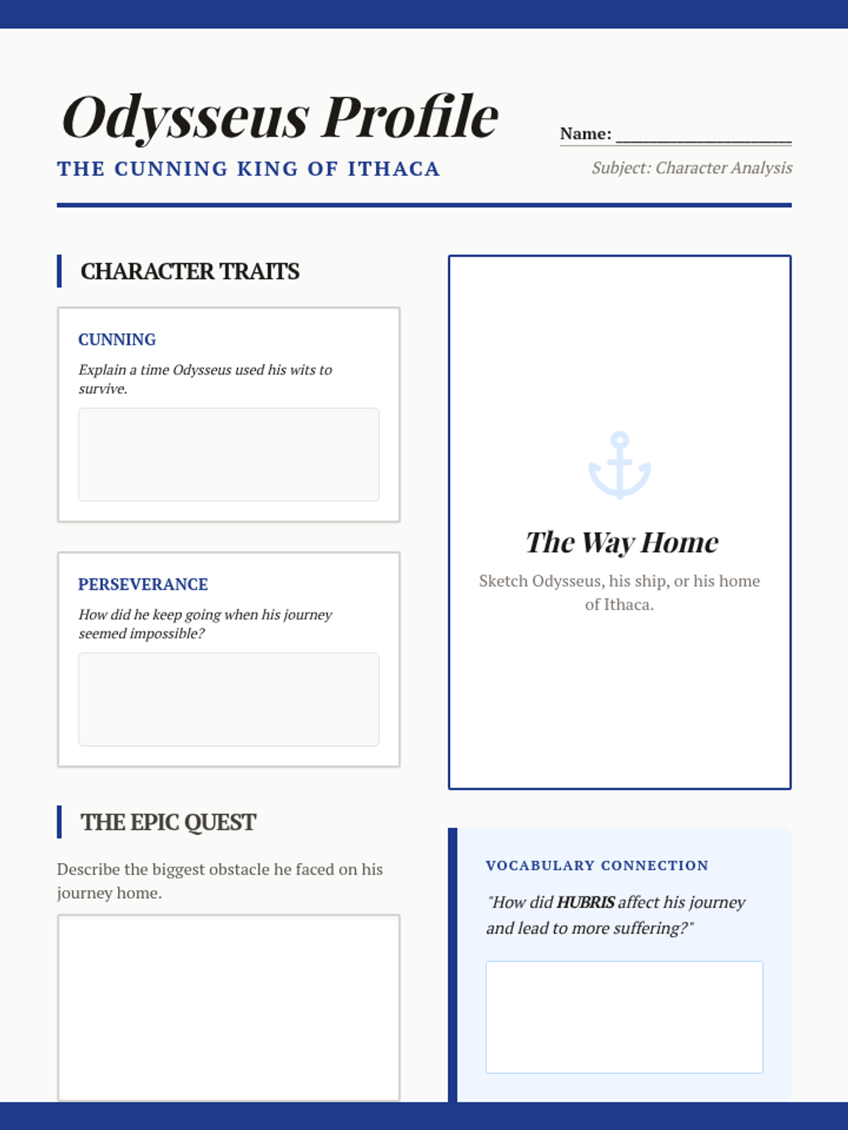 CharacterExamination of personality traits, motivations, and growth arcs in literary figures. Builds skills in analyzing how character choices drive plot development and thematic depth.
