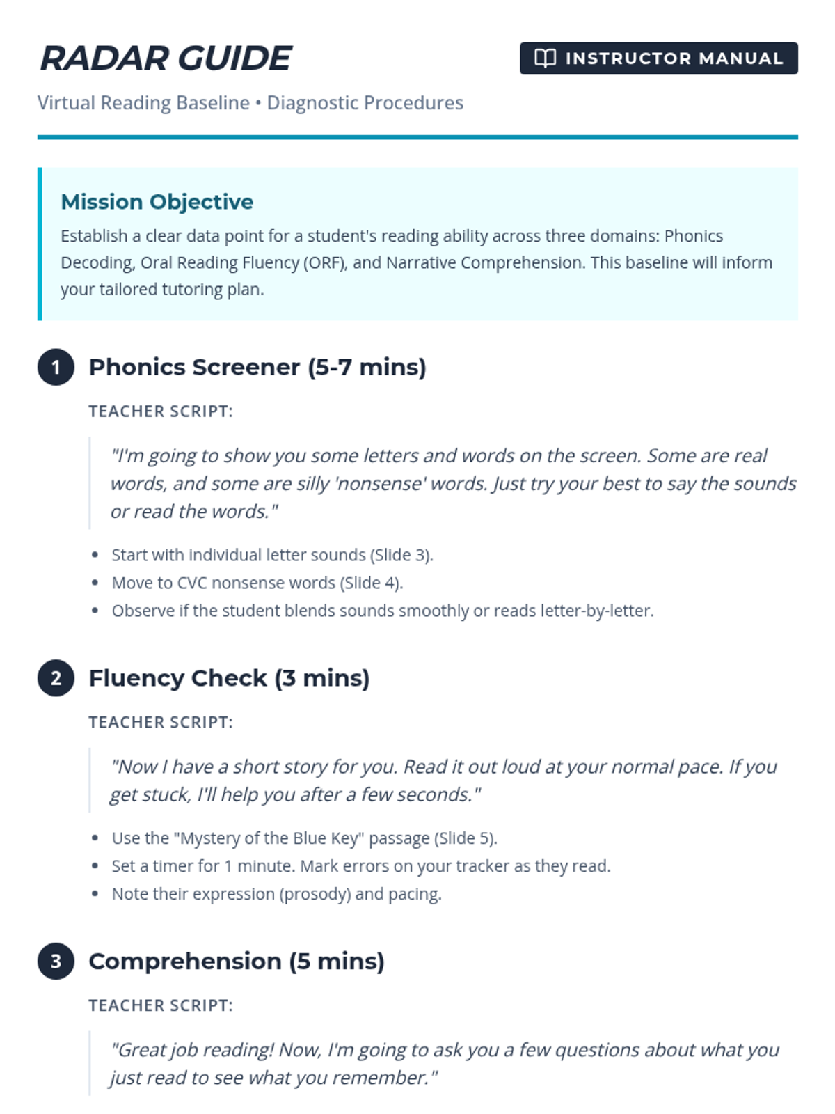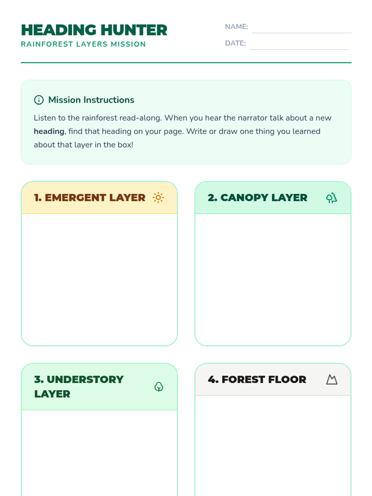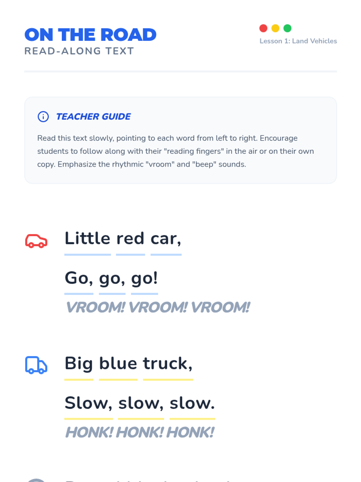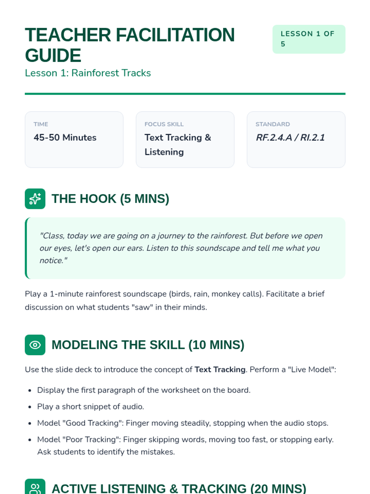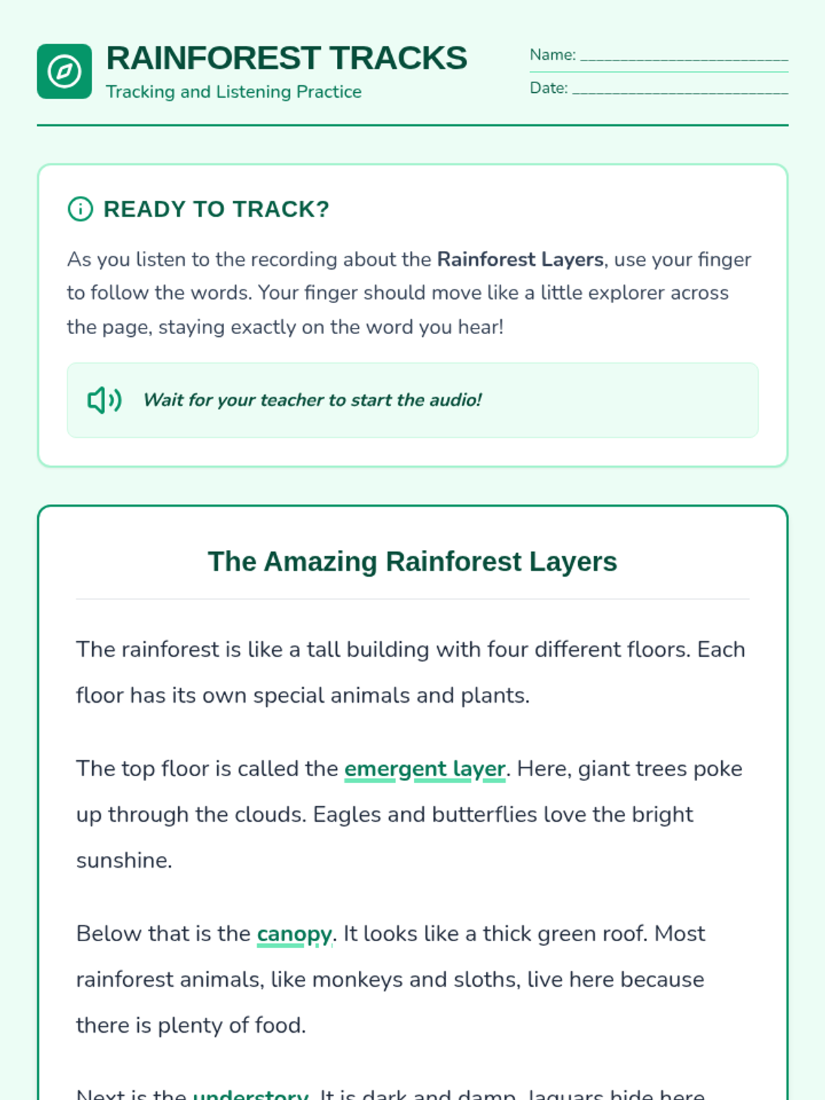 Read-Along Informational TextsAudio-supported non-fiction passages focusing on science, history, and real-world concepts. Develops reading fluency while building domain-specific vocabulary and comprehension skills.