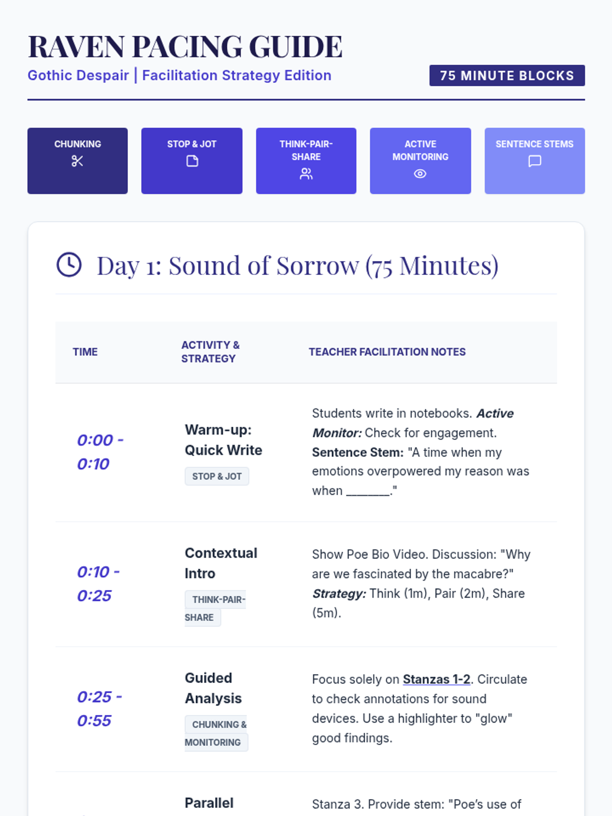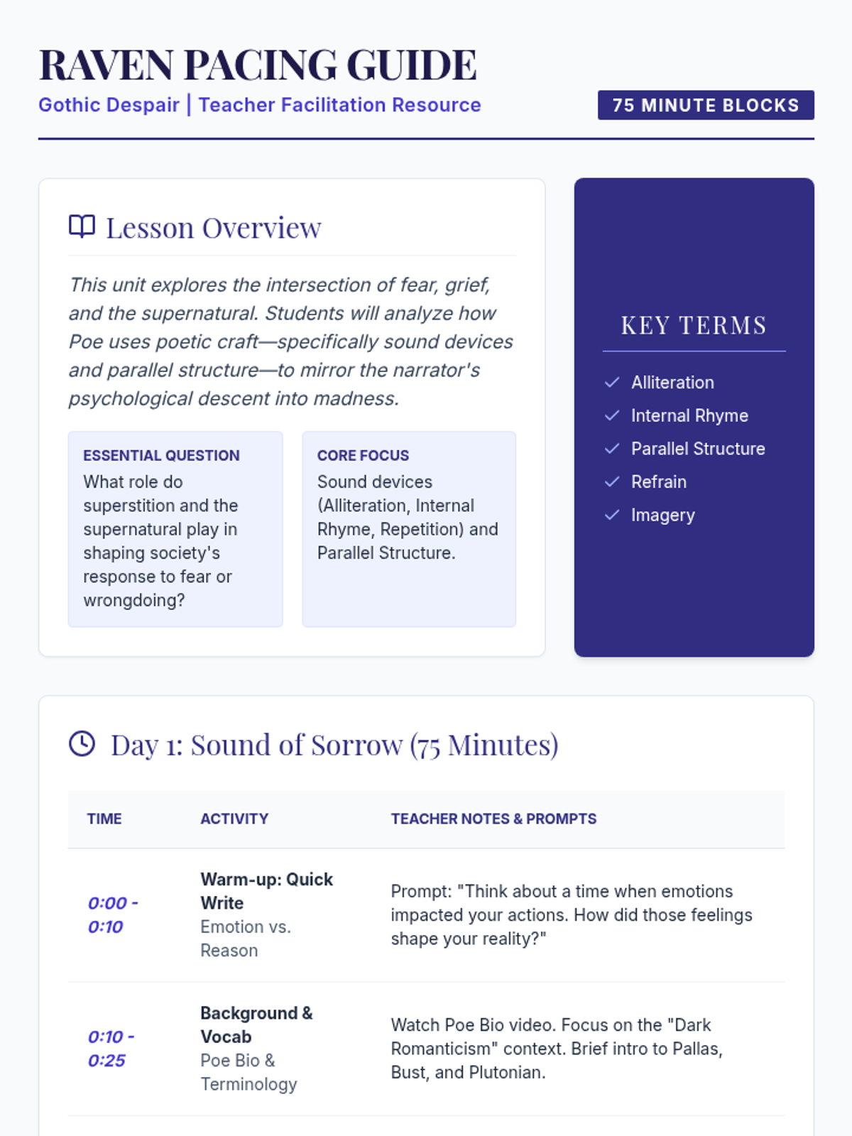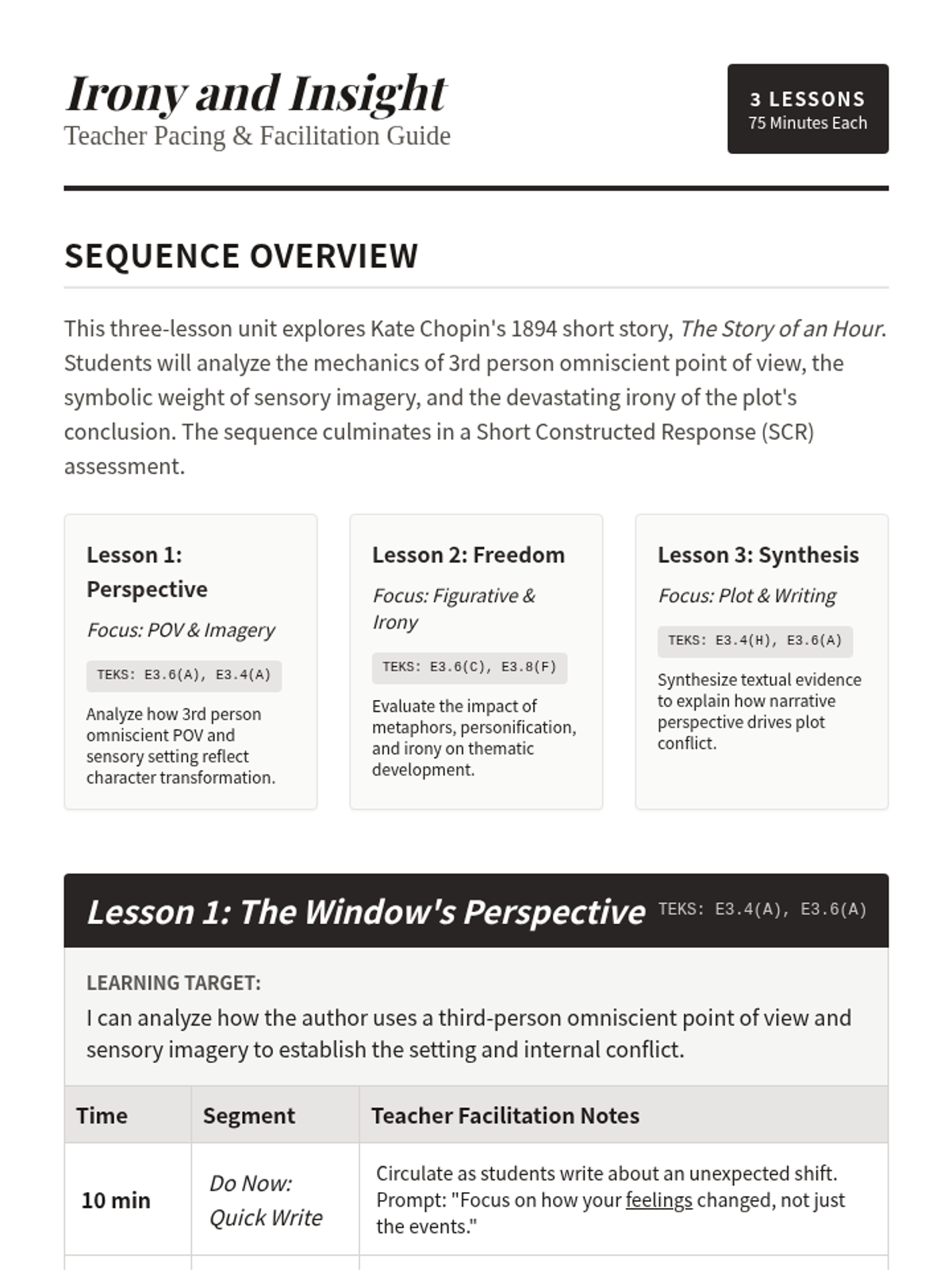 A high school ELA sequence exploring how adjectives and adverbs function as rhetorical tools to shape tone, atmosphere, and narrator reliability. Students progress from analyzing simple connotations to writing full rhetorical analyses of modifier choices in classic and modern texts.