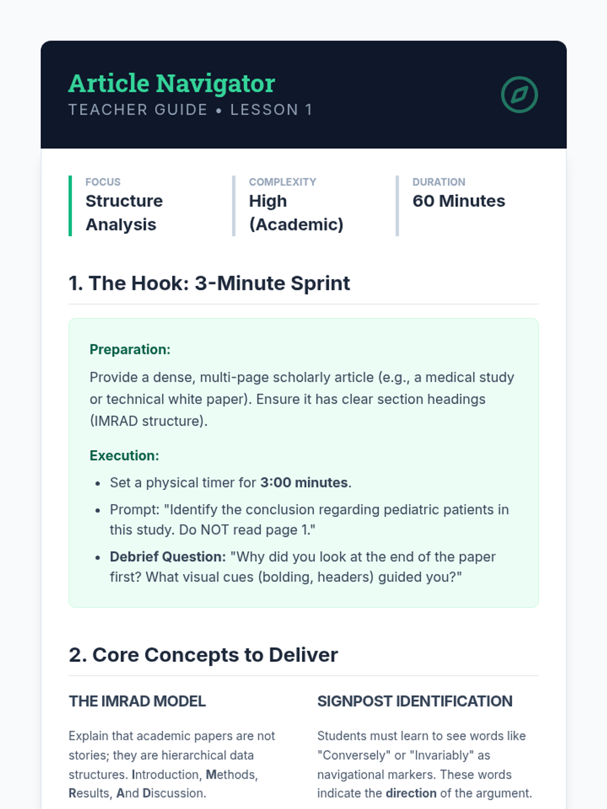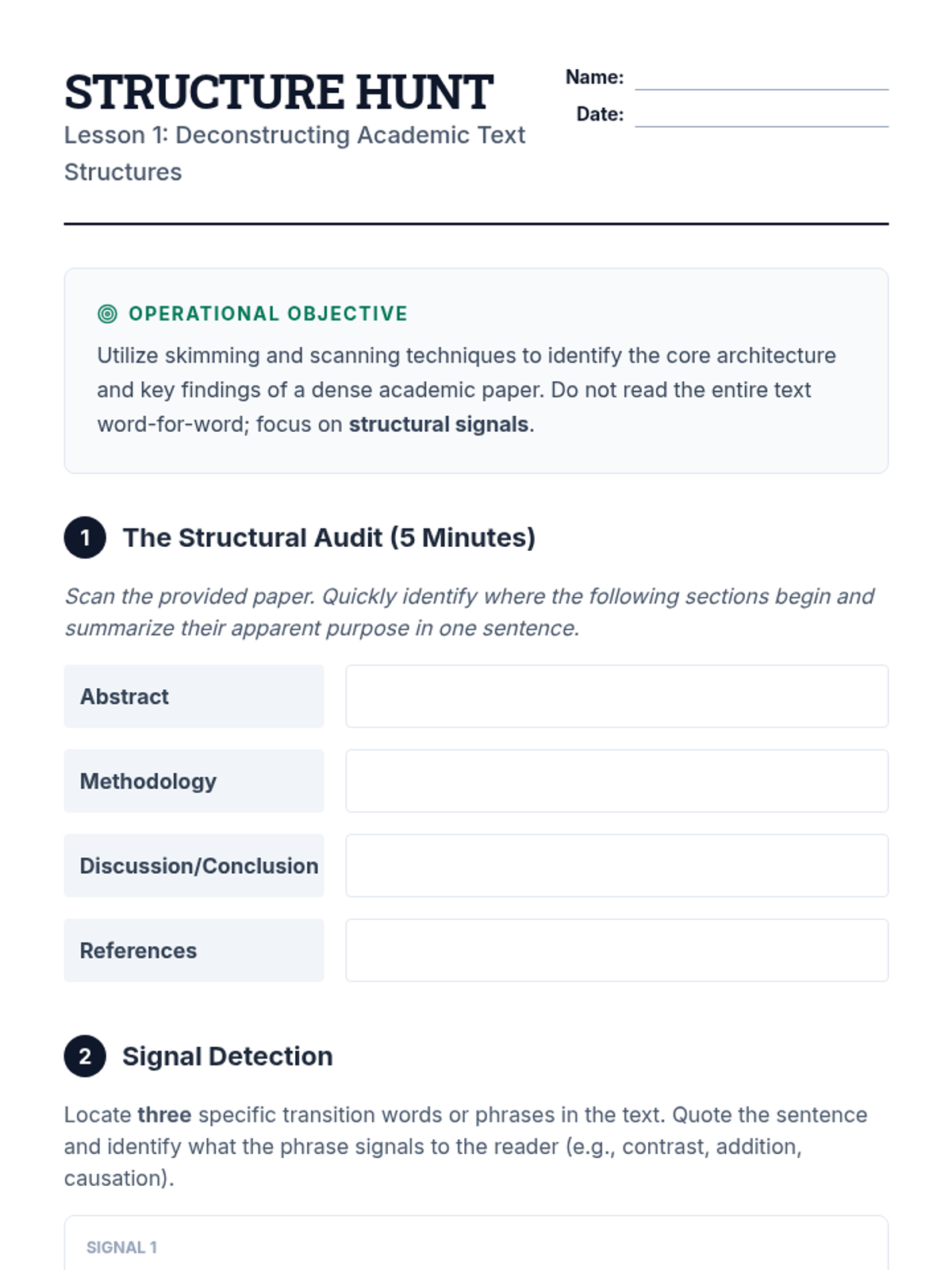 A high-level reading sequence for 12th-grade students focusing on the deconstruction, analysis, and synthesis of complex academic and technical texts to prepare for university-level research.