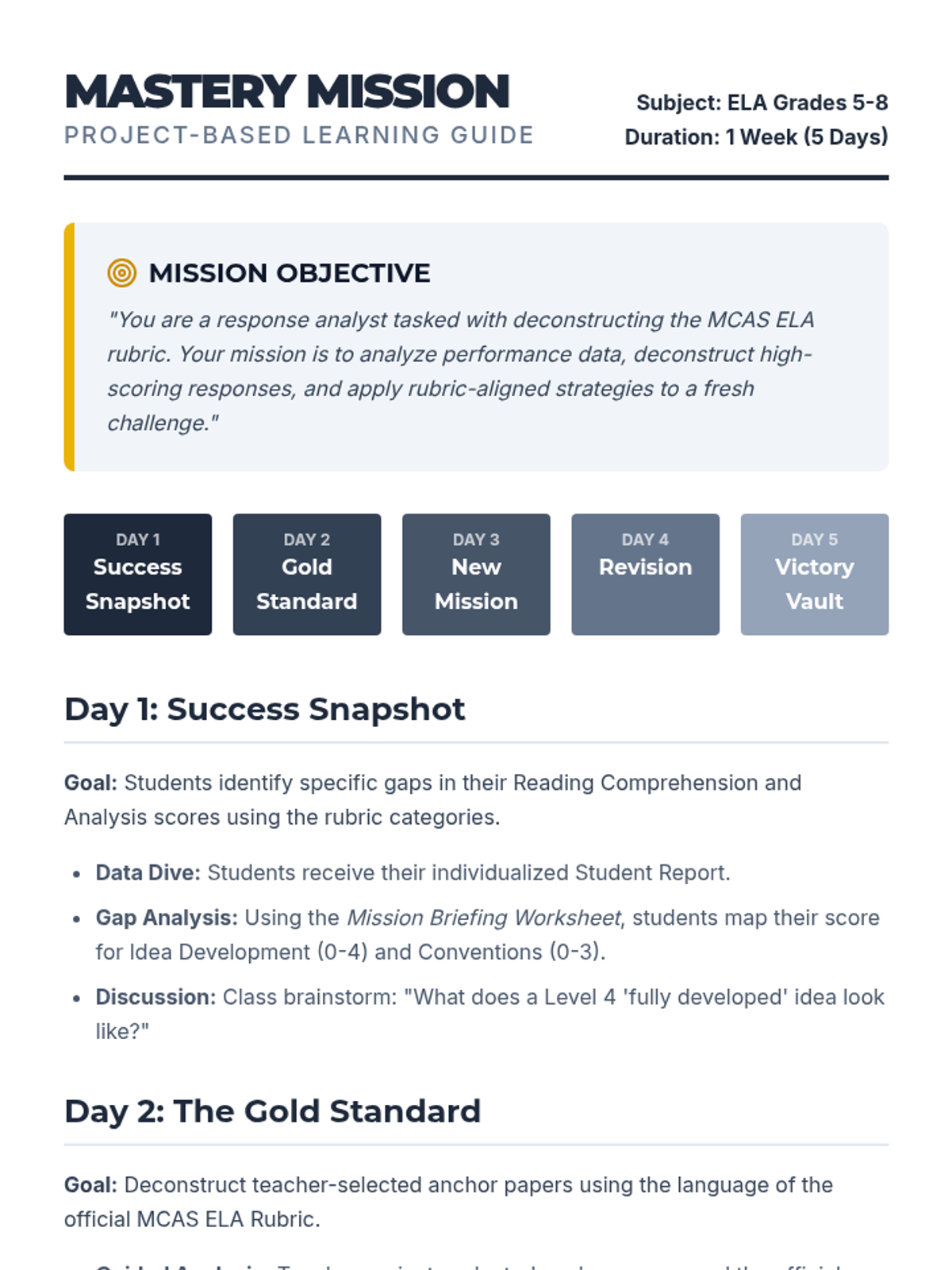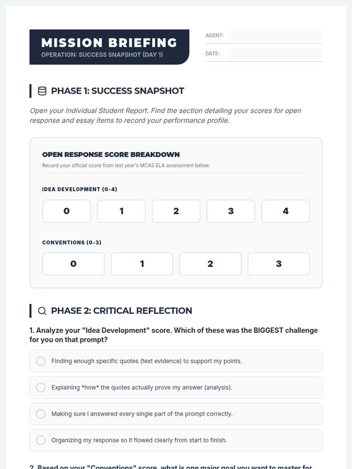 A comprehensive test prep series for 8th Grade ELA MCAS, focusing on multiple-choice strategies and passage analysis through an investigative lens.