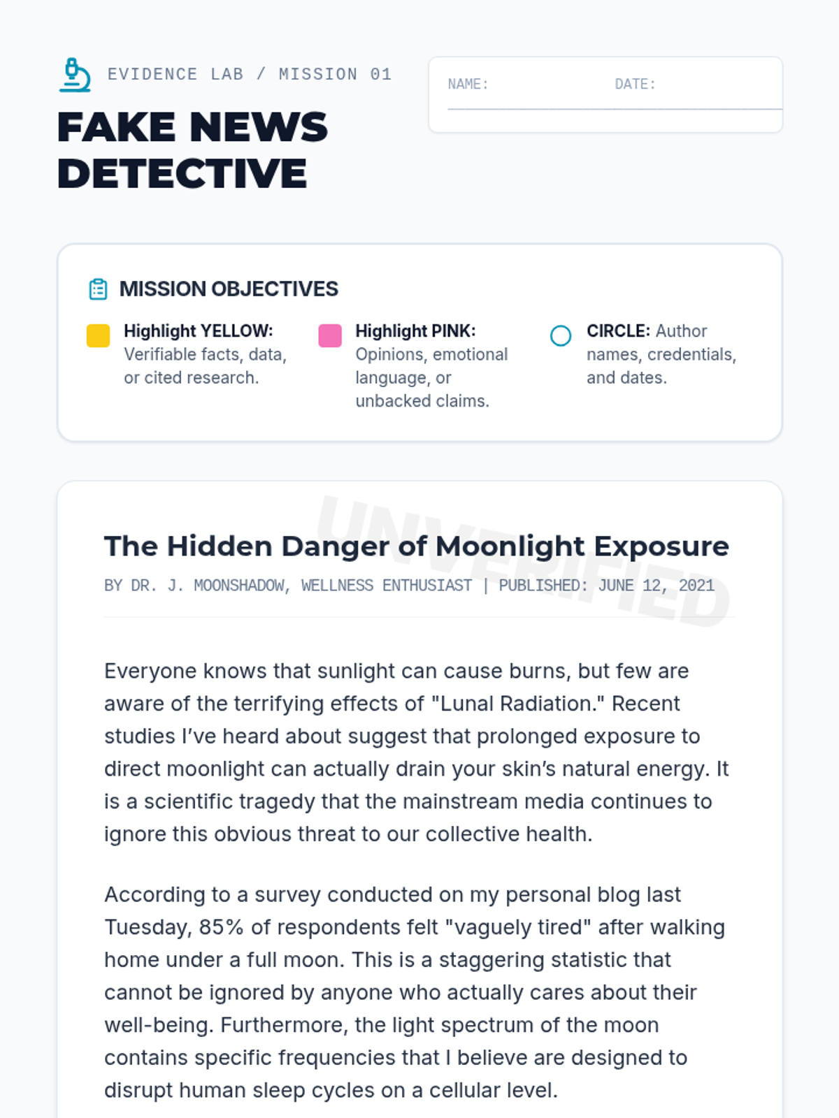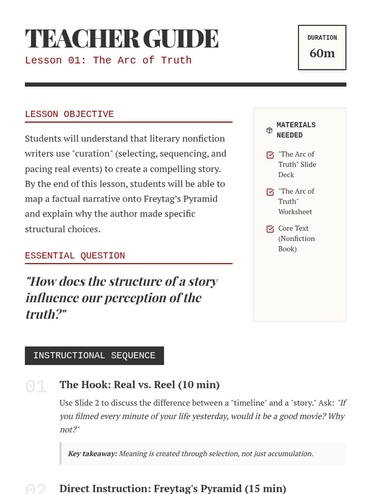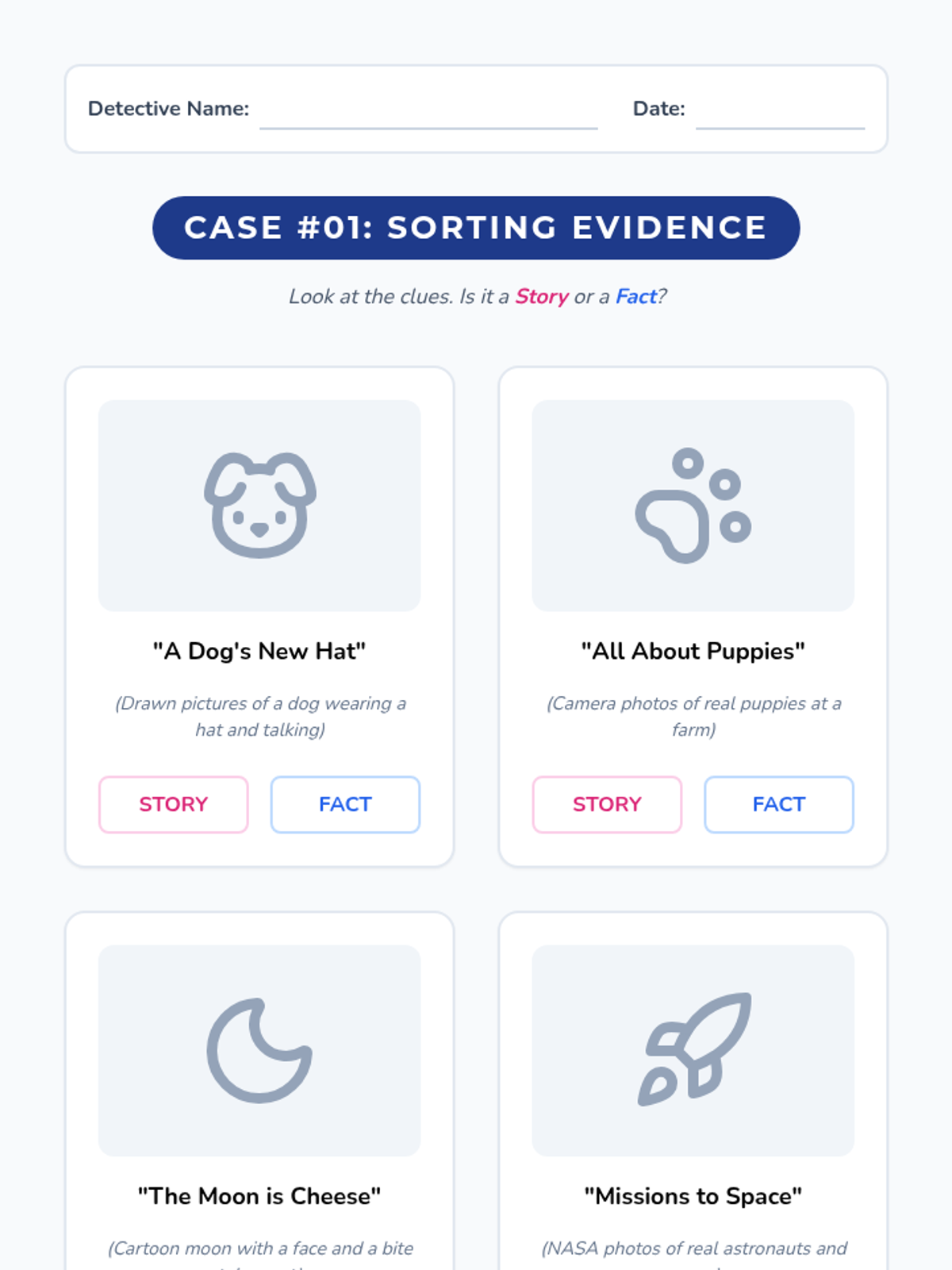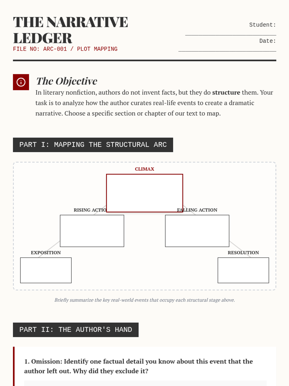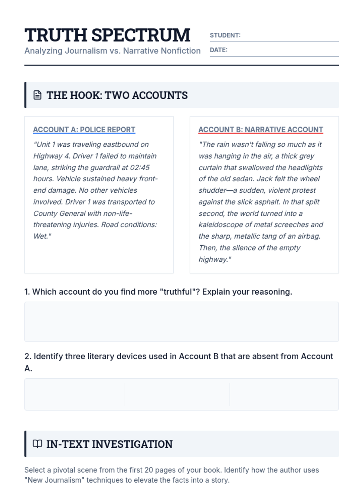 Reality vs. FictionCriteria for distinguishing factual events from imaginative narratives in literature and media. Strengthens critical thinking through analysis of historical accuracy, character archetypes, and narrative structures.