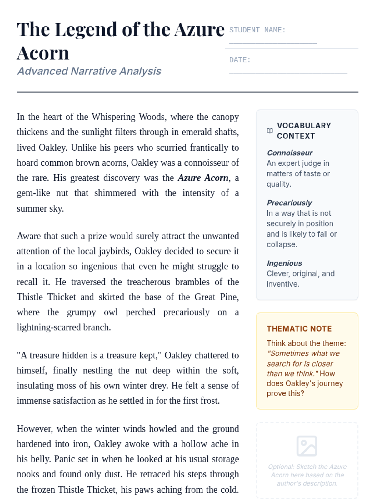 Inference And ThemeTextual analysis techniques for identifying underlying messages and drawing logical conclusions from implicit details. Connects textual evidence to universal life lessons and central motifs.