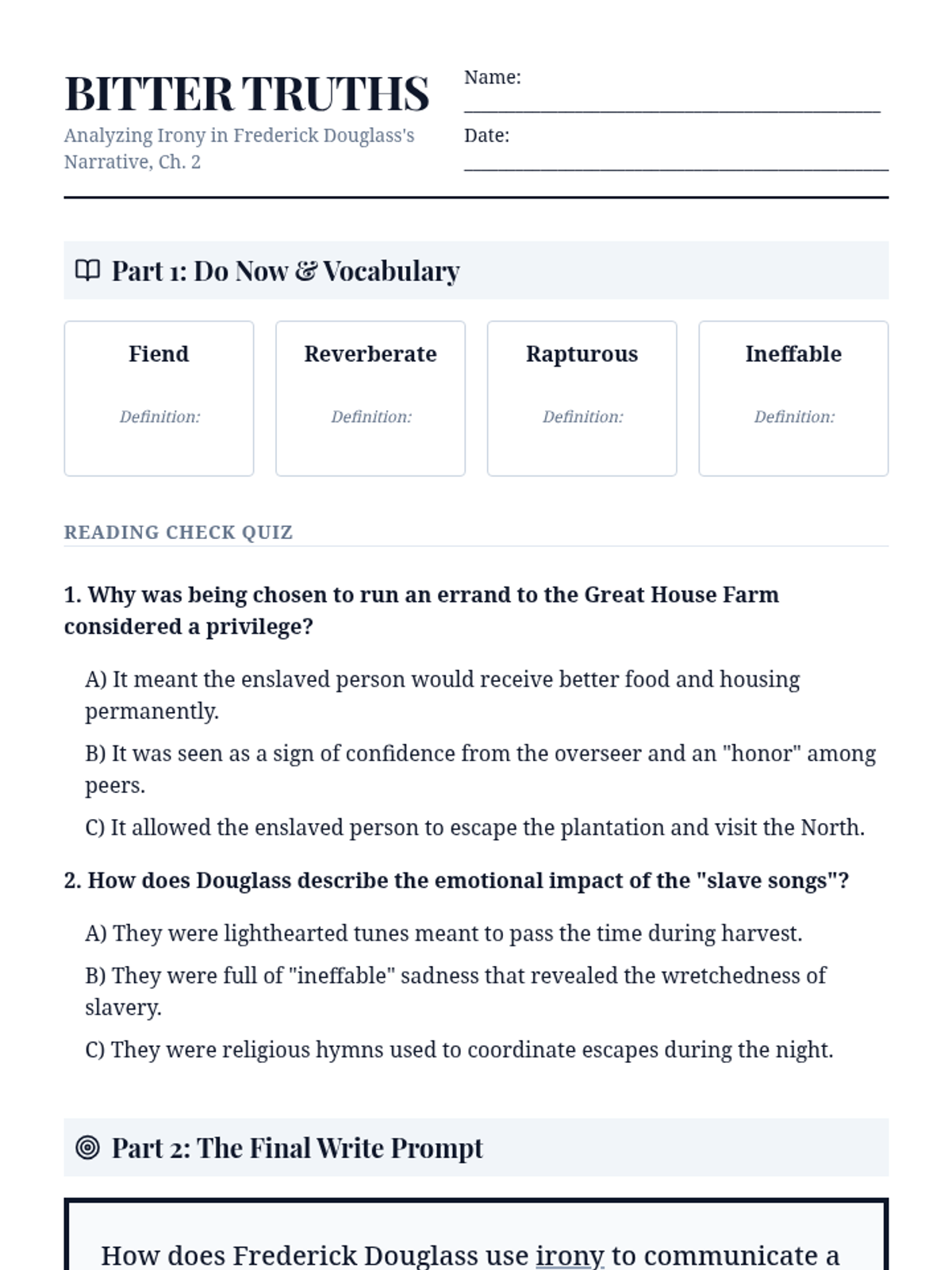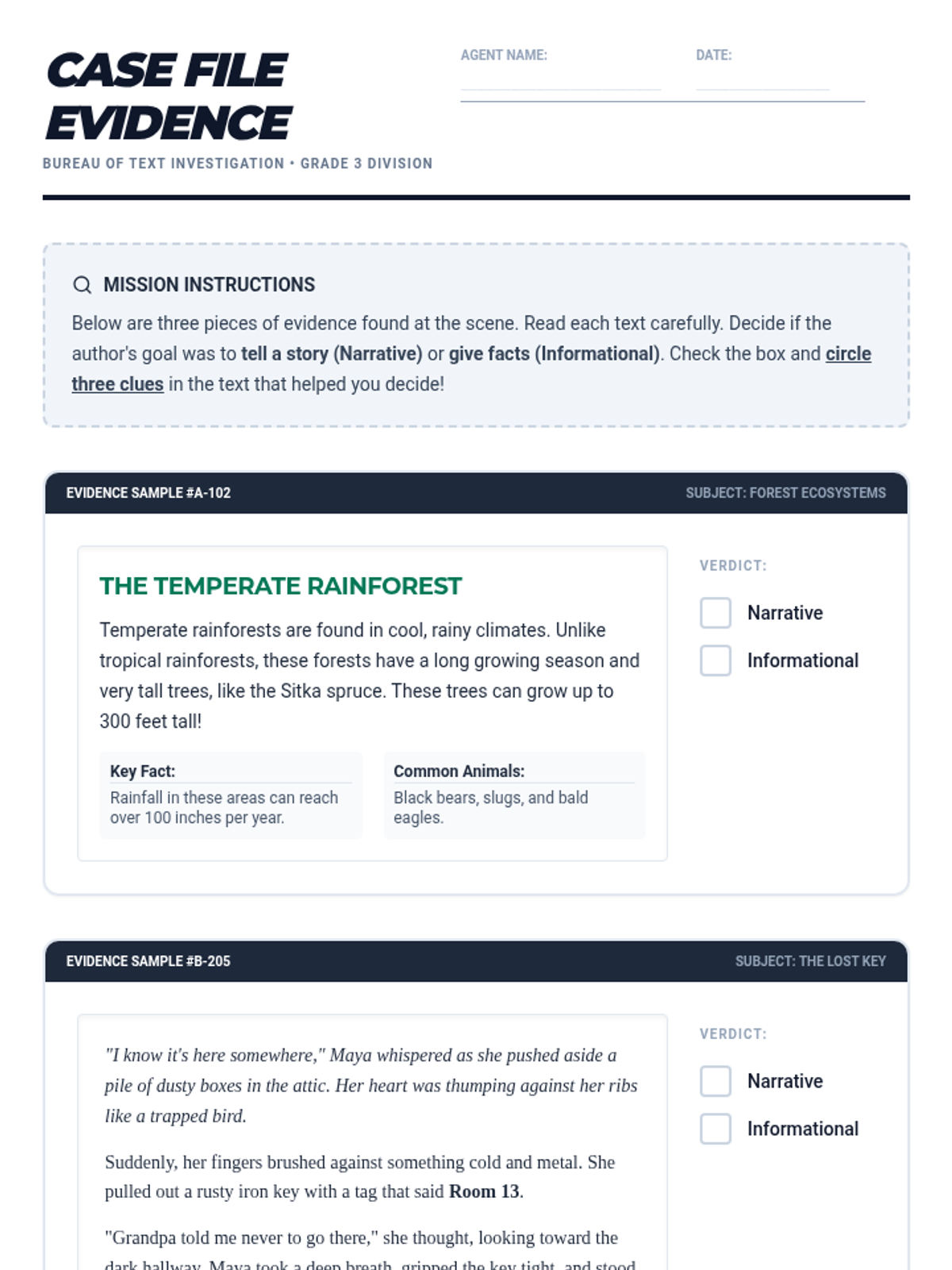 Author's Purpose And ToneIdentification of persuasive, informative, and entertaining intent alongside analysis of word choice to determine emotional stance. Equips students to differentiate between objective reporting and biased perspectives.