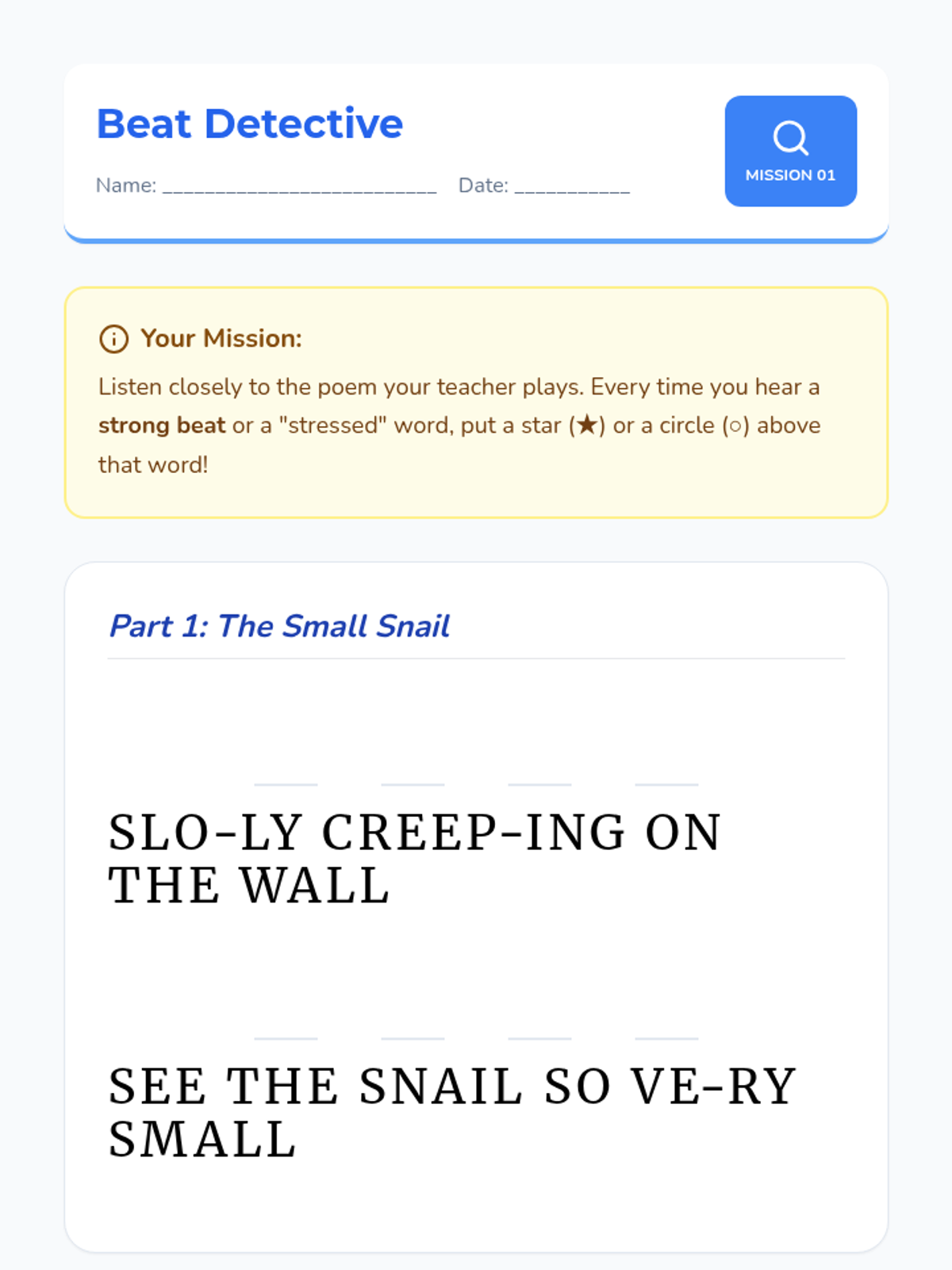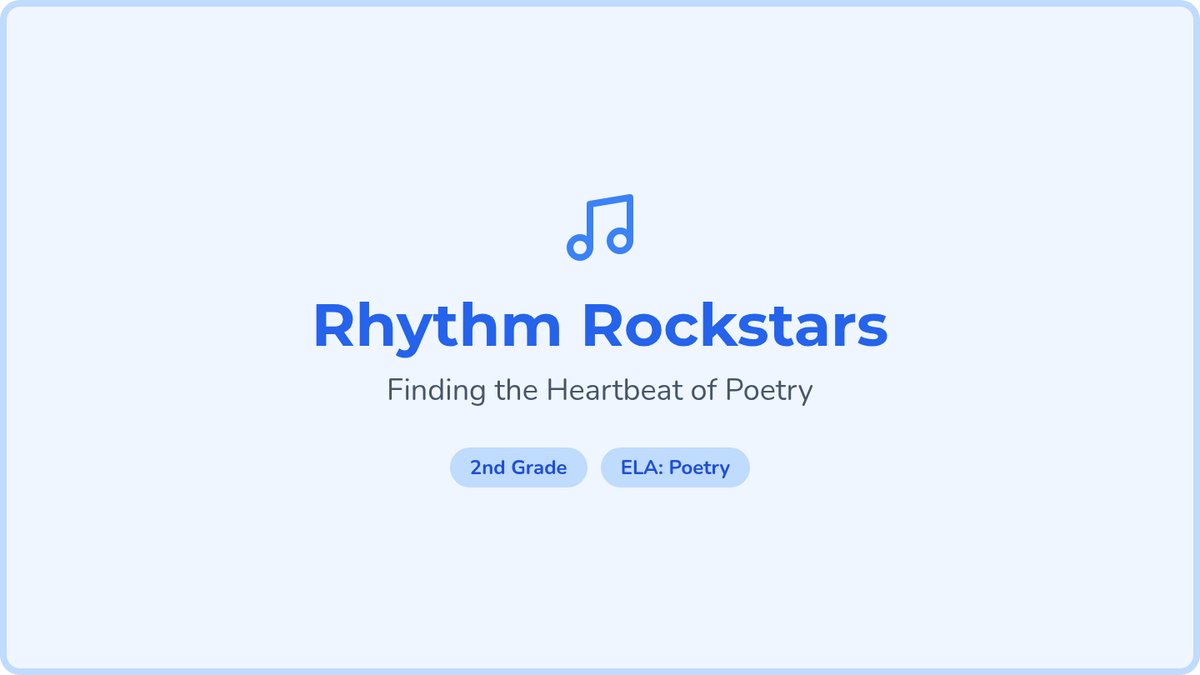A 2nd-grade ELA sequence focused on rhythm, rhyme, and mood in poetry through read-along experiences. Students explore how the musicality of language enhances meaning and practice recitation.